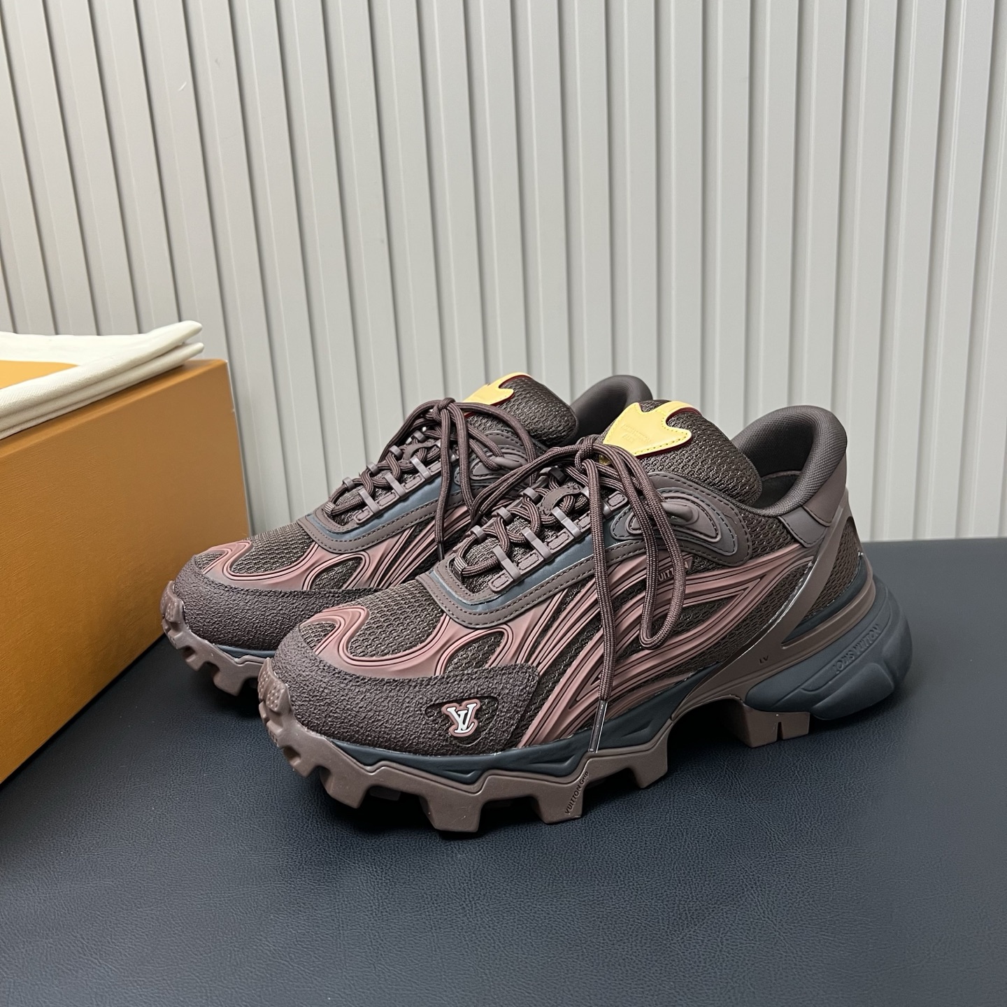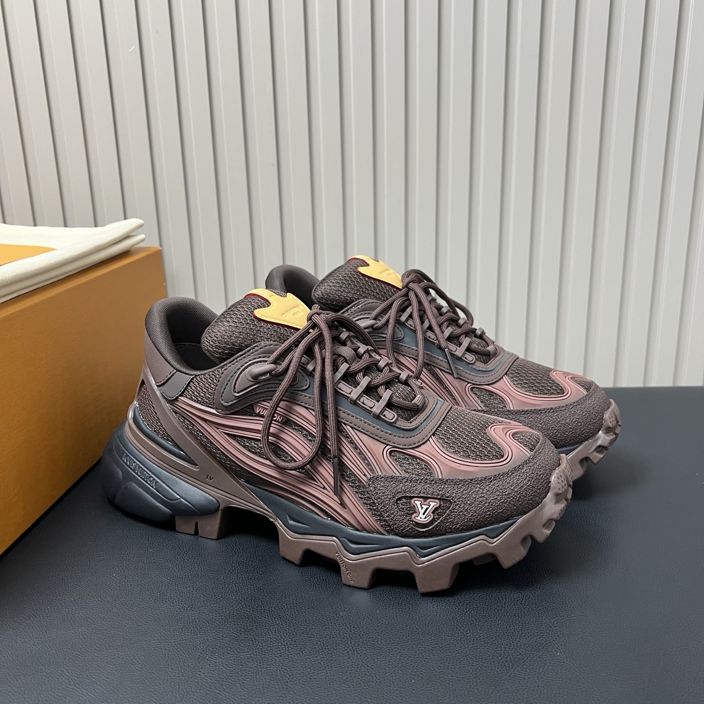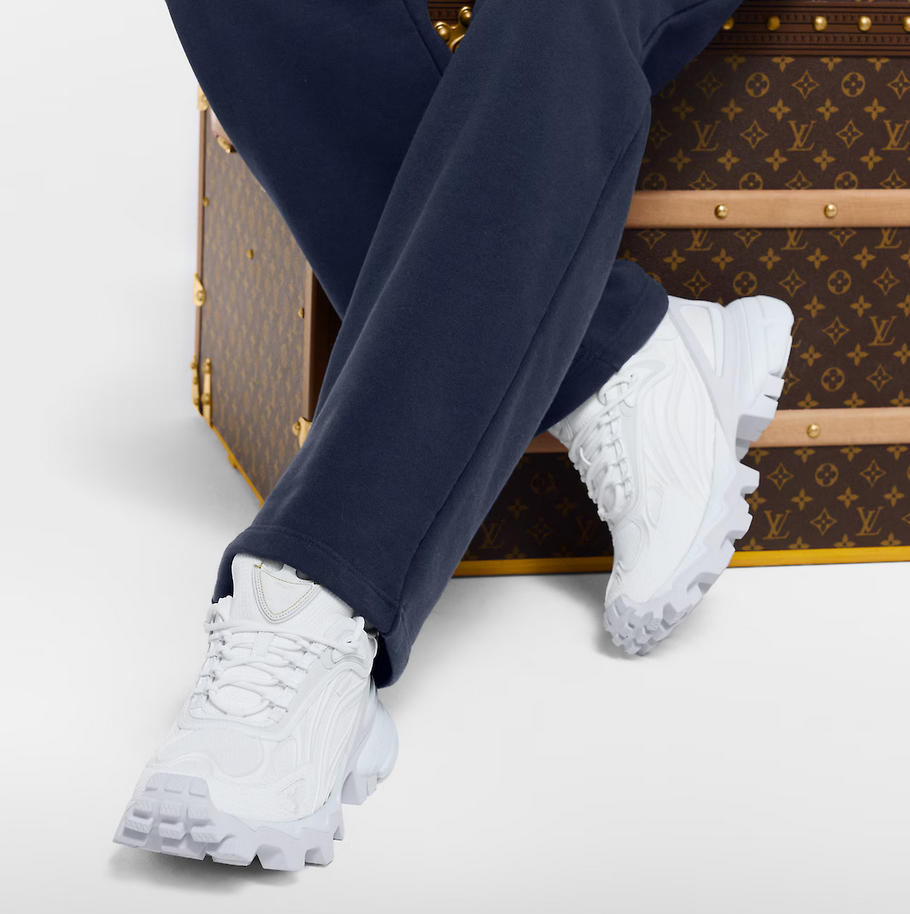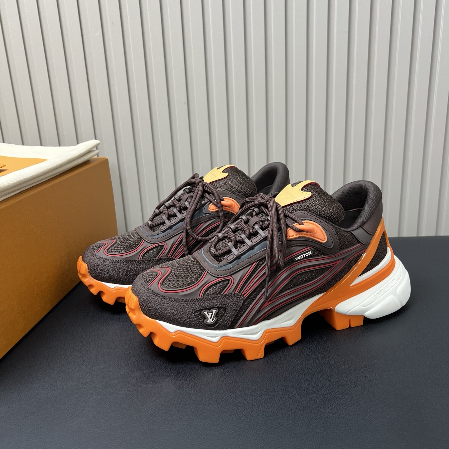 鞋面是非常典型的运动鞋面款式,主要是鞋底加了一层醒目凸纹橡胶层跟一般的运动鞋区别开了,弱化了运动功能,当然也没人穿这鞋子真去搞运动
