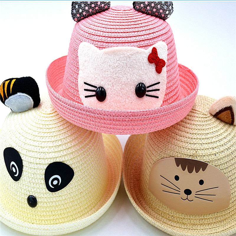 LM-001新款韩版儿童小熊草帽 卡通动物造型帽