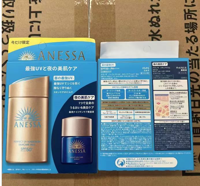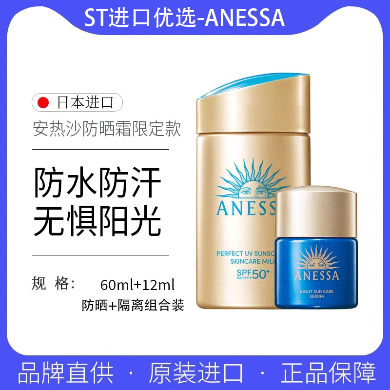 ANESSA安热沙安耐晒60ml 身体小金瓶+夜间防晒修复精华12ml-组合装
