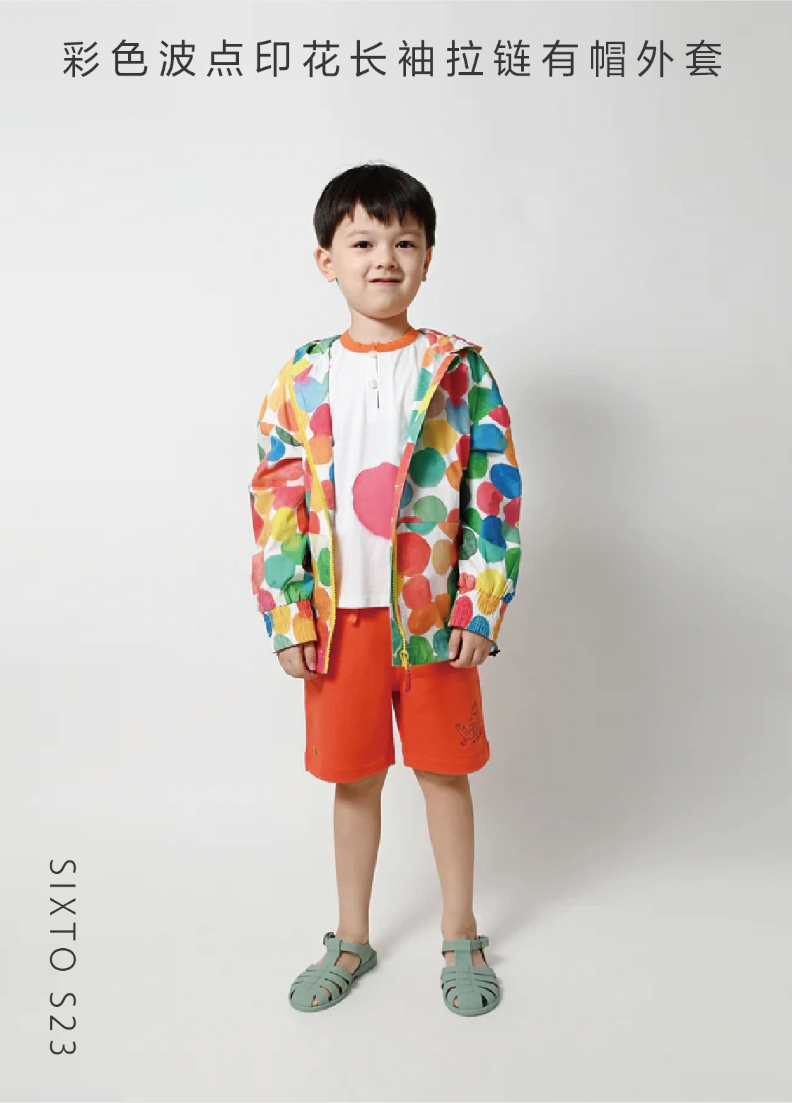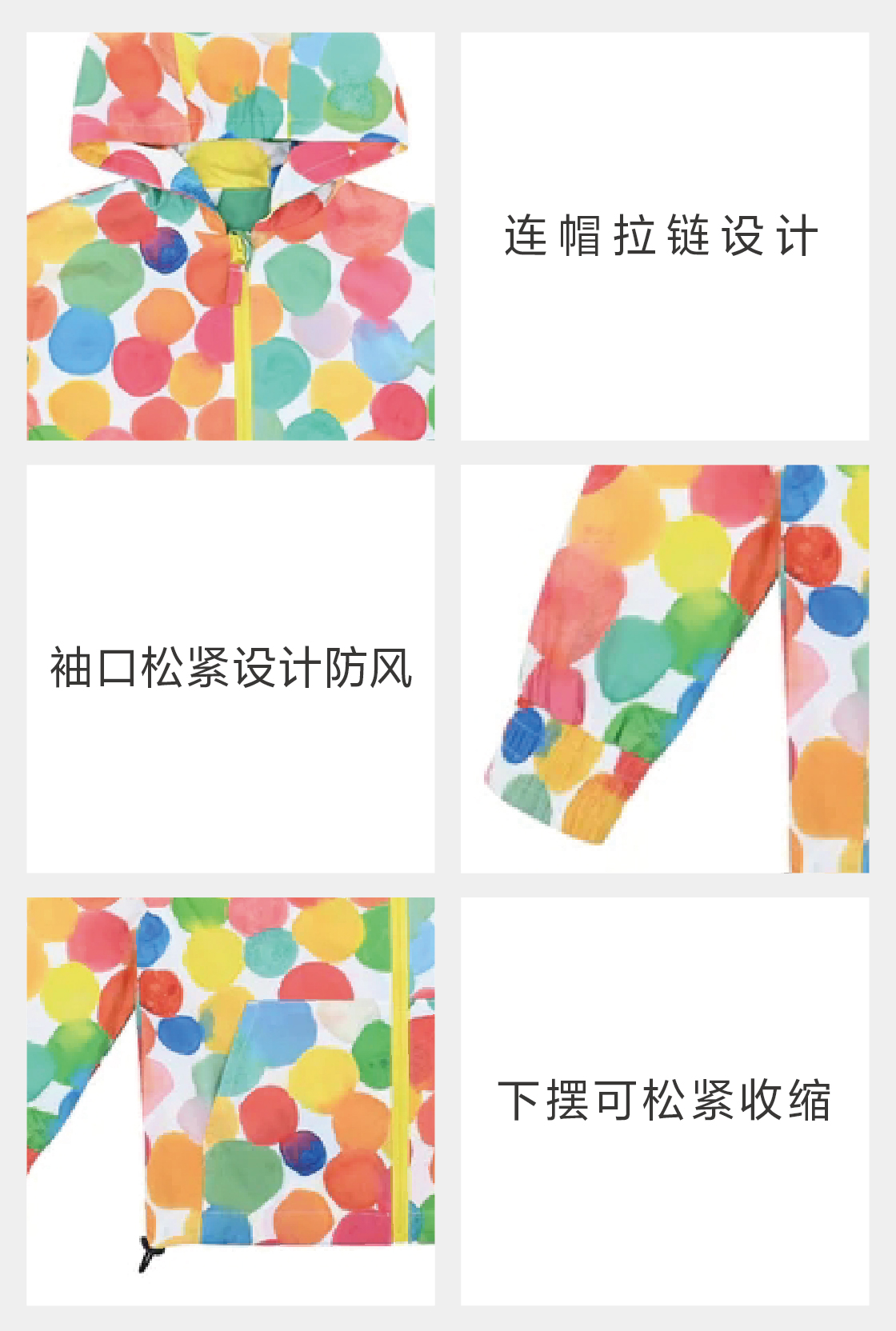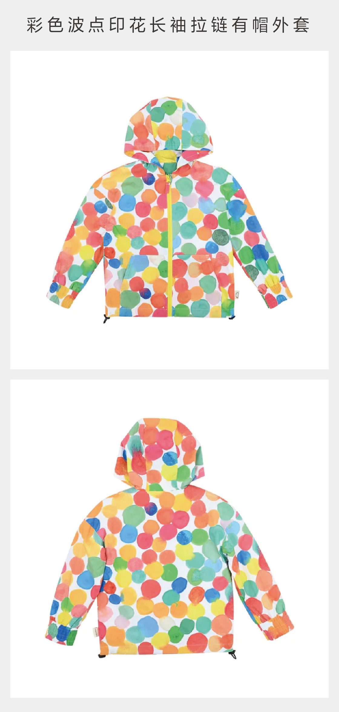 rainbowxoxo 彩色波波印花长袖拉链有帽外套【该商品不支持用券】