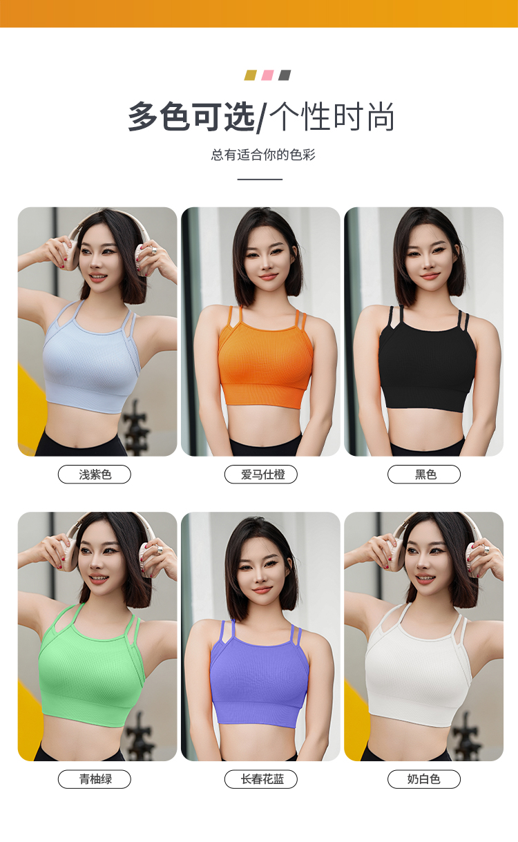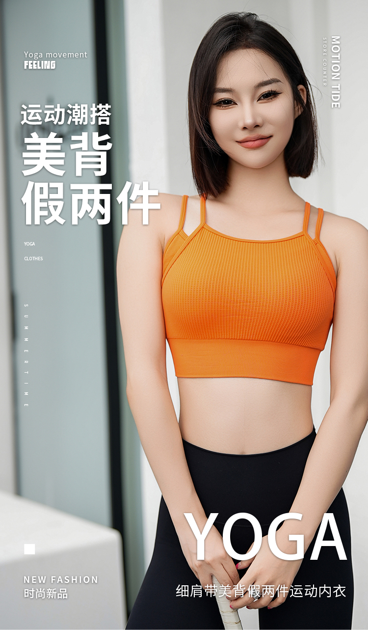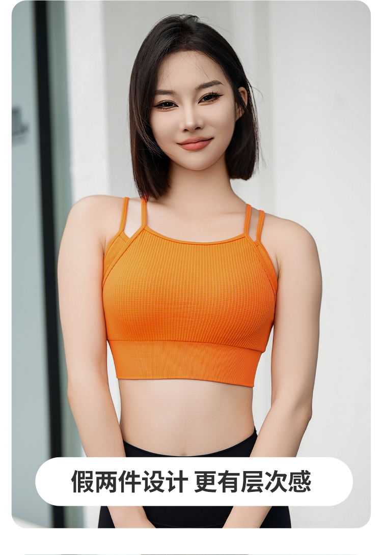 跃牌【安琪拉系列】细肩带美背假两件运动内衣瑜伽健身服WXM5291