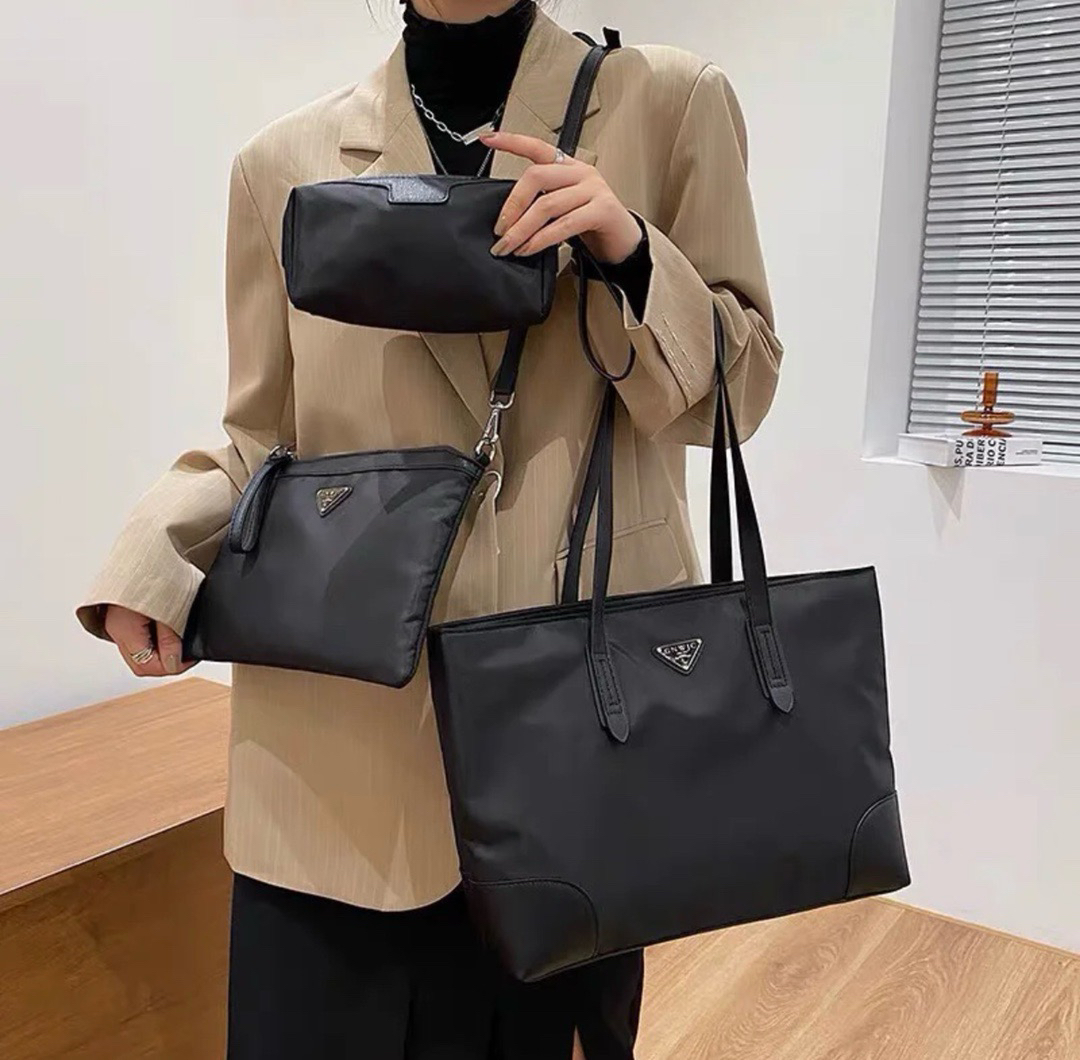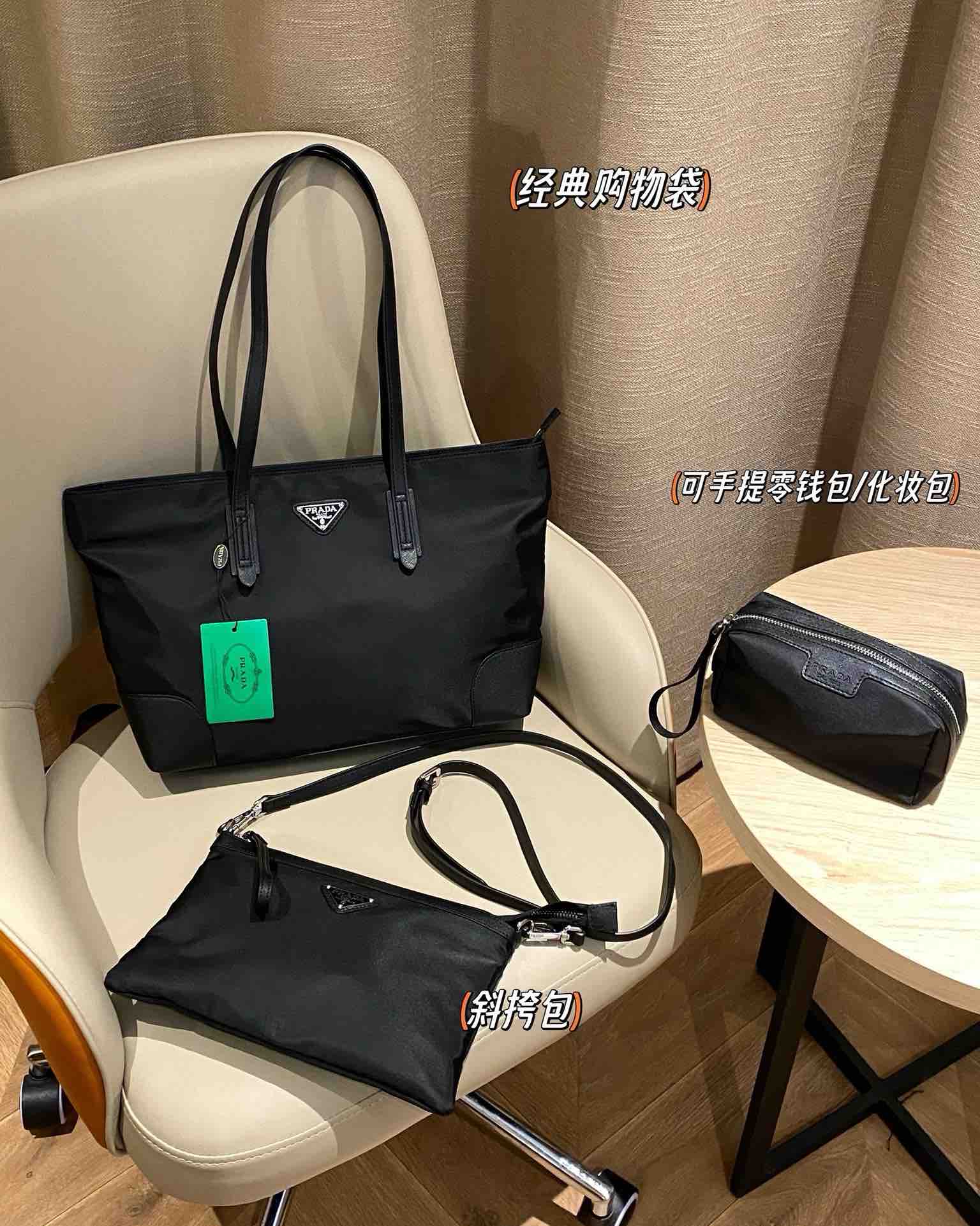 Prad*尼龙托特包+斜挎包+零钱包组合套装!