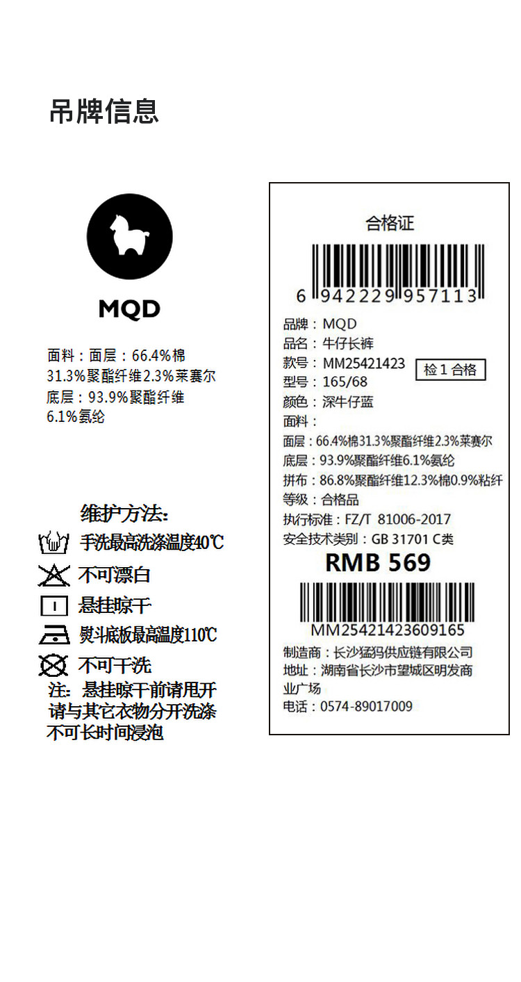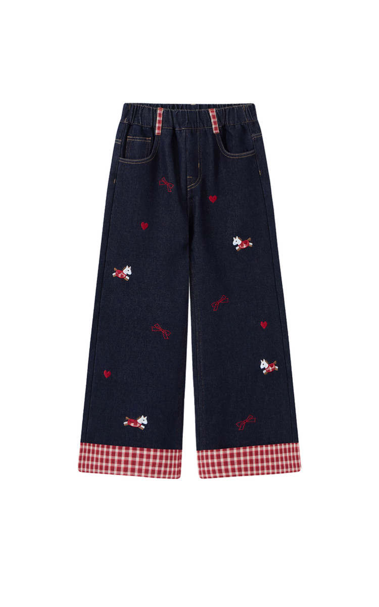 【MQD】童装女大童卡通刺绣小马牛仔裤26春季学院风满版百搭阔腿裤子