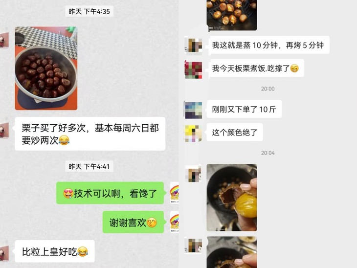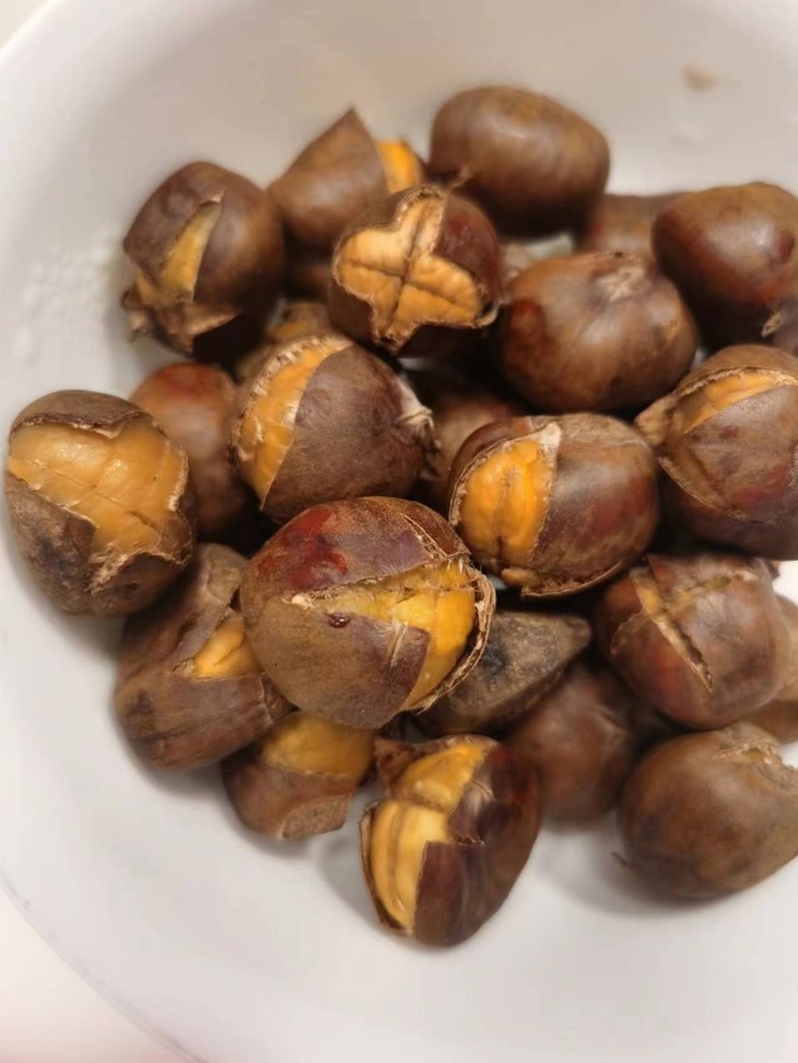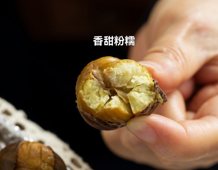 💟高温烘烤使栗子味道更加甘甜盈口。磕开薄脆的栗子壳,细细嚼了,绵密、软糯、香甜,迁西板栗恰恰能做到三者兼得。