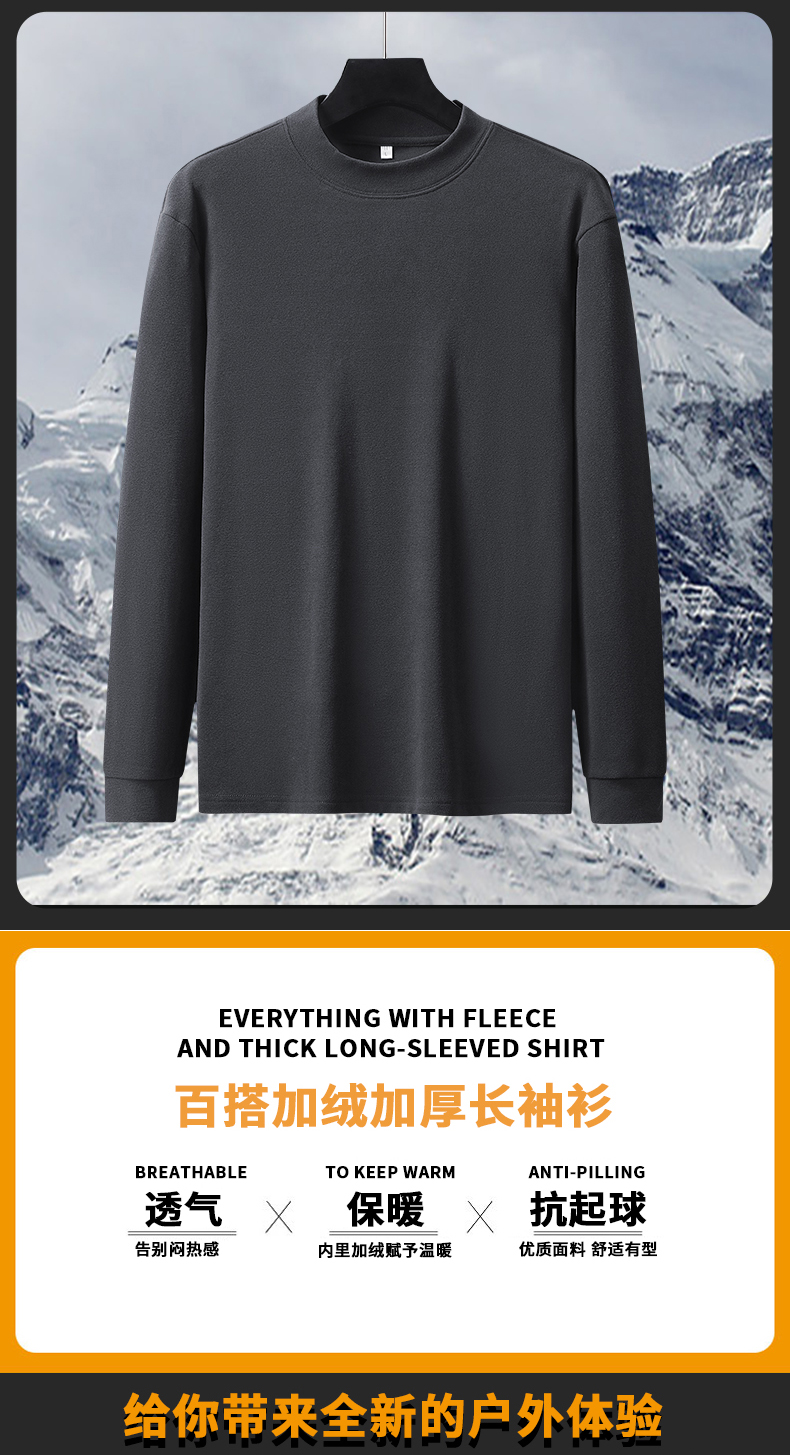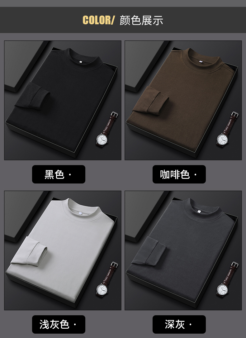 【新款DSK】大依优型大码加绒半高领长袖T恤德绒保暖男装加肥加大体恤大号上衣胖子打底
