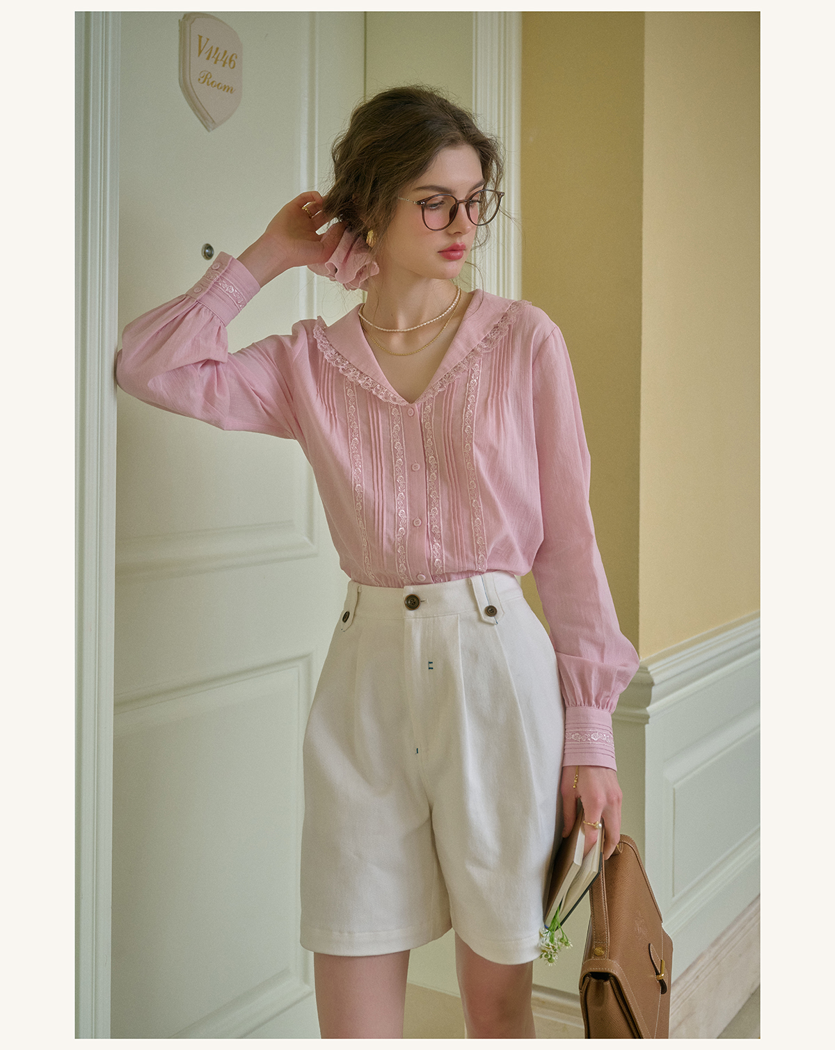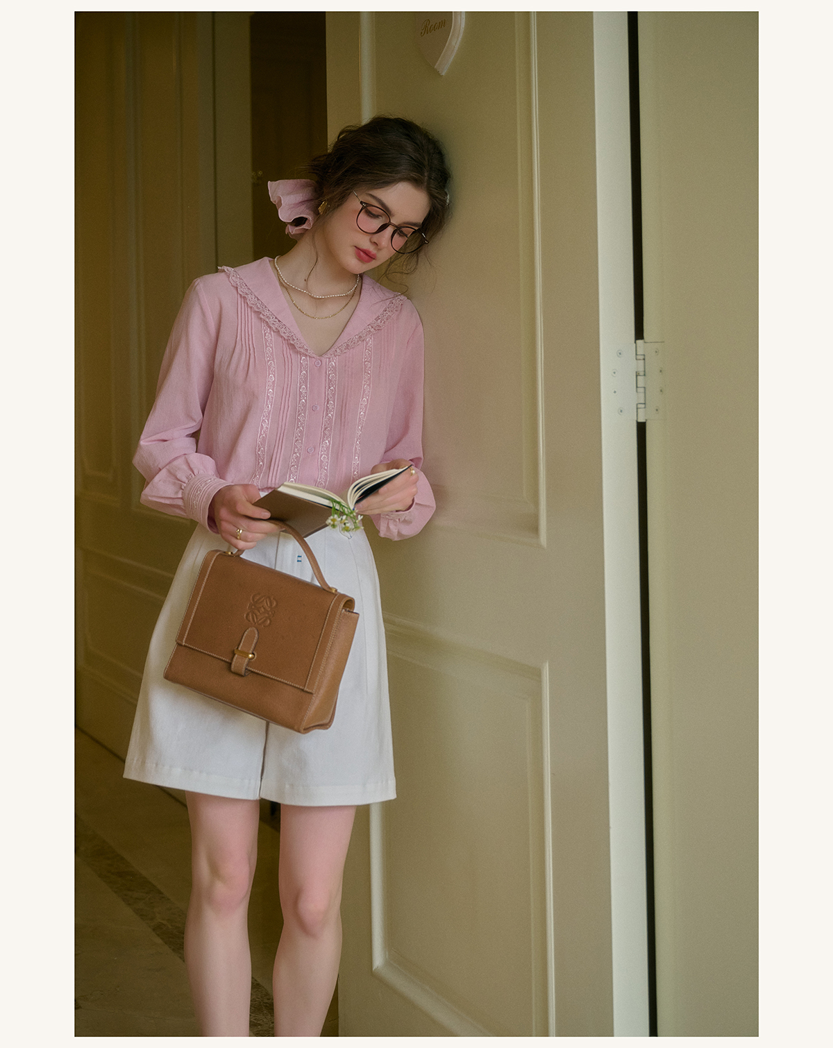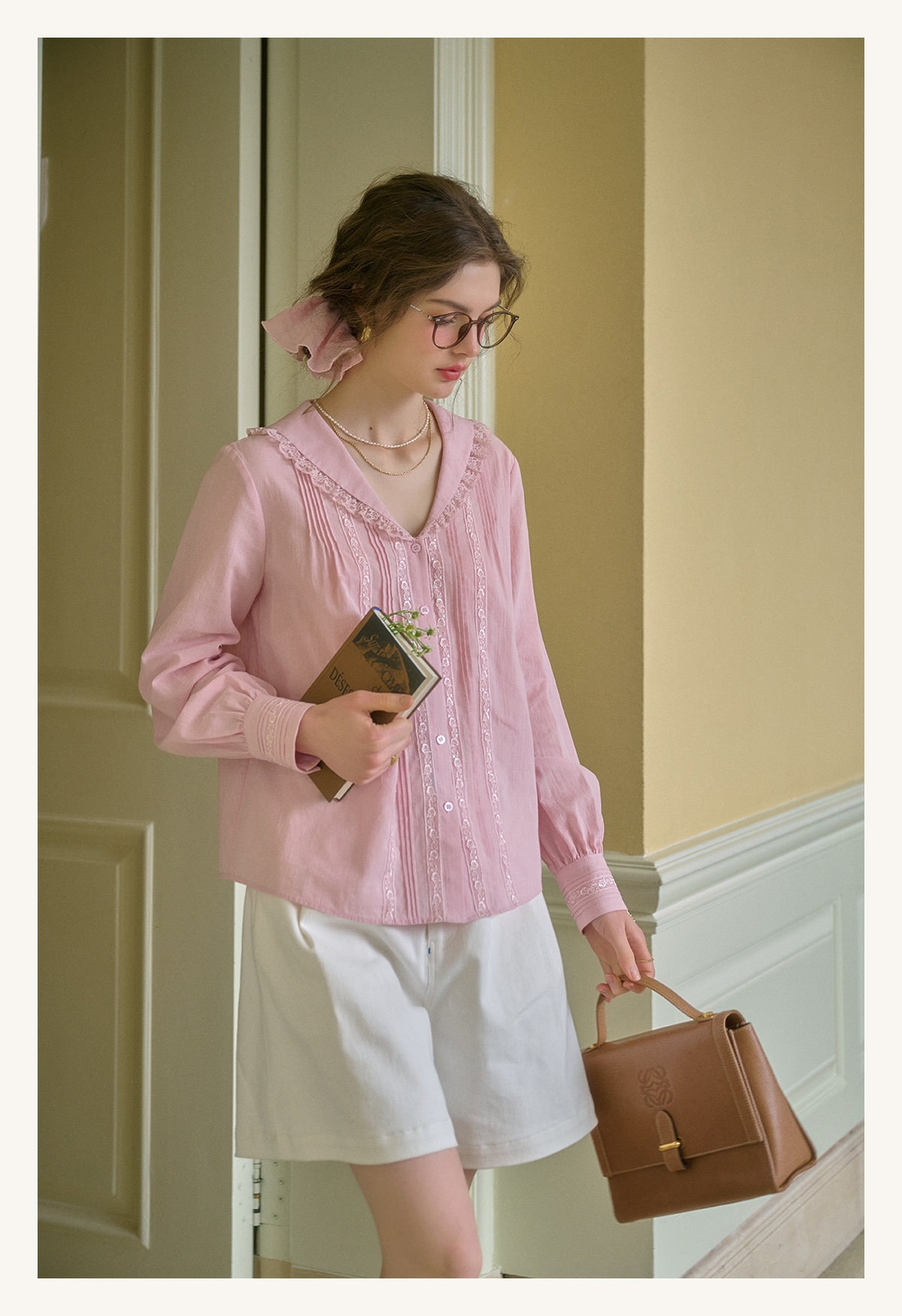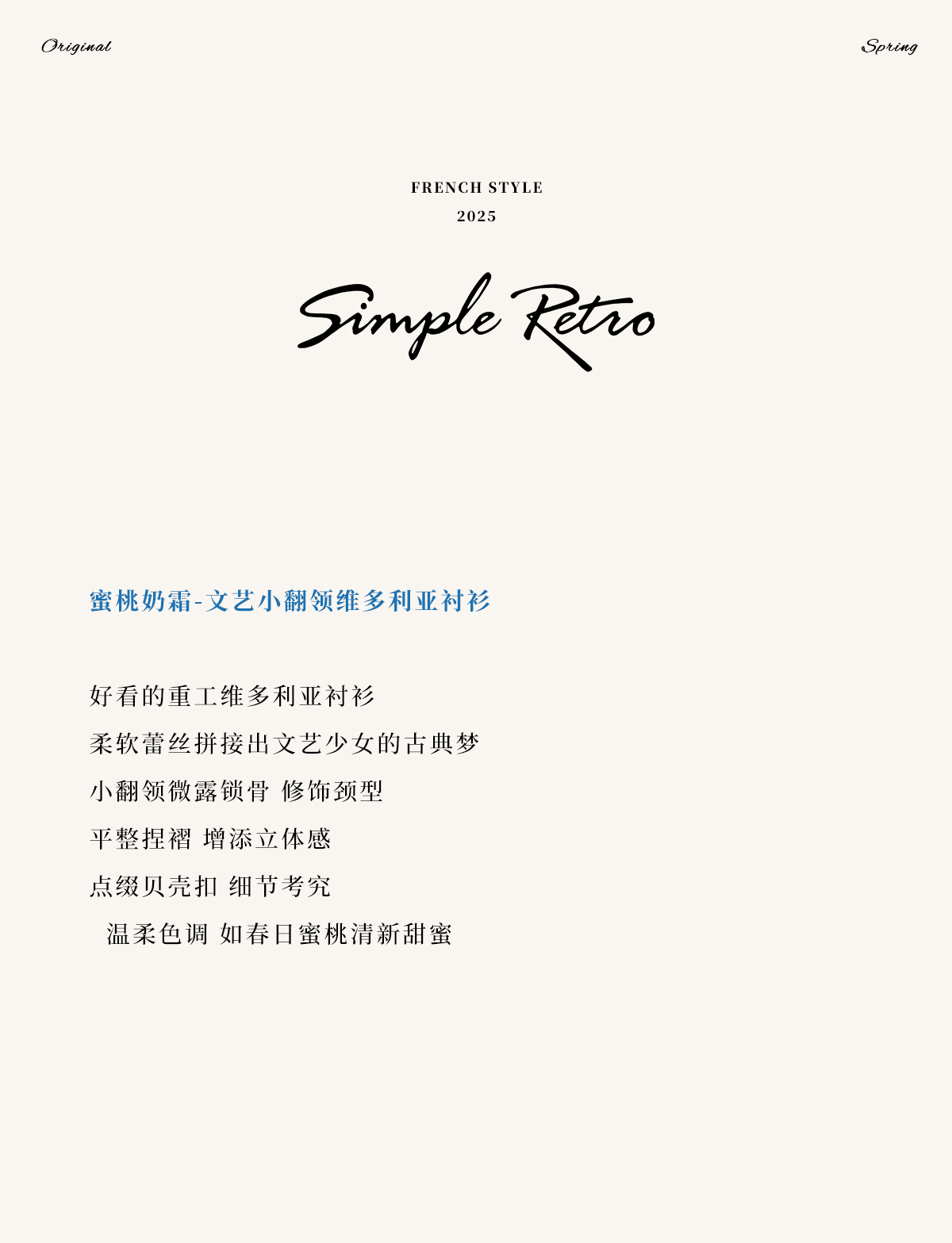 SimpleRetro蜜桃奶霜 文艺小翻领维多利亚衬衫女春季简约通勤衬衣