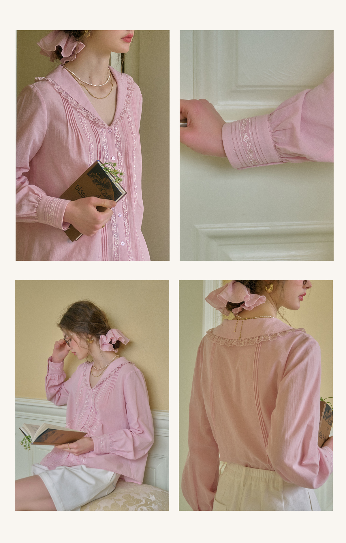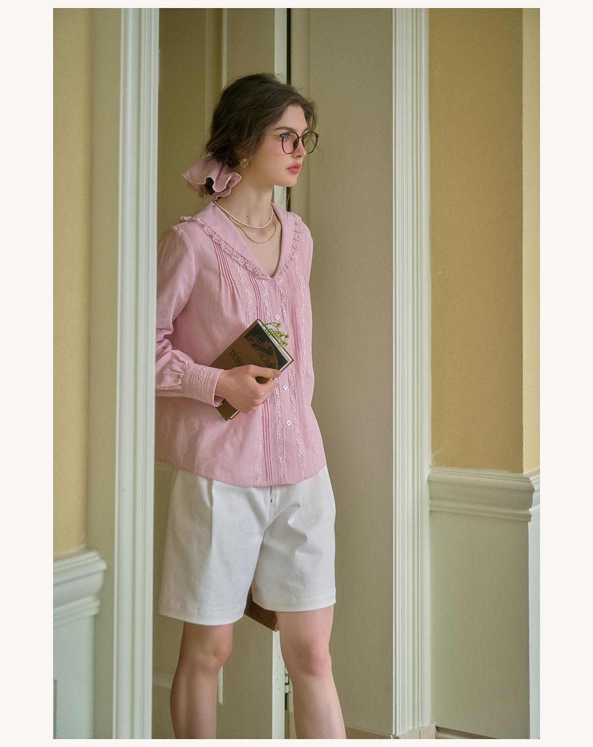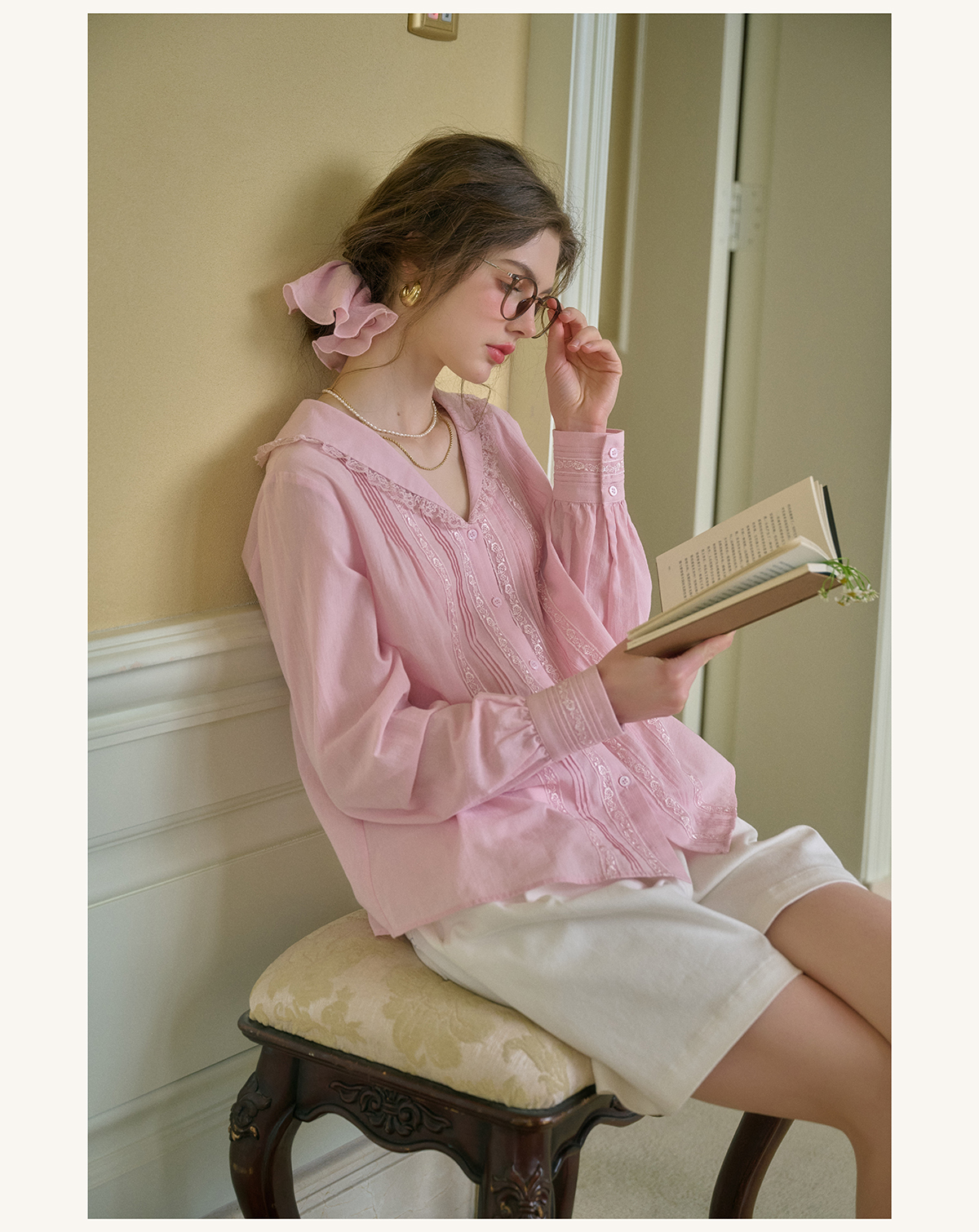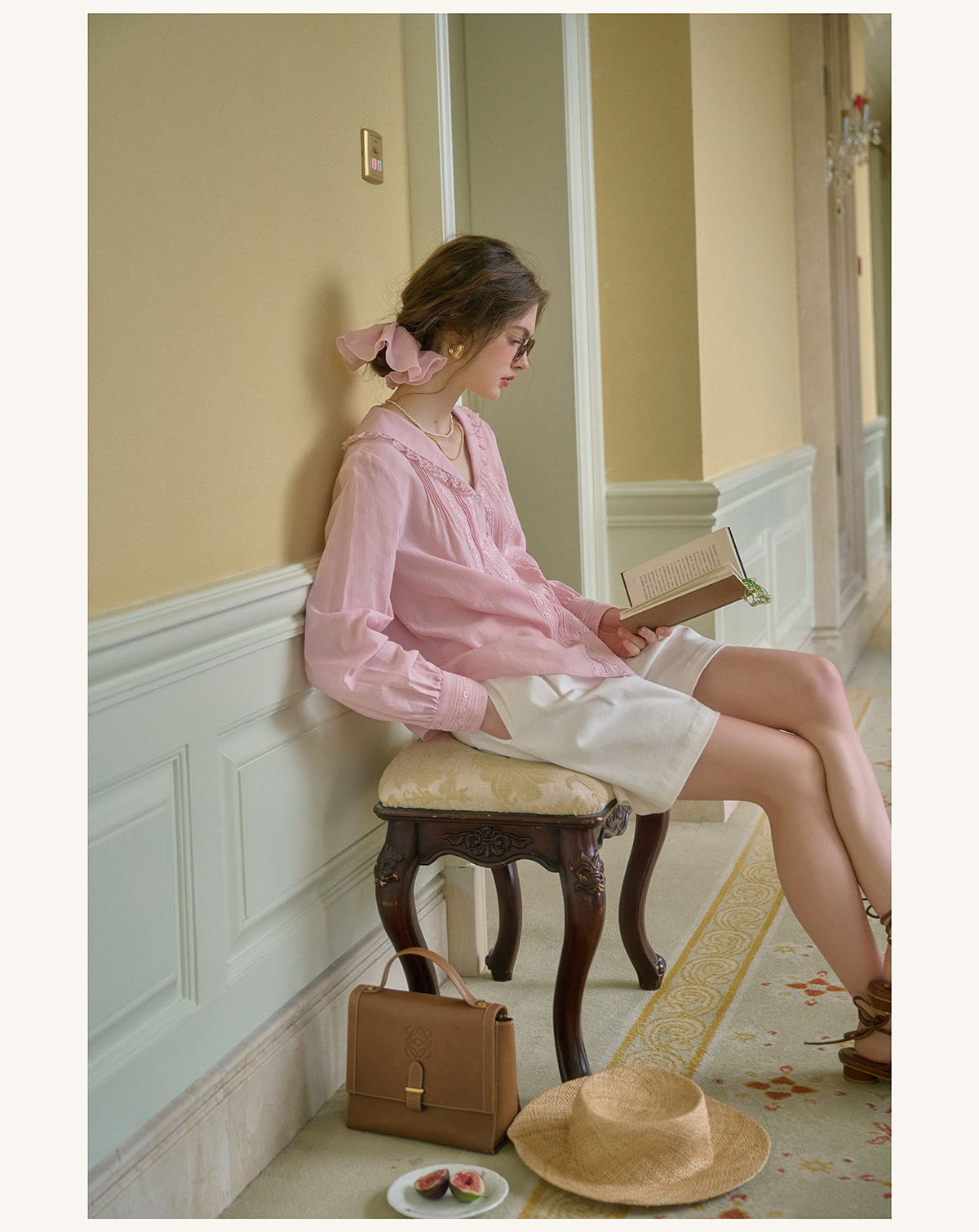 SimpleRetro蜜桃奶霜 文艺小翻领维多利亚衬衫女春季简约通勤衬衣
