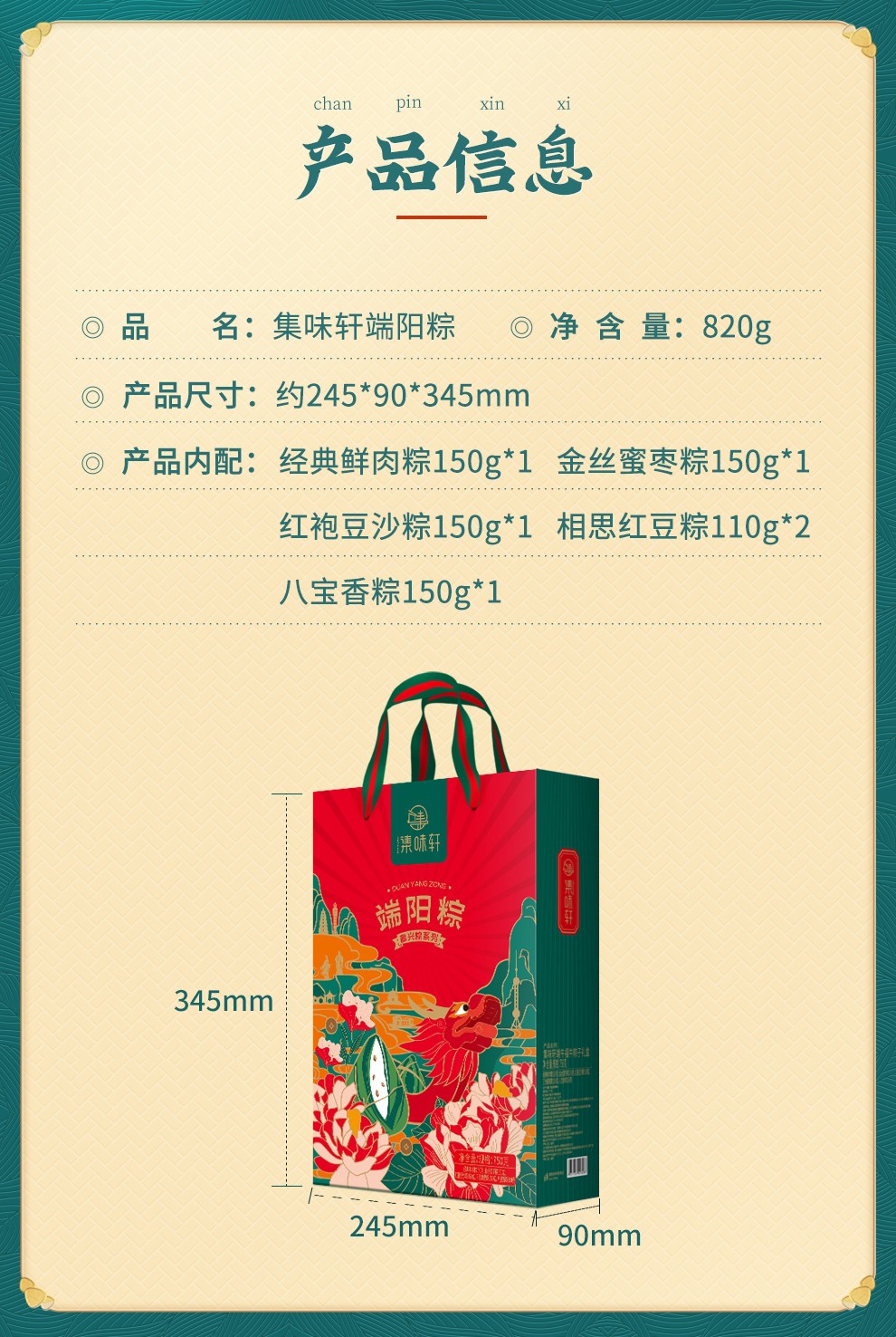 【集味轩粽子礼盒】端阳粽粽子礼盒 820g