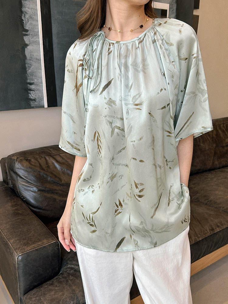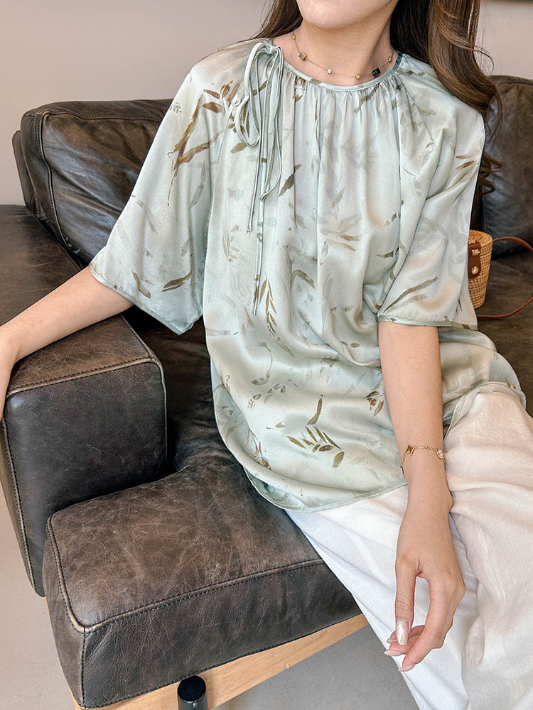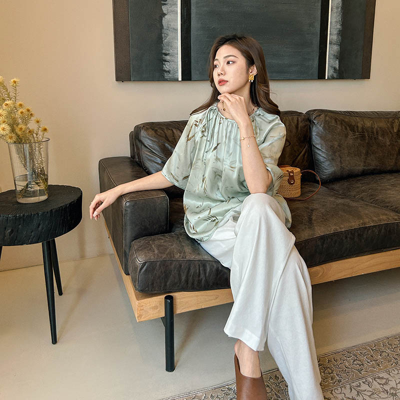 洛诗琳42016气质新中式衬衫2025夏季竹影印花改良国风上衣0975
