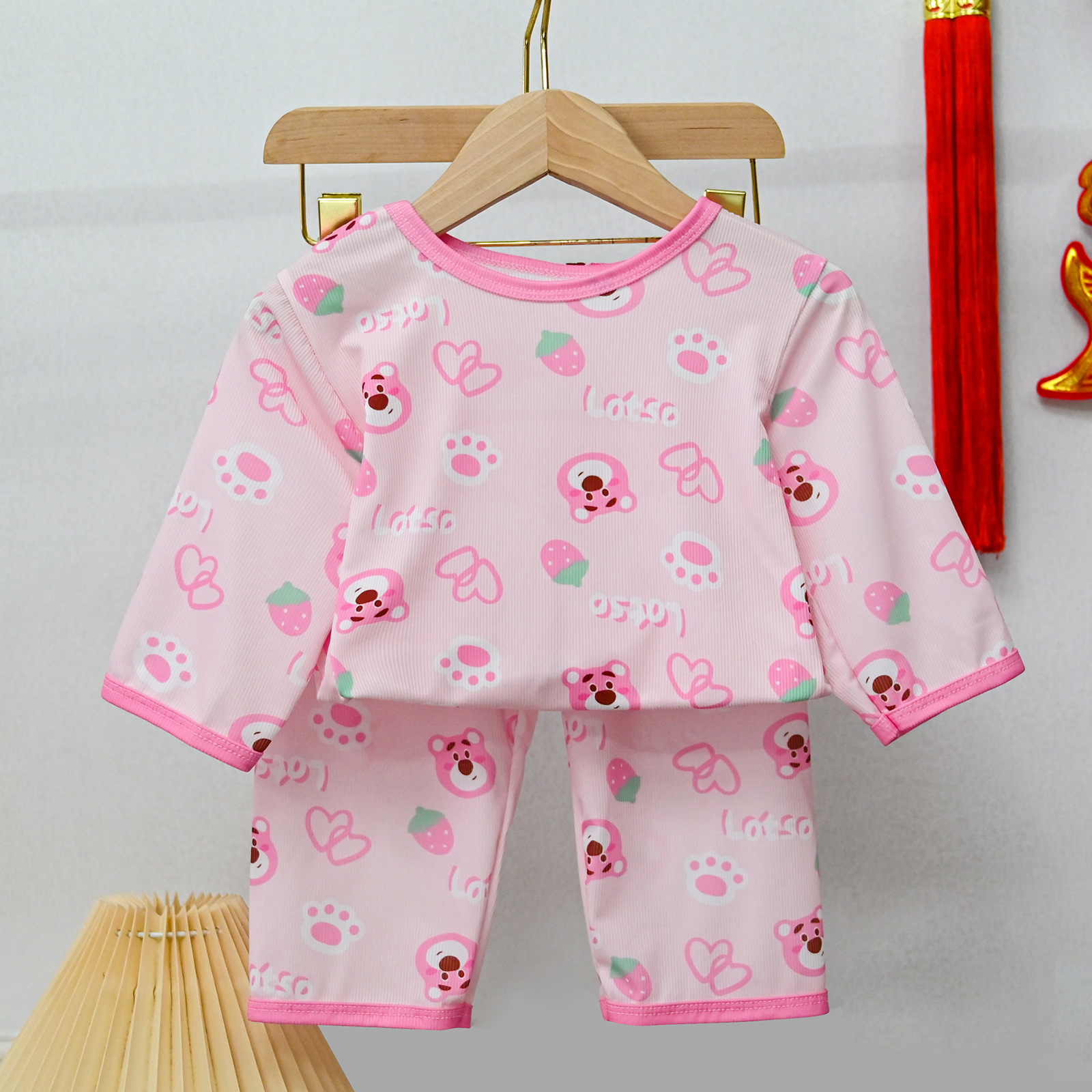 【买一送一!宝宝家居服套装】宝宝套装冰凉舒适,夏日必备!宽松设计,透气冰丝面料,让儿童自由活动。女童长袖长裤设计,不仅透气排汗,还能防止蚊虫叮咬。sh