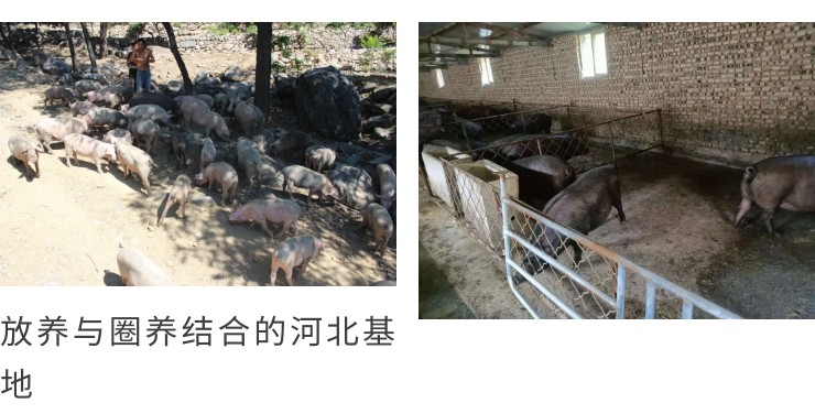 从一开始的完全放养开始,发现猪肉嚼劲十足,不过稍欠细嫩,而且过瘦。完全圈养的话则容易太肥,到最终确定了半放养,半圈养的养殖方式,养殖满一年才出栏,肉质细嫩又不会太肥。只是今年下半年以来受猪瘟反复的影响,在当地政府的强制要求下暂时改为完全圈养。