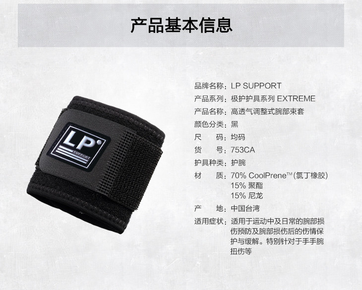 LP753运动护腕高透气可调整式护腕防扭伤 健身网羽球