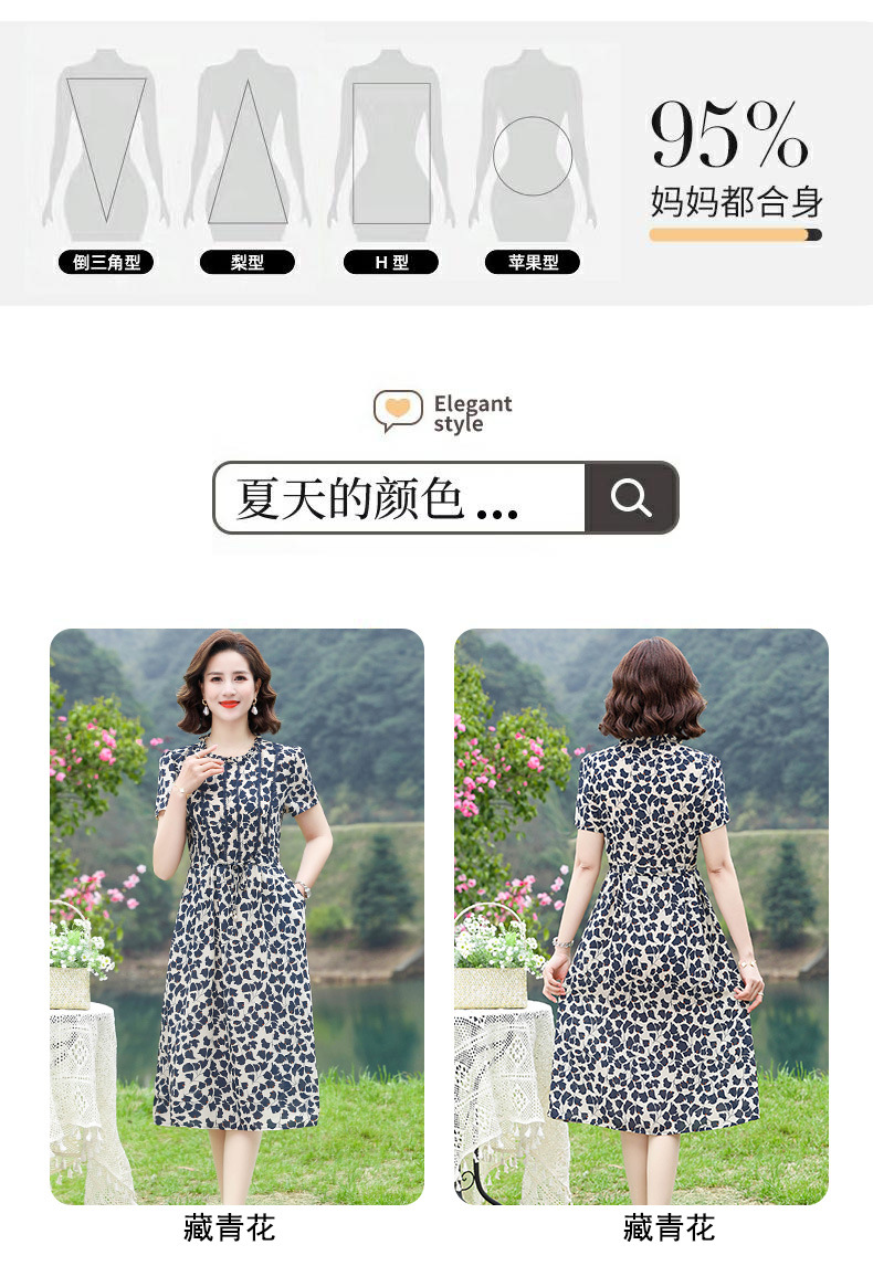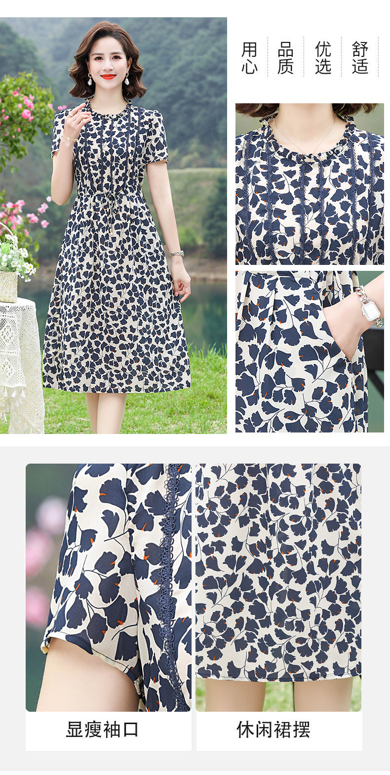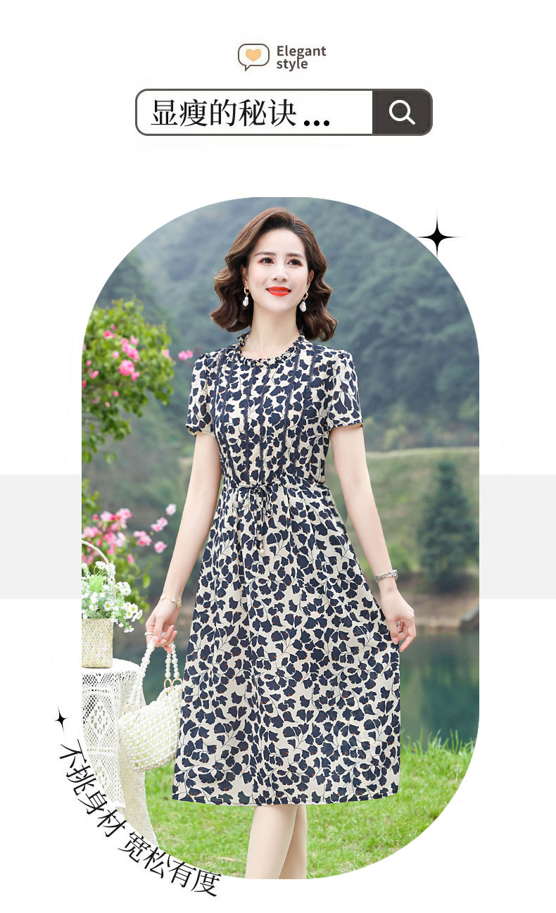 XH2094-2308 中年妈妈夏装时尚雪纺连衣裙遮肚新款中老年女夏季短袖碎花裙子薄