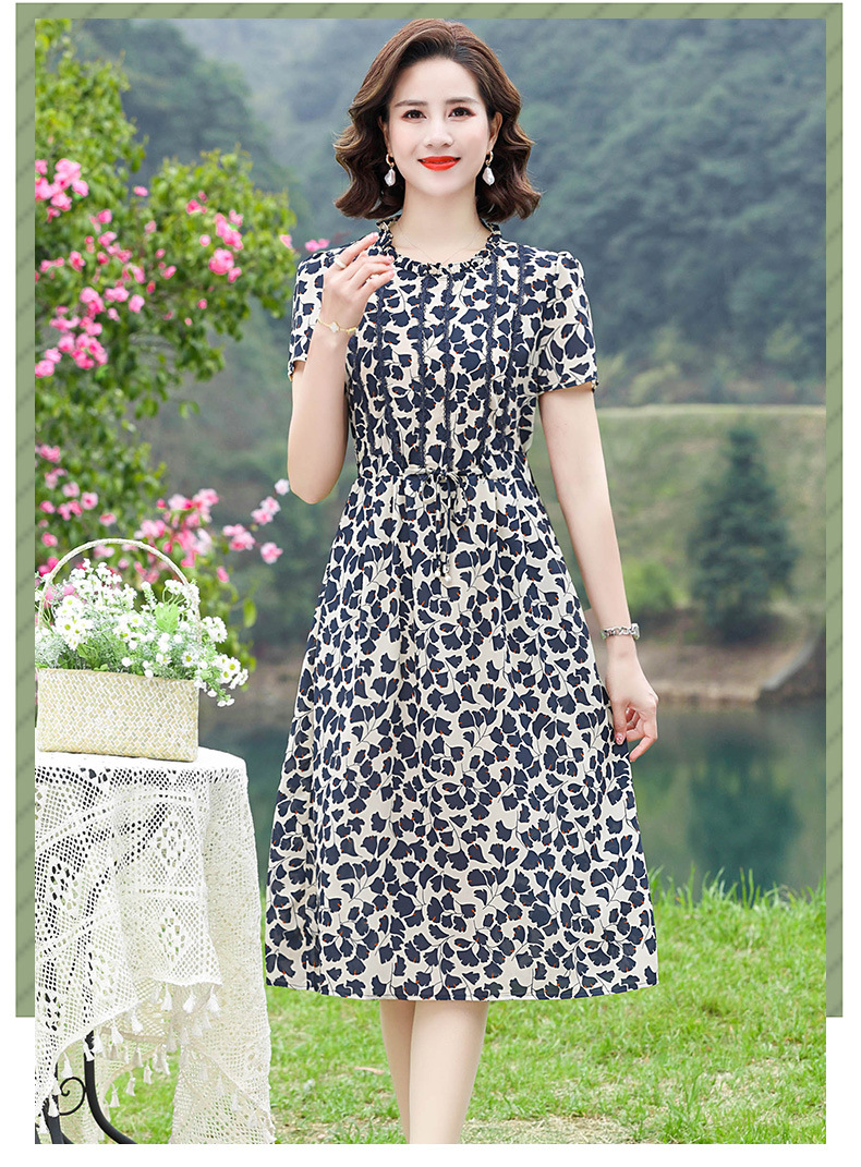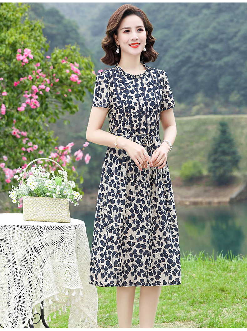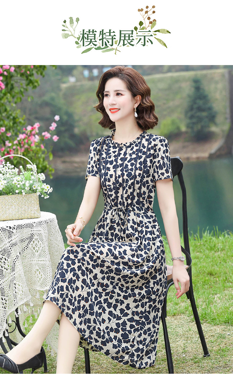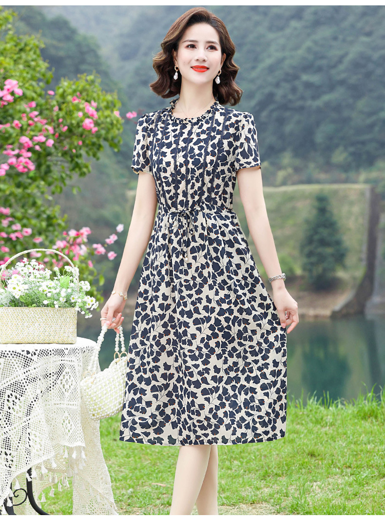 XH2094-2308 中年妈妈夏装时尚雪纺连衣裙遮肚新款中老年女夏季短袖碎花裙子薄