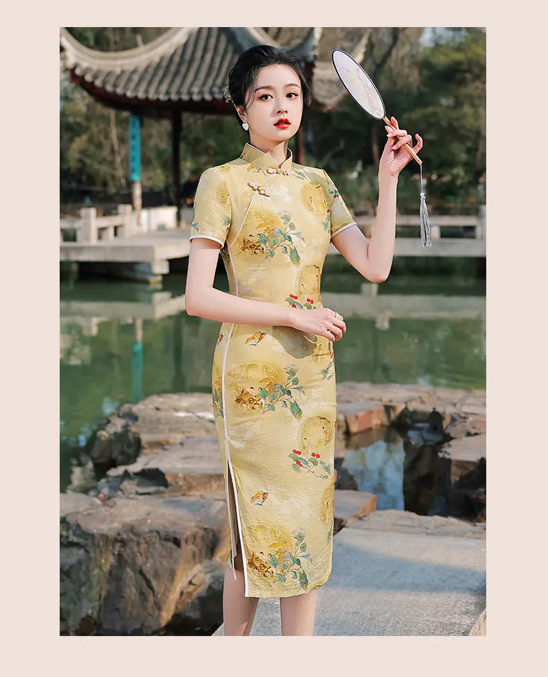 XL115金丝绒优雅气质短款旗袍