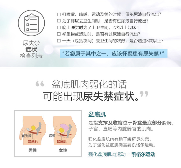 产品功效:降低尿失禁、妇女的产后尿失禁问题,治疗阴道脱垂以及预防子宫脱垂,以及预防男性的前列腺疼痛、良性前列腺增生症肿大和前列腺炎。