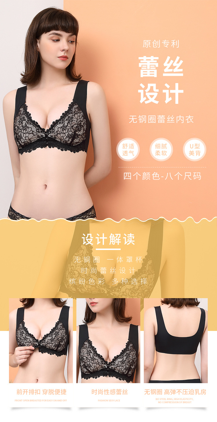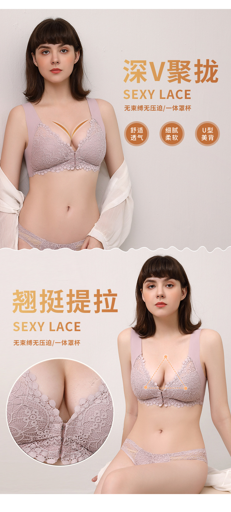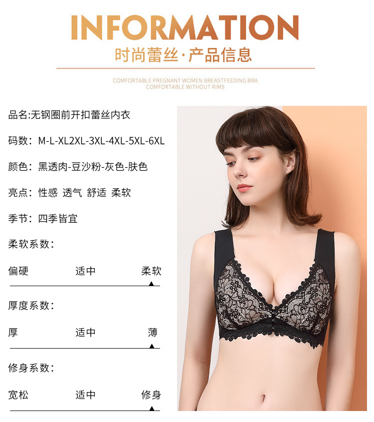 大尺码前扣内衣无钢圈文胸无痕内衣蕾丝胸罩文胸 WLJ梦露