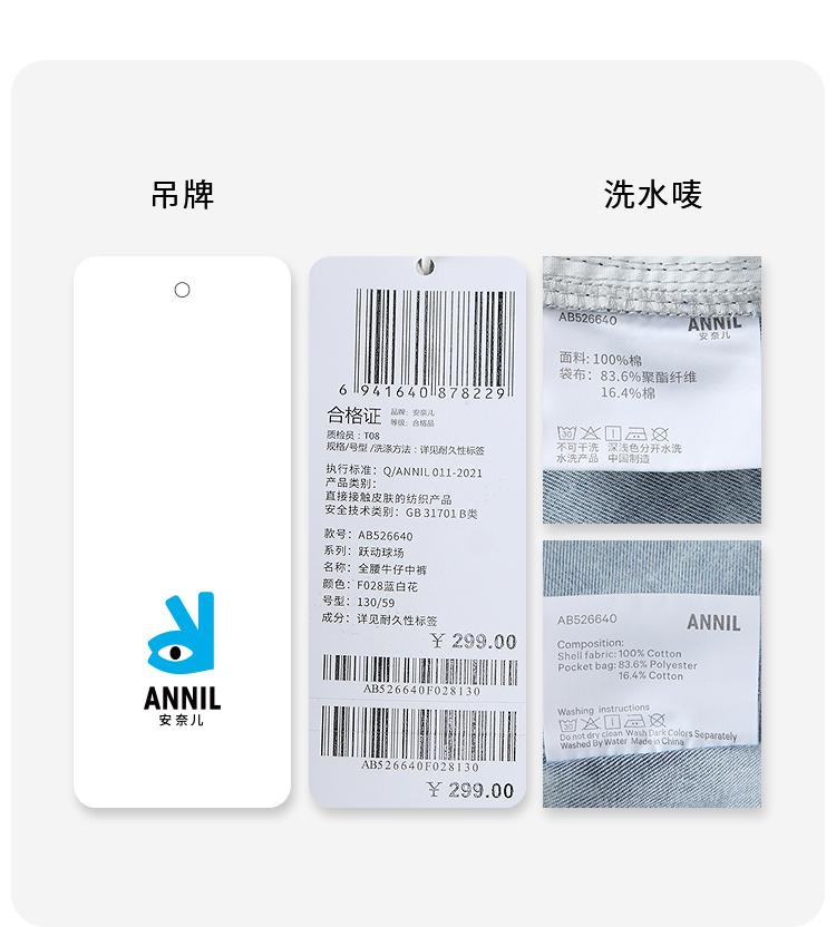 男童全腰牛仔中裤夏季新款安奈儿童装实体店同款AB526640