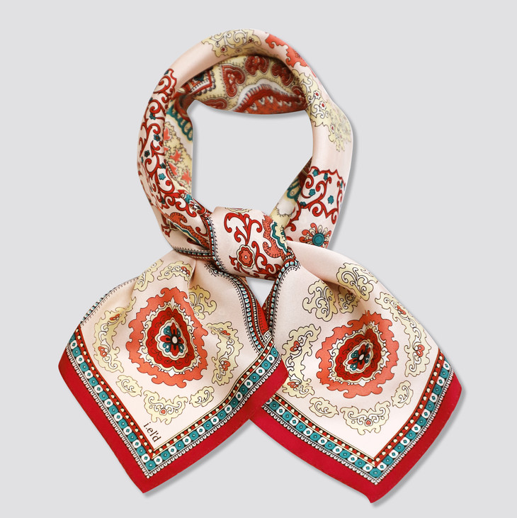 桑蚕丝古典对称花纹方巾(出口韩国余款)