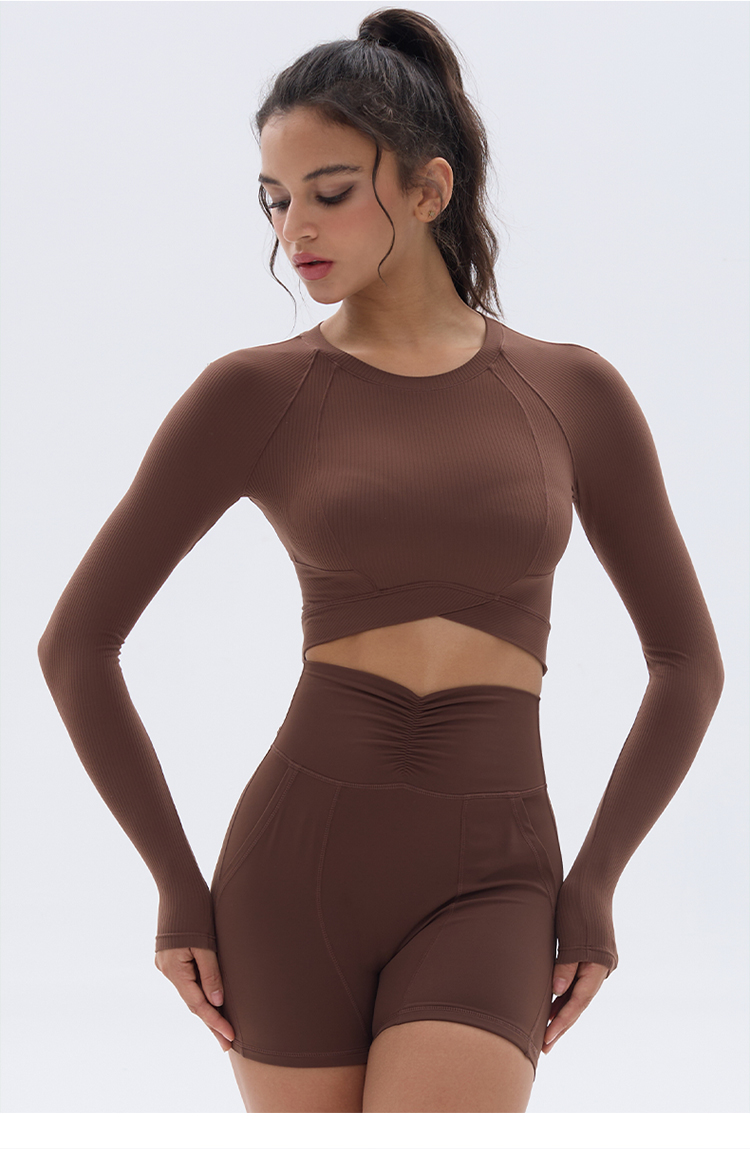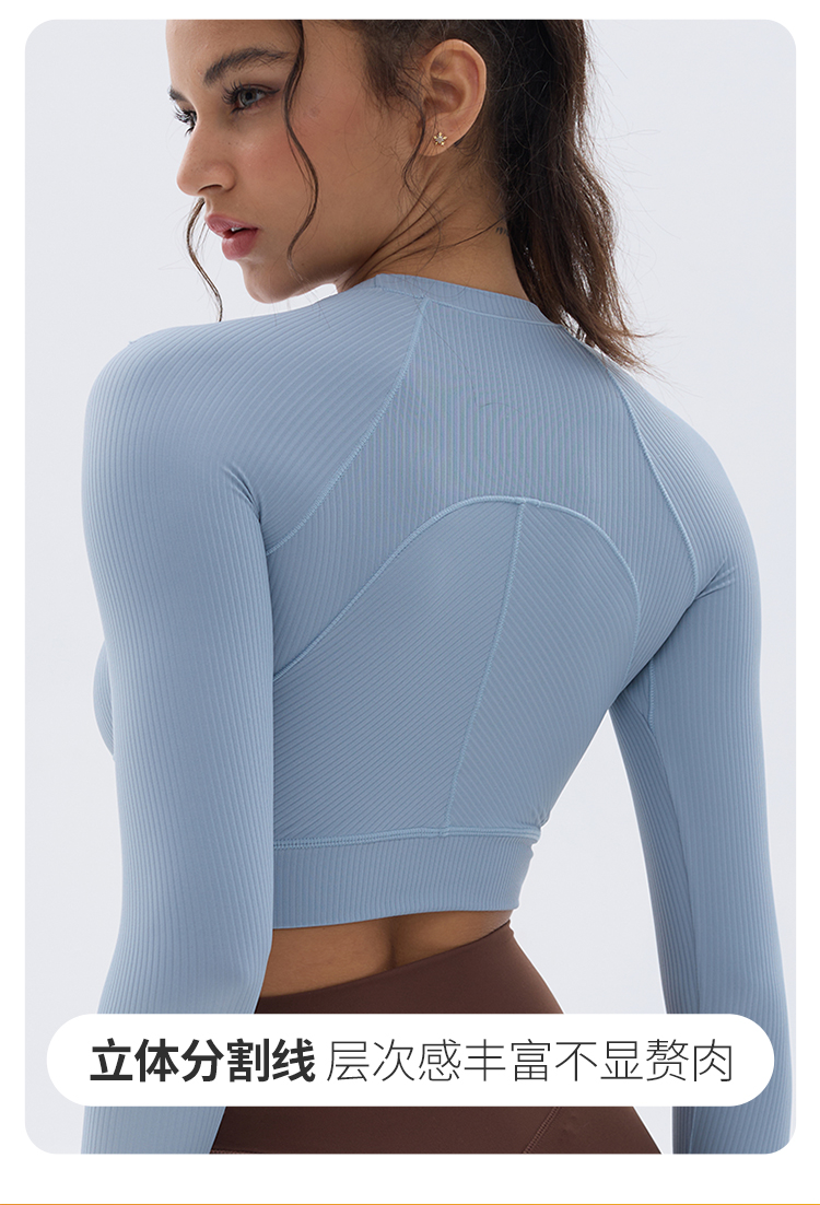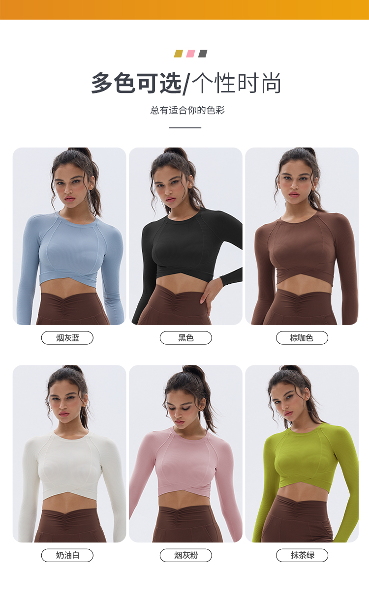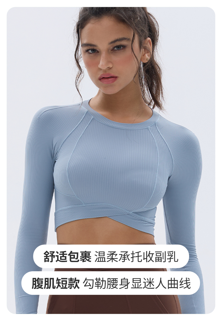 跃牌【小甜心】系列 速干跑步短款露脐弹力紧身健身长袖t恤9066