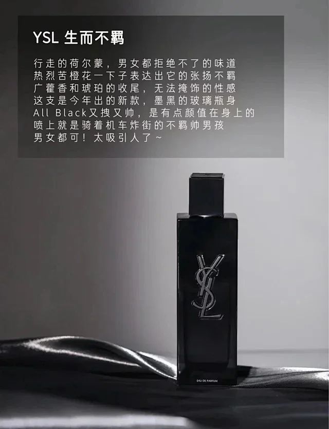 YS1新品生而不羁男士香水单单靠颜值就让人沦陷了!全新才上市的单品,灵感来自于圣罗/兰高定美学,纤长精致的线条感,低调的磨砂logo印刻于墨黑玻璃瓶身,就像一件雕塑艺术品,是绝对的高级。