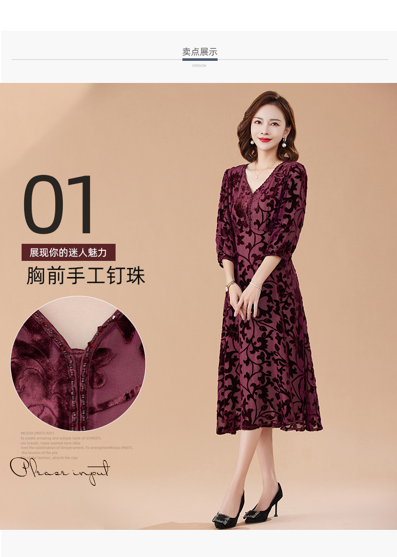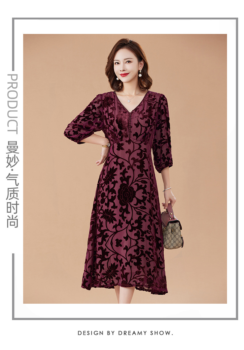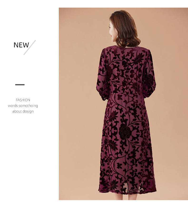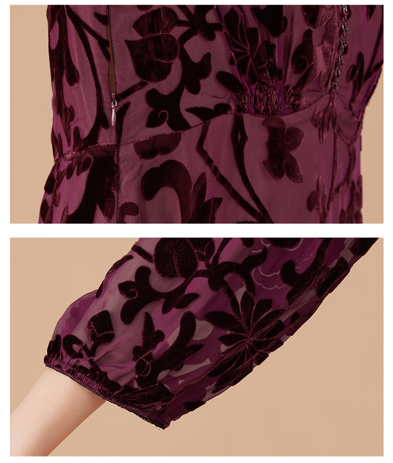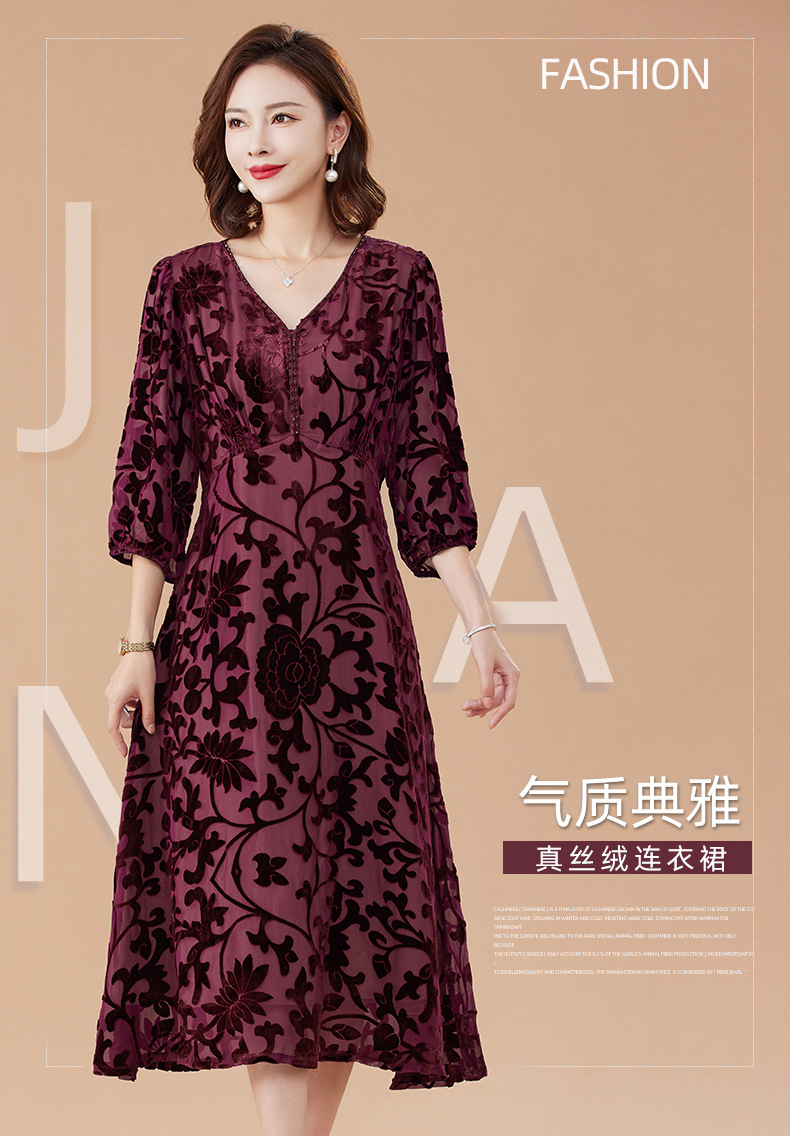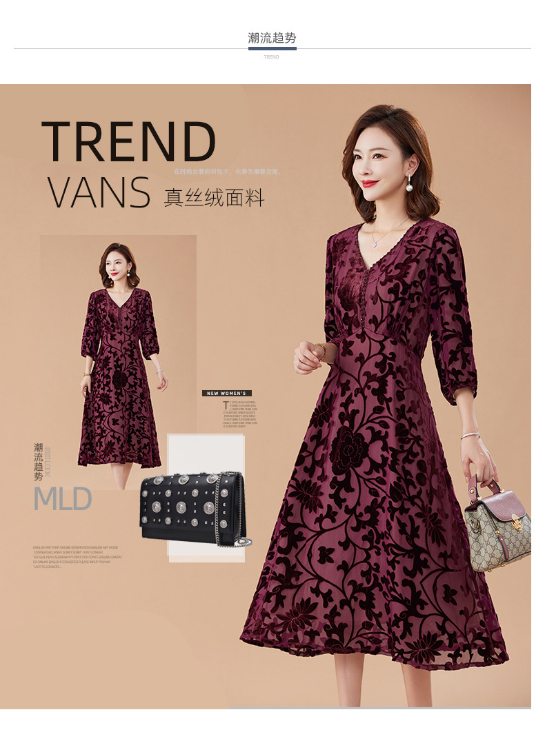 丁摩 真丝绒连衣裙新款春秋桑蚕丝植绒裙子女4ZF-100703