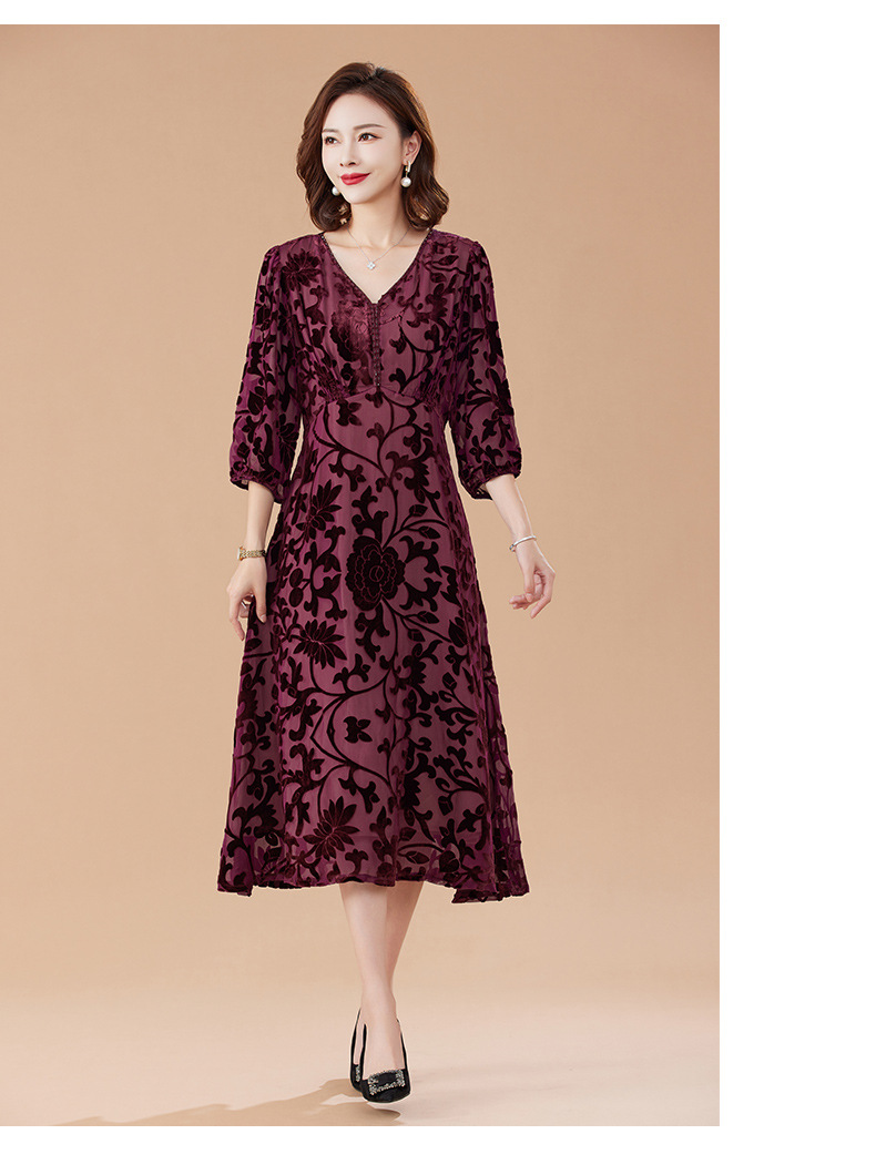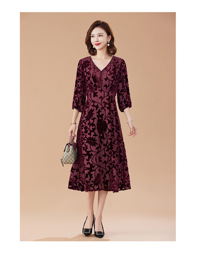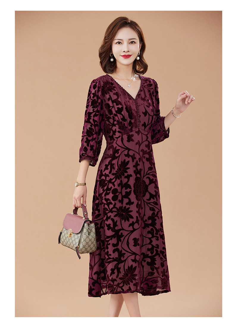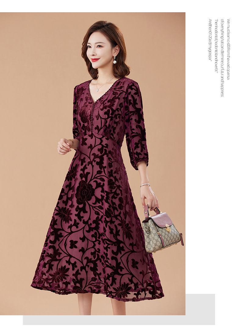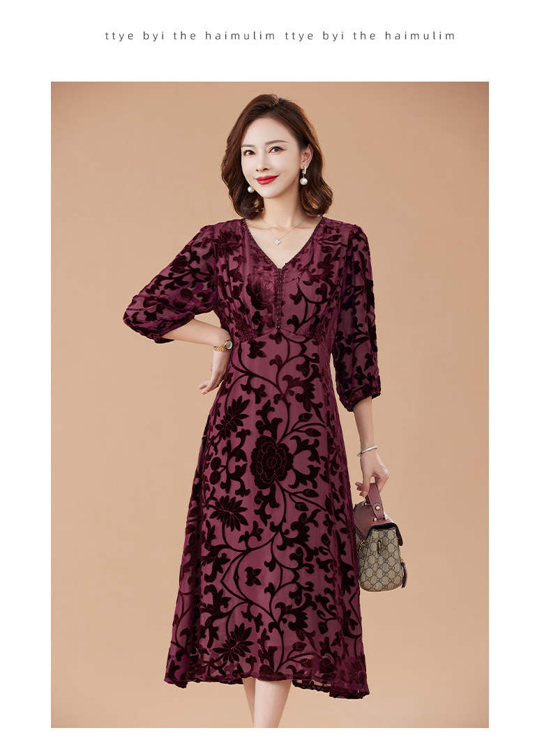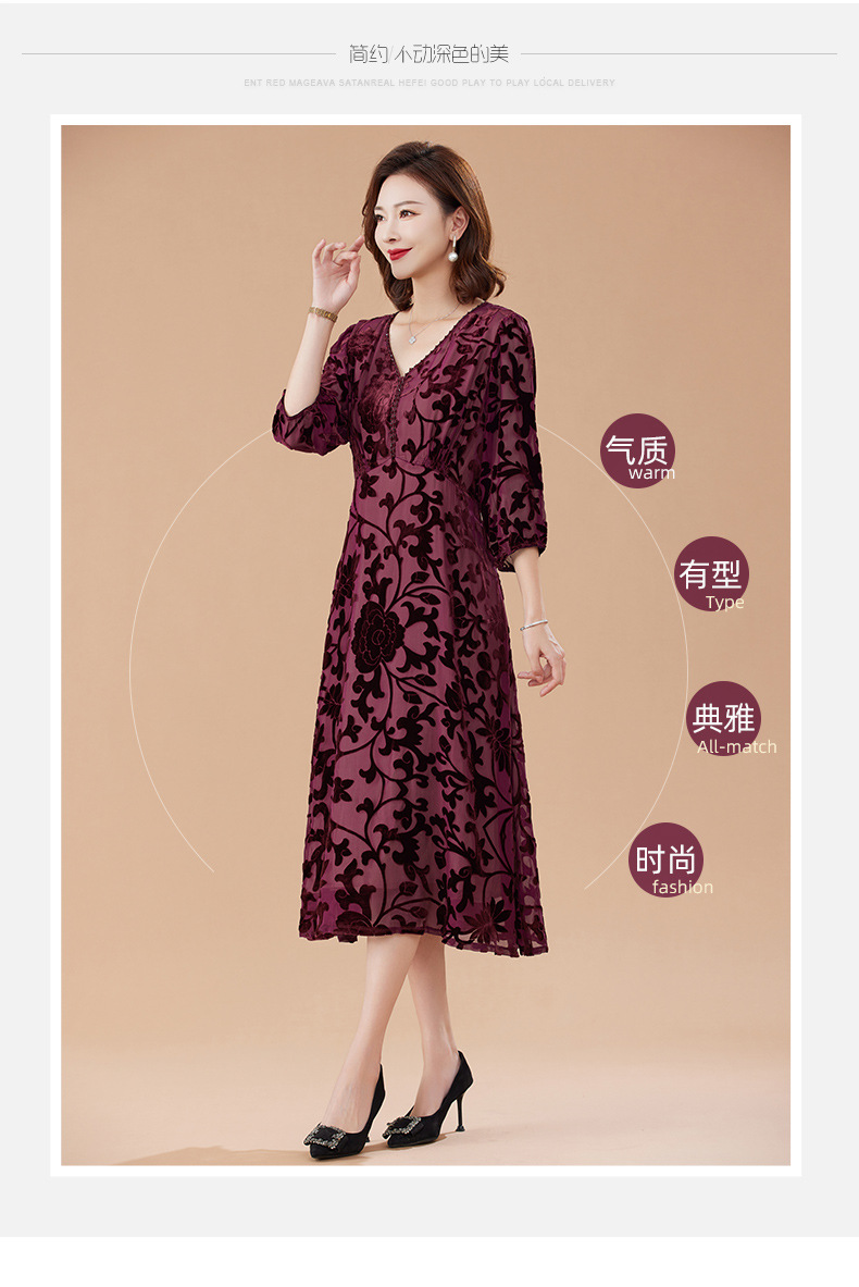 丁摩 真丝绒连衣裙新款春秋桑蚕丝植绒裙子女4ZF-100703