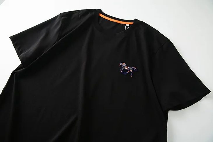 千元级意式彩马贴布绣男士夏季冰爽丝滑休闲圆领短袖T恤
