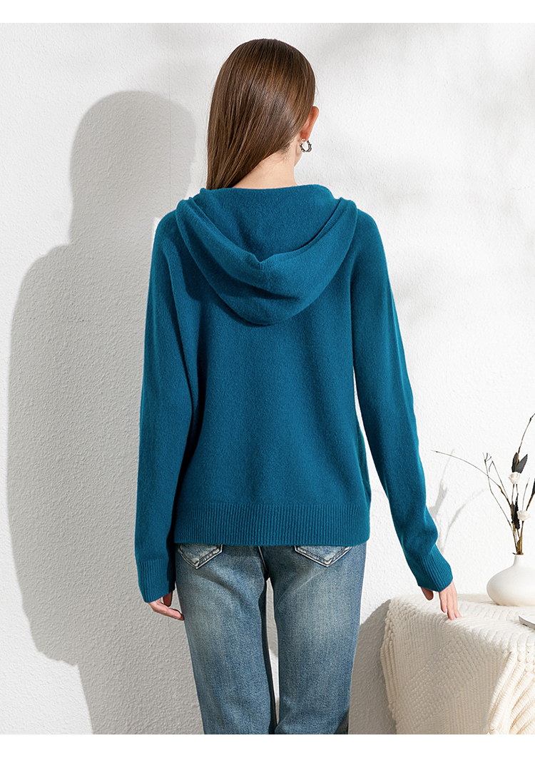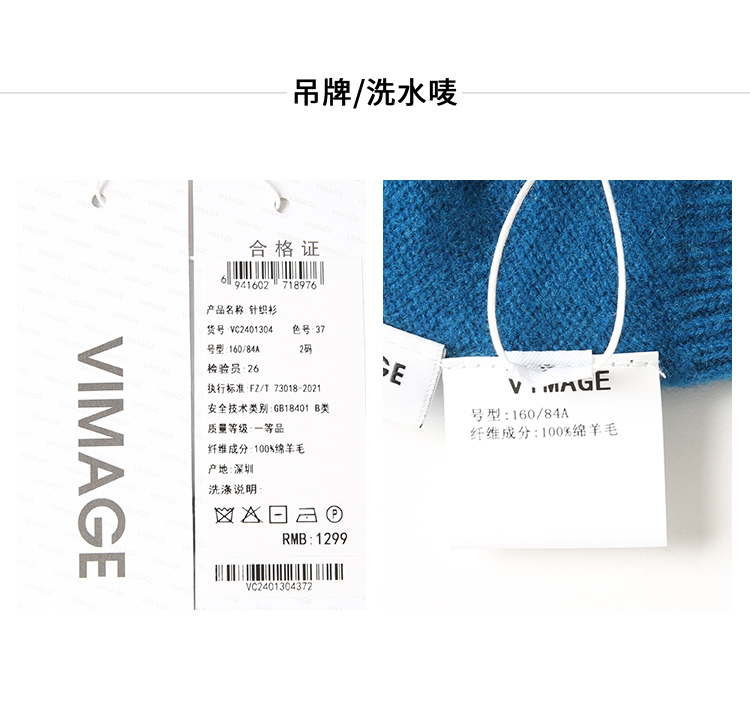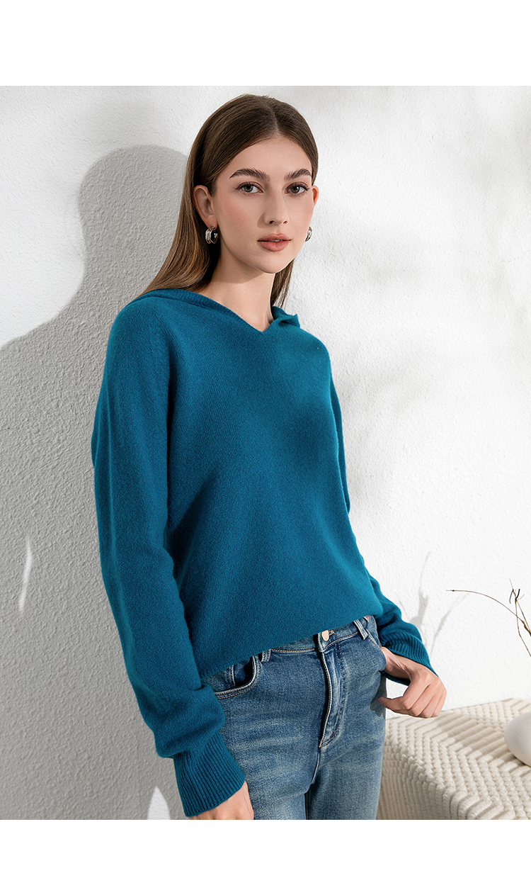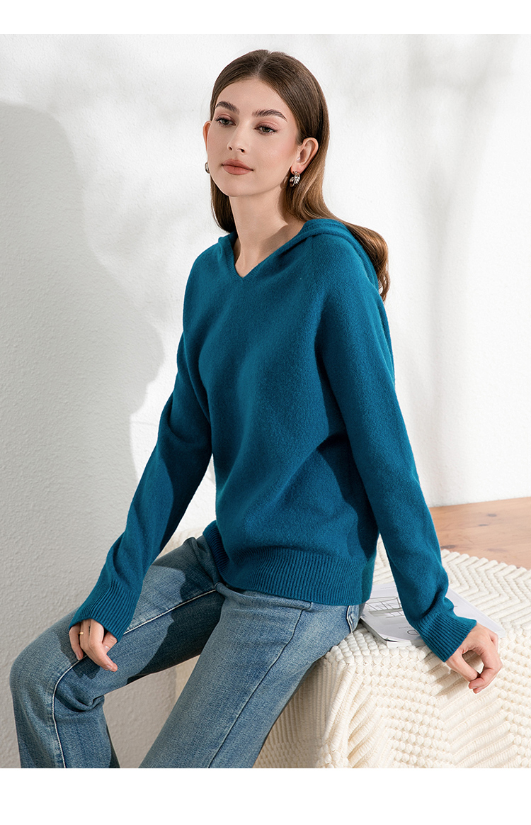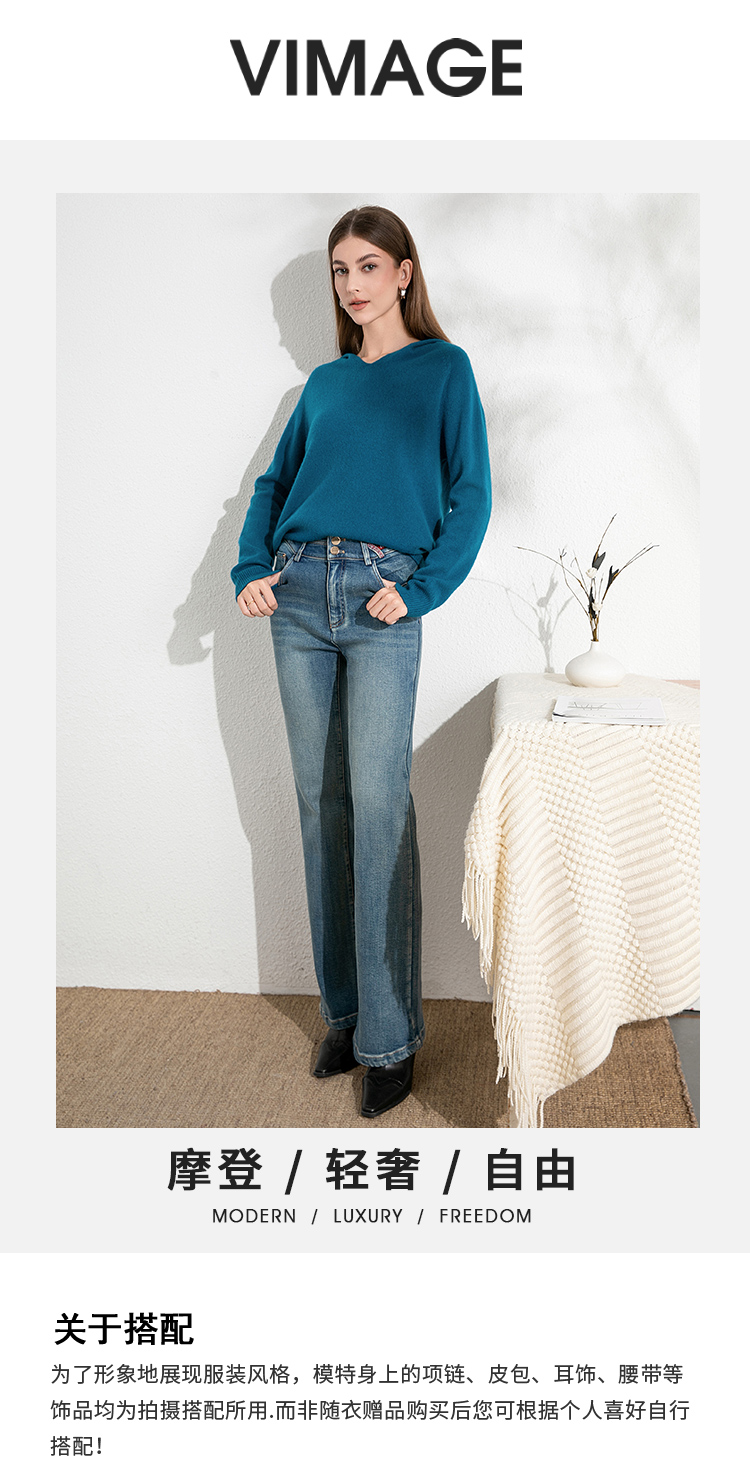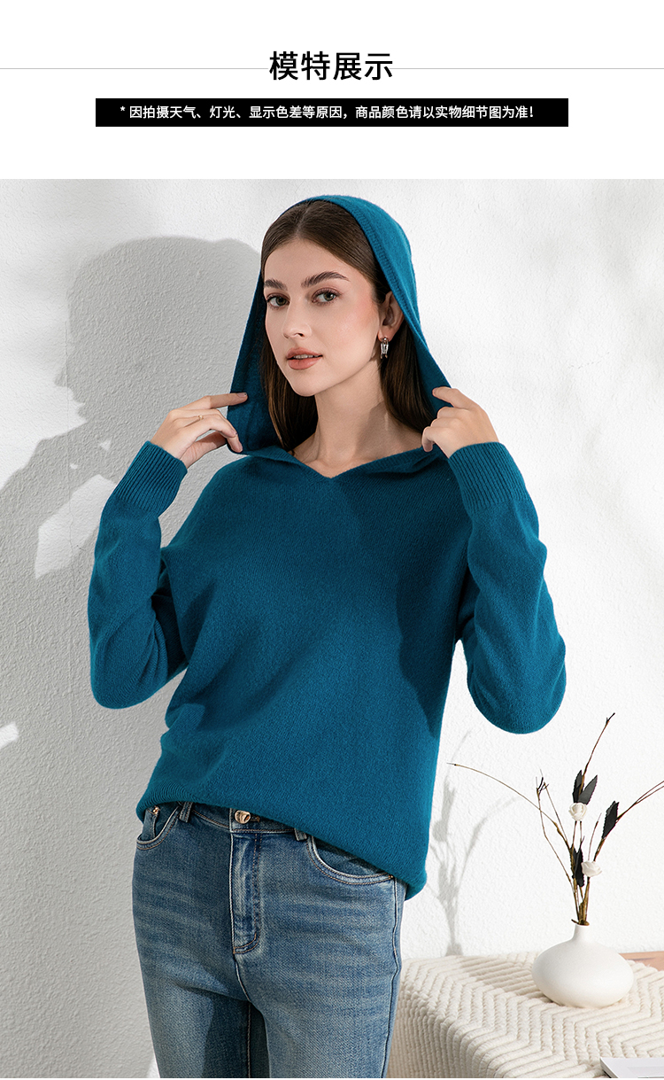 VIMAGE纬漫纪慵懒感V领百搭显瘦连帽针织衫秋季新款VC2401304