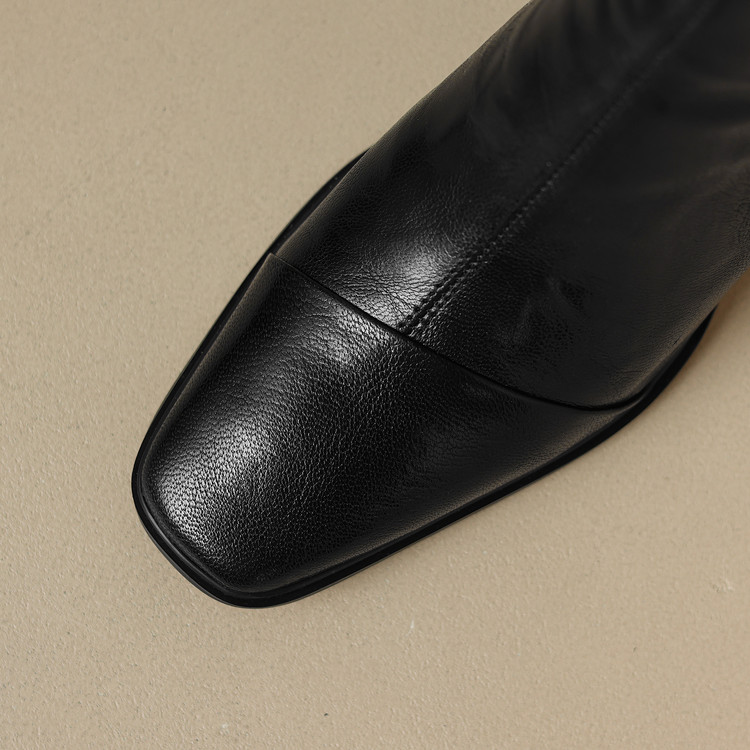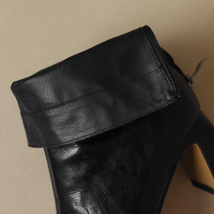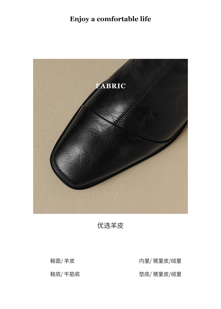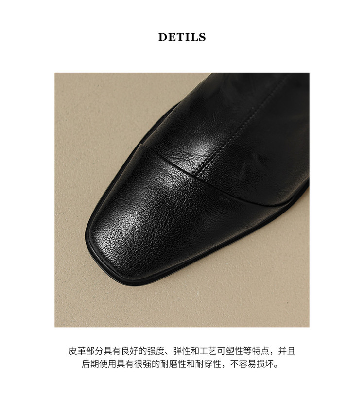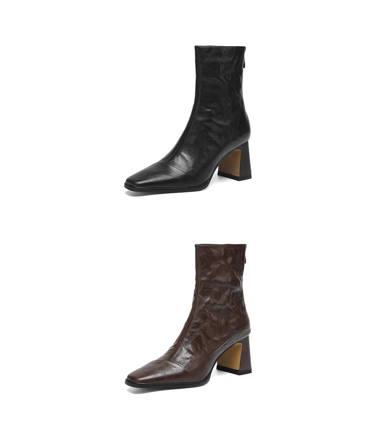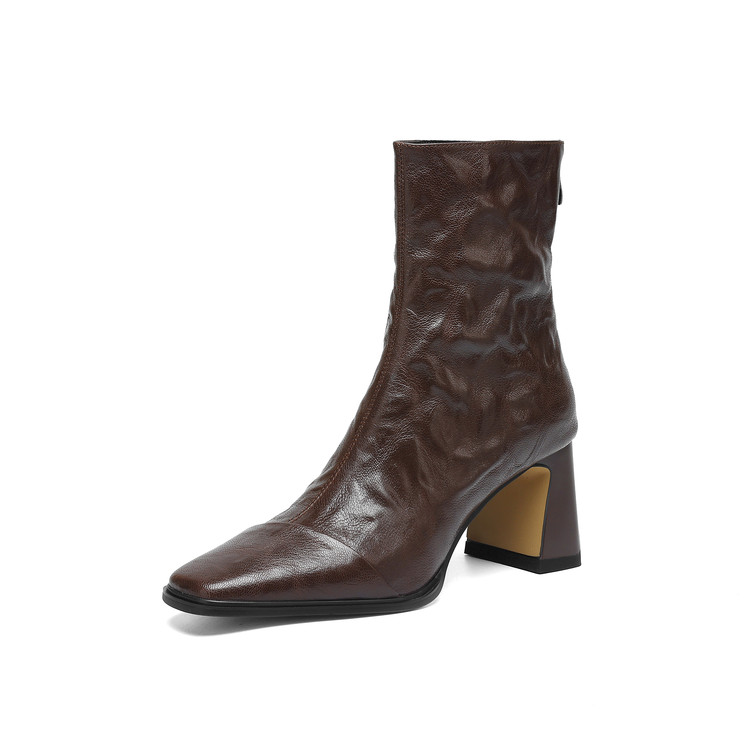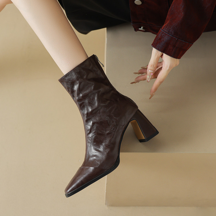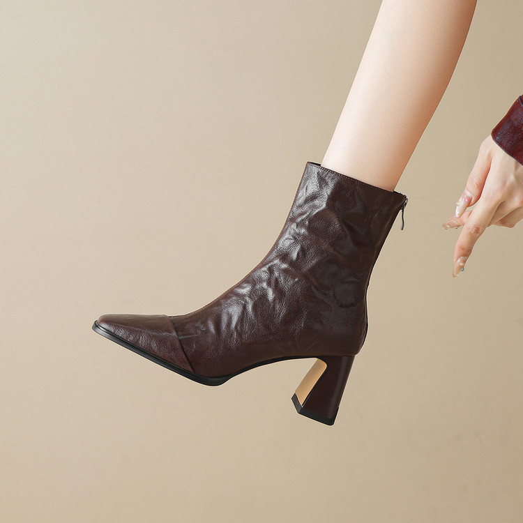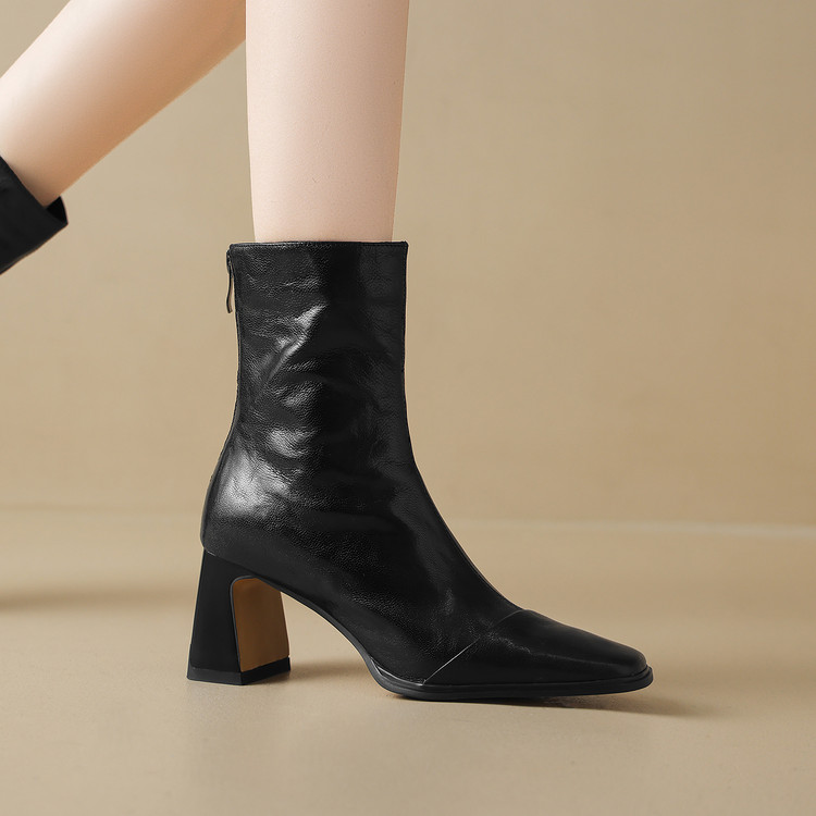 【预售5天】羊皮版~方头法式气质粗跟短靴女后拉链通勤瘦瘦靴复古马丁靴单靴WXJFG&W720