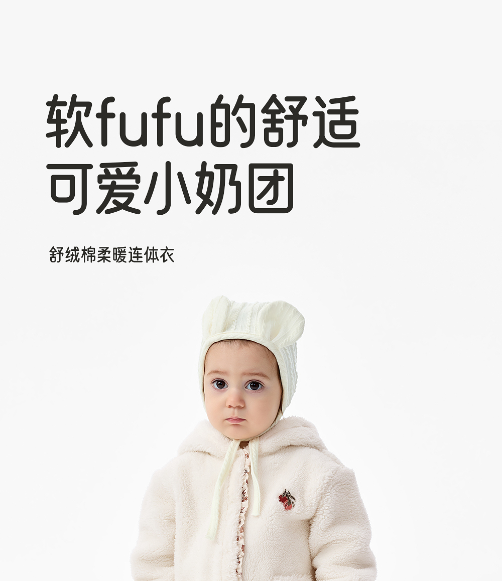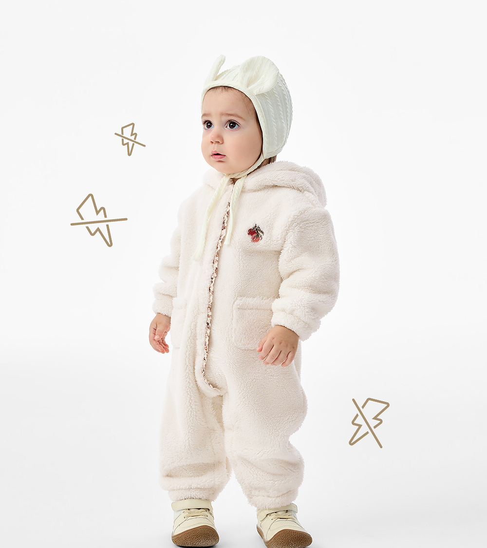 【商场同款】英氏婴儿连身衣秋冬季保暖女童衣服加绒防寒连体衣
