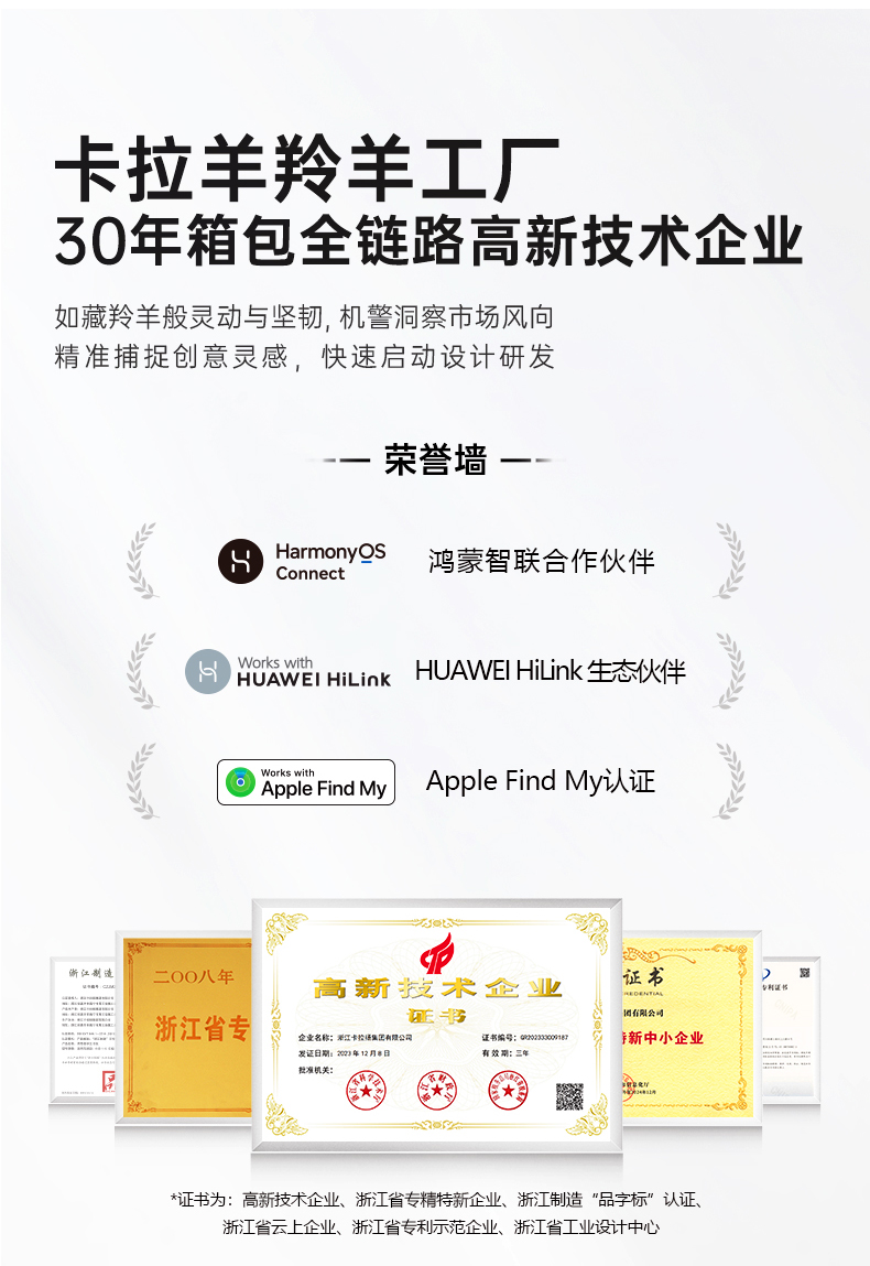 - 浙江卡拉扬集团有限公司专注箱包27年,旗下有卡拉羊和9UM两大品牌,有浙江海宁和江苏沭阳两大工厂,拥有多项知识产权,是集智能化、设计生产、品牌营销为一体的综合型企业。