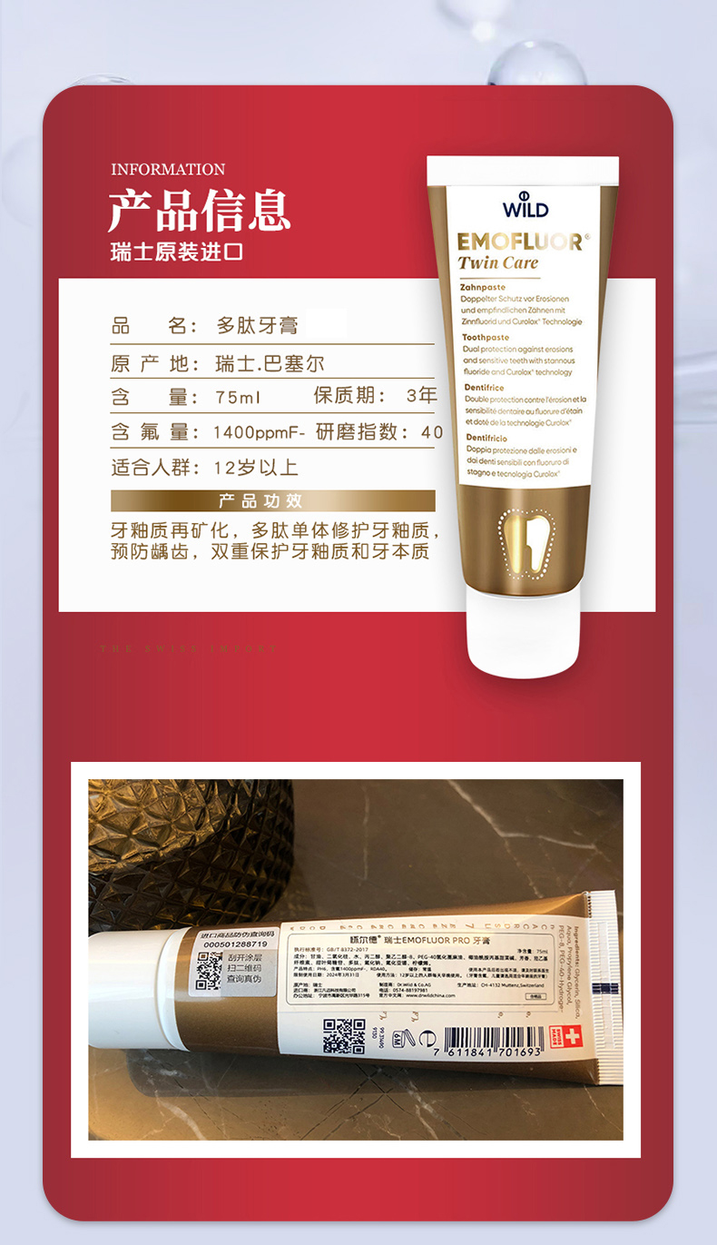 【品牌直发】瑞士进口Dr.wild怀尔德多肽牙膏