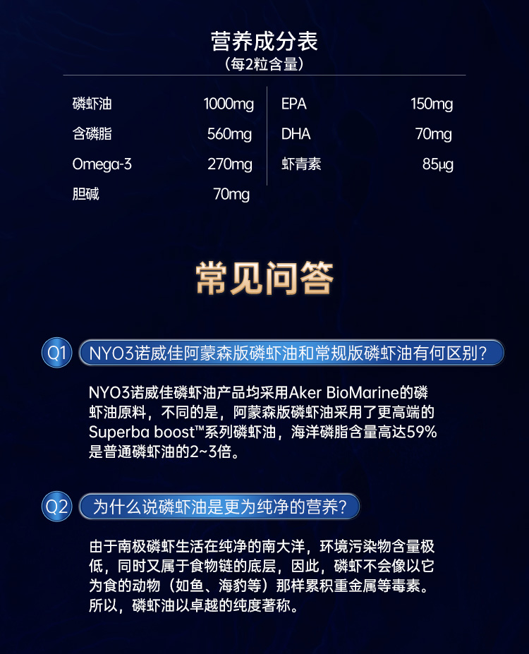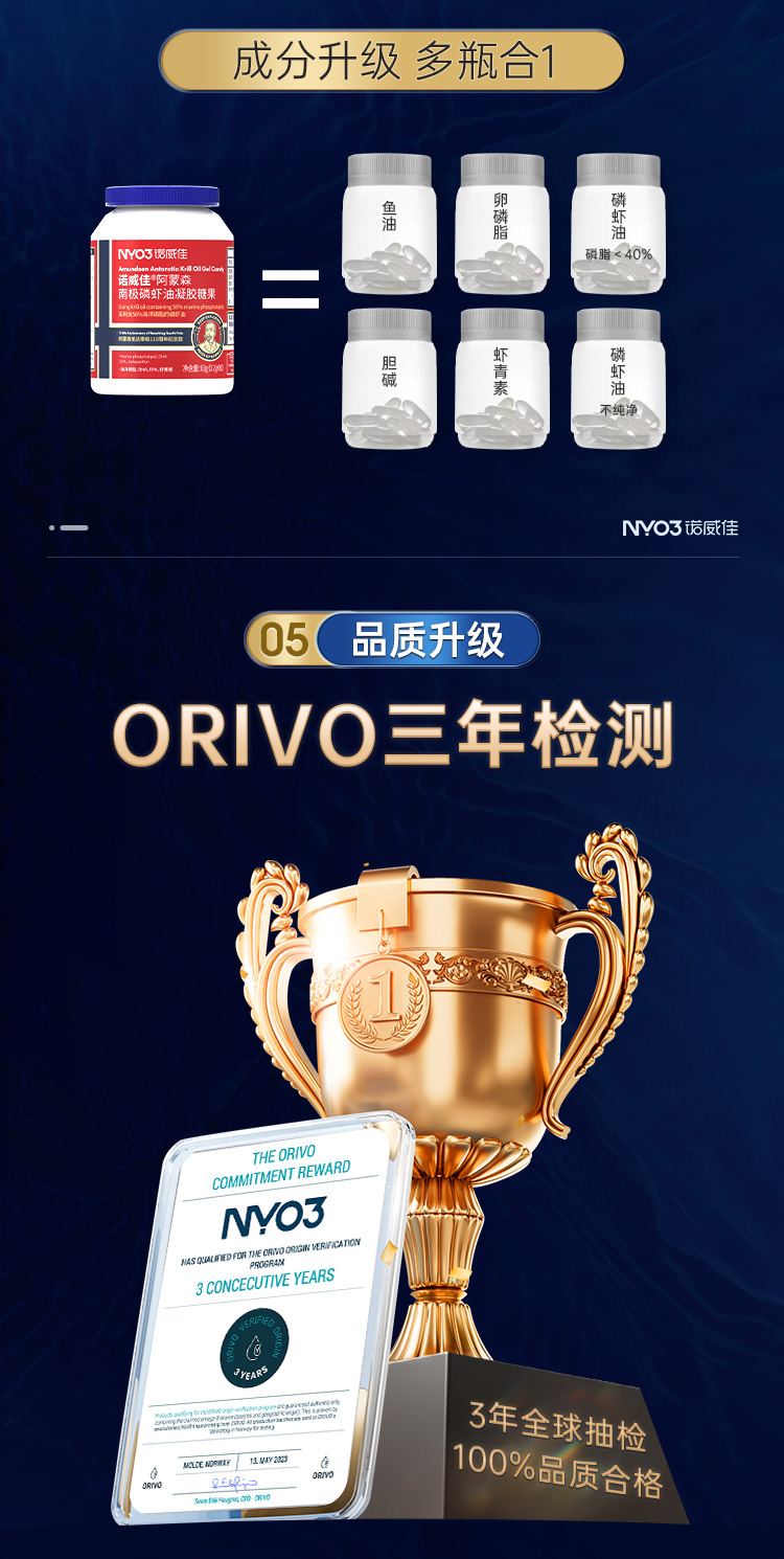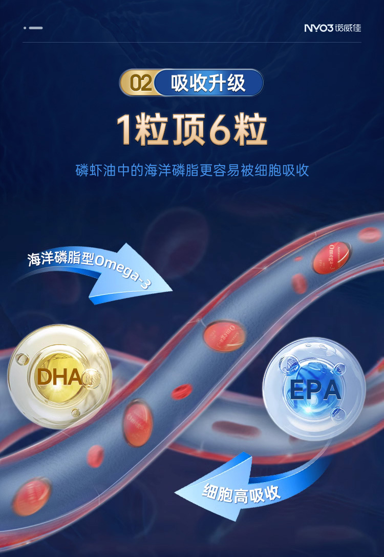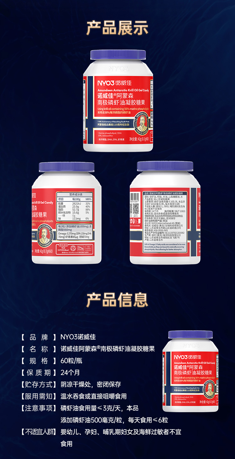 【挪威百年专研】NYO3南极磷虾油软胶囊60粒/瓶 高纯Omega-3心脑守护 成人冻龄胶囊