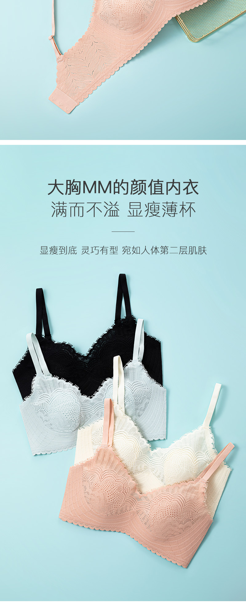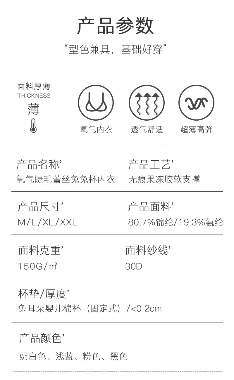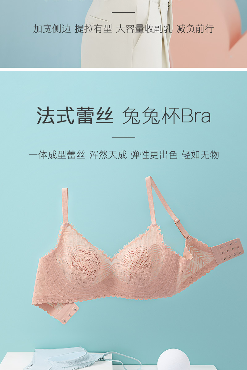 买2件送内衣洗衣液小样【撩人于无形】透梦-氧气睫毛蕾丝兔兔杯内衣云感托舒适有型兔耳杯设计无痕更聚拢轻盈不闷热防露点防外扩性感隐于此