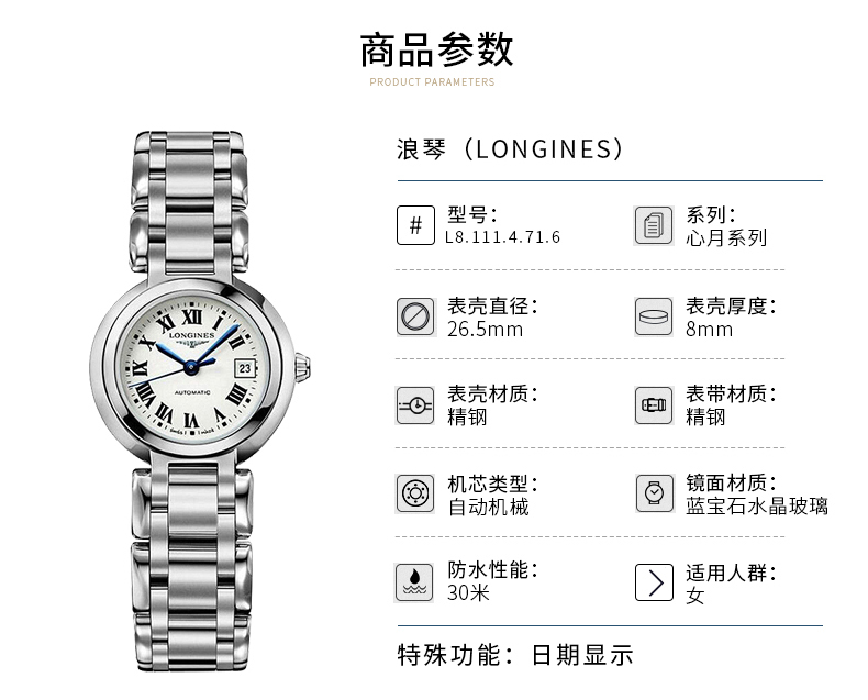 【时计廊】浪琴心月系列自动机械女士腕表 L8.111.4.71.6