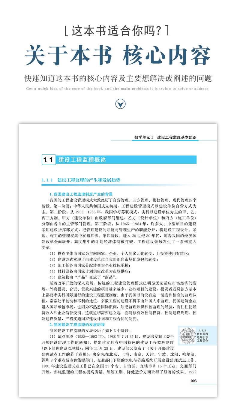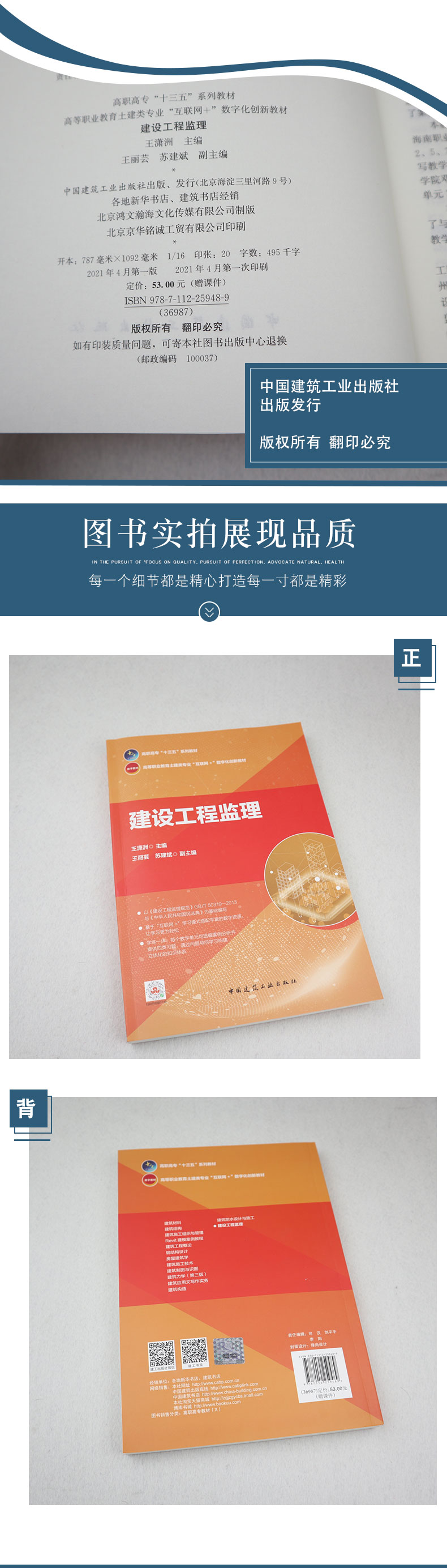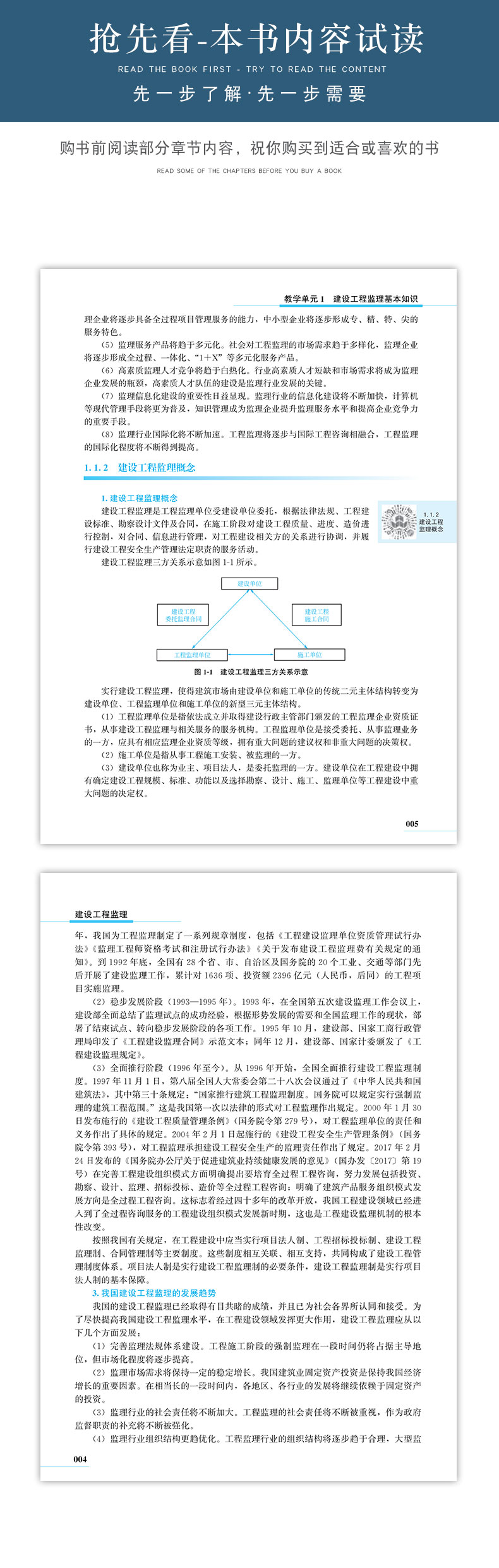 主编广东交通职业技术学院的王潇洲。广东交通职业技术学院是一所工科为主的综合性高等职业院校,2004年以“优秀”等级通过教育部高职高专人才培养水平评估,2013年以“优秀”等级通过首批国家骨干高职院校建设项目验收。 广东交通职业技术学院创办于1959年,1999年经教育部批准,由广东交通学校、广东省航运学校合并组建而成。截至2017年1月,学校有广州市天河区、花都区两个校区,总占地面积1190多亩,有128个一体化多功能校内实训教学场所;设有9个二级学院,高职招生专业41个;有教职工总数804人,全日制学生13700多人。副主编和参编人员为全国范围内建筑类高职院校或开设土建类专业院校的教师,均为讲师以上职称,本课程授课经验3年及以上,具备独立开发微课、课件、题目的能力,能较好完成本教材配套数字资源。