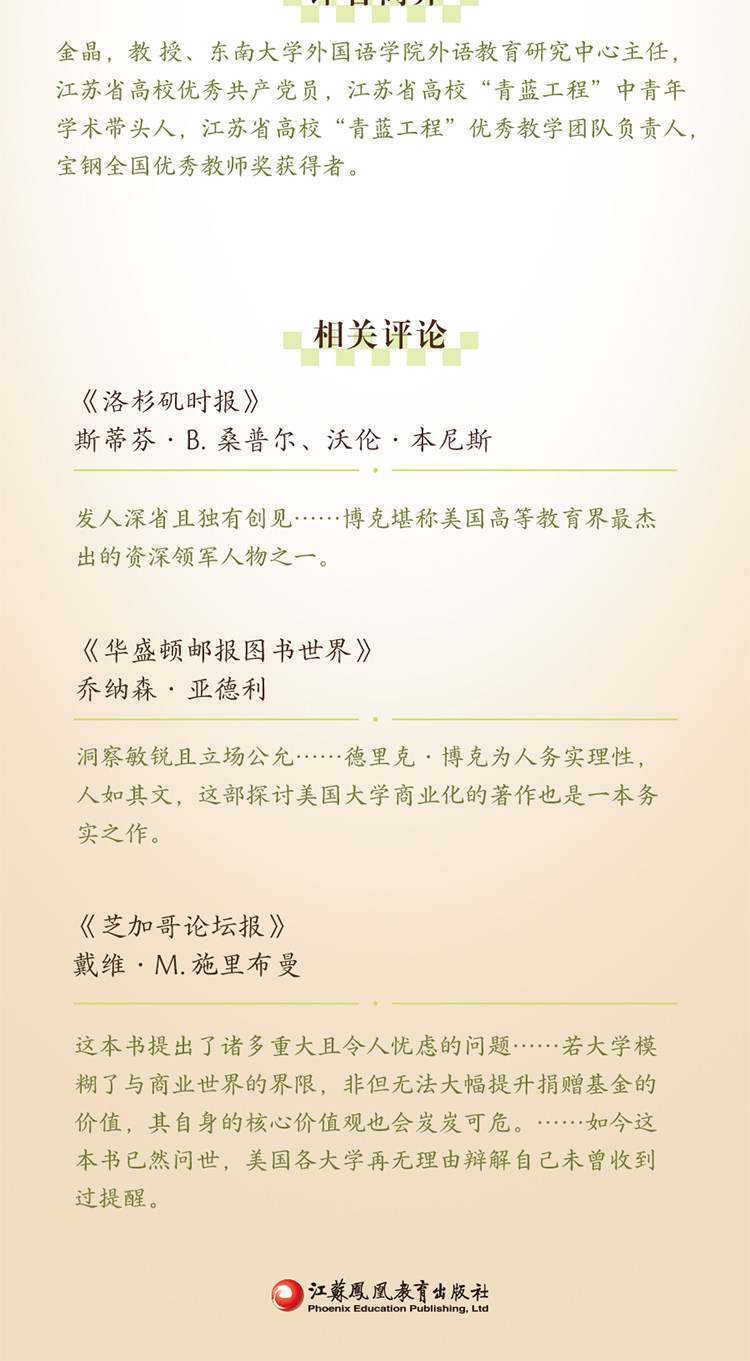 - 江苏凤凰教育出版社1984年成立,1994年被评为首批“全国优秀出版单位”,2009年入选首批“全国百佳图书出版单位”。