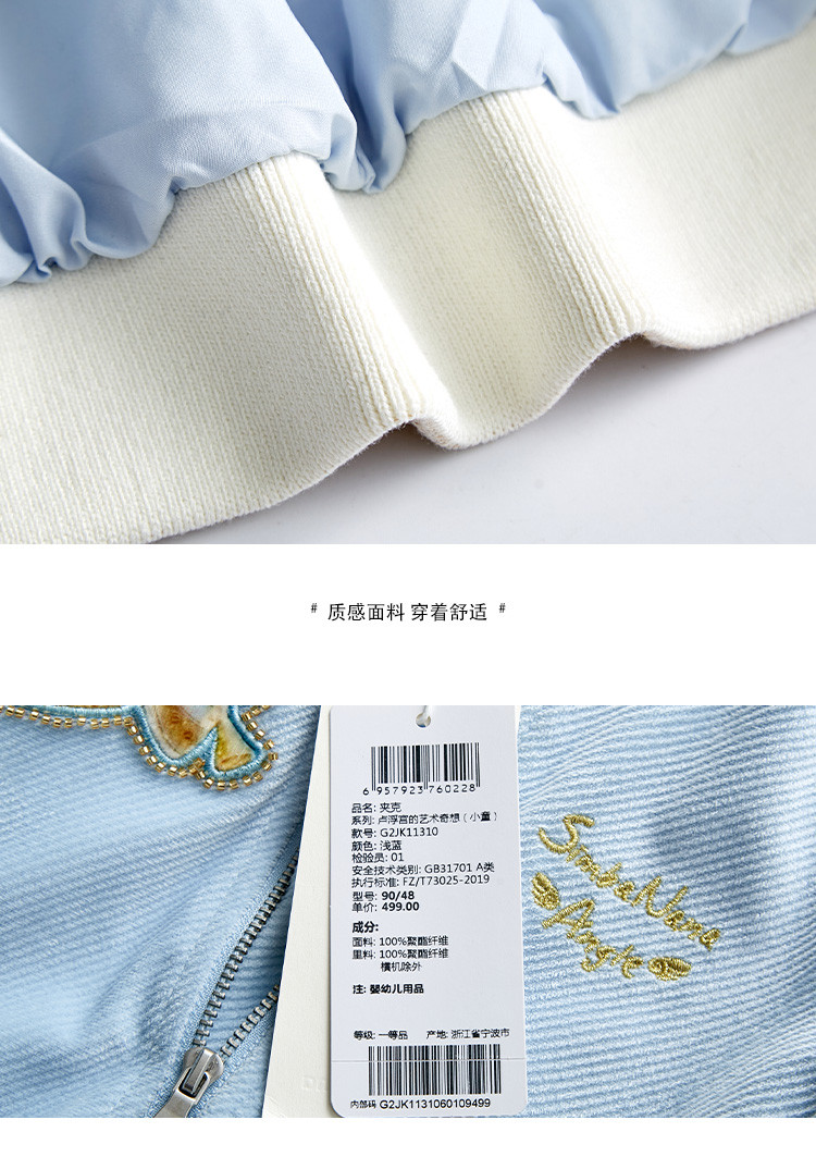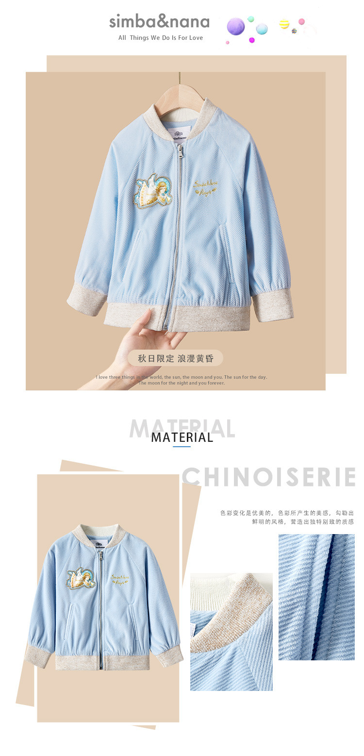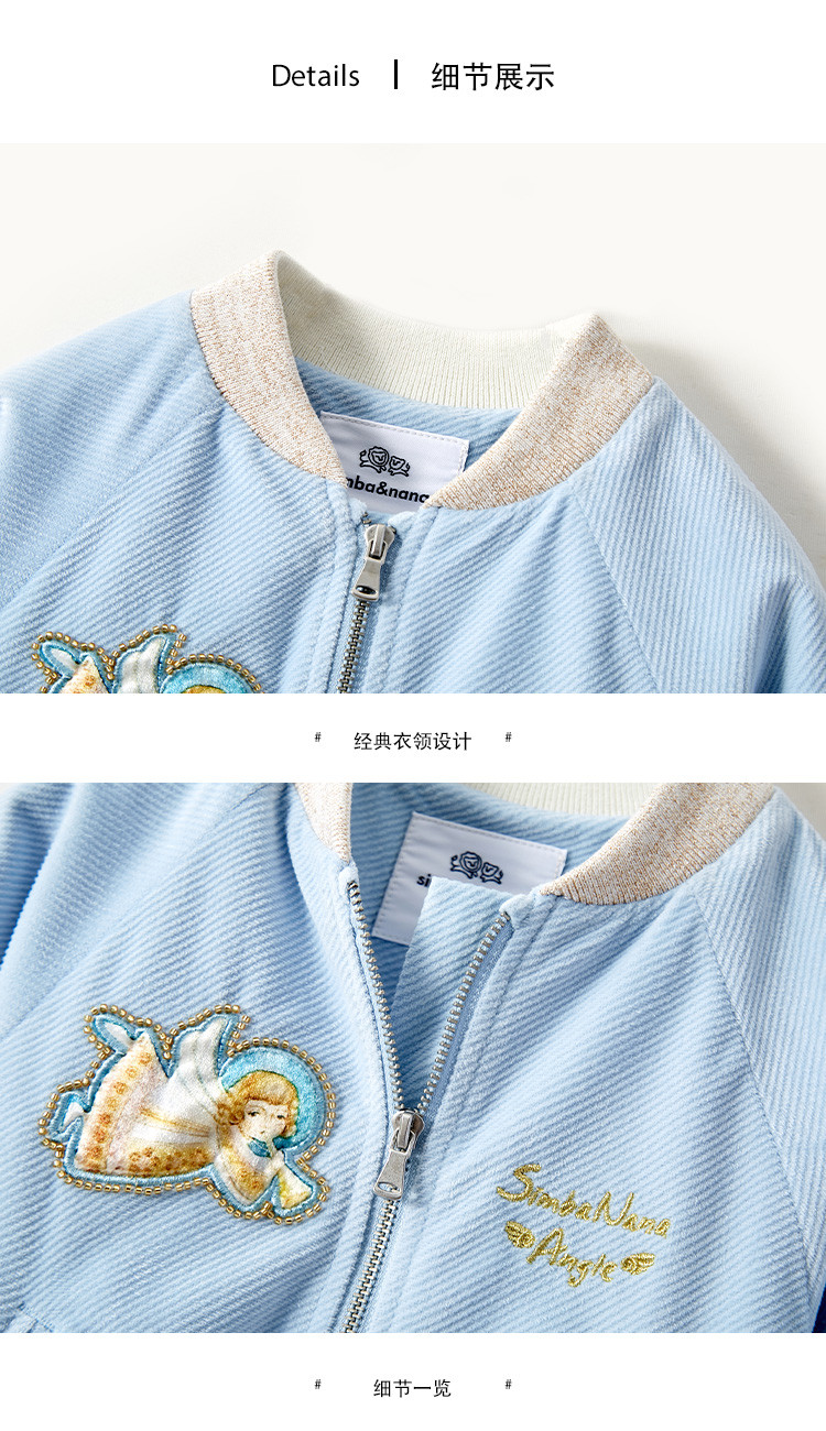 【辛巴娜娜】simbanana女童蓝色棒球服新款宝宝洋气开衫儿童甜美外套