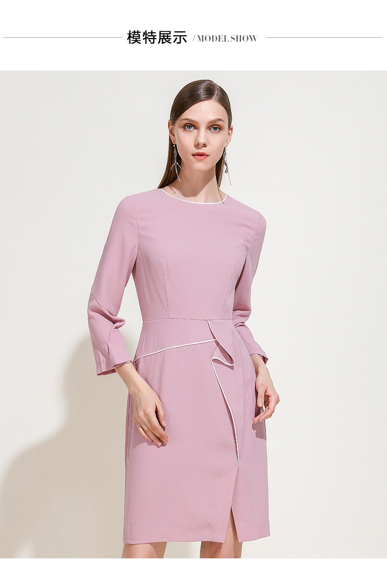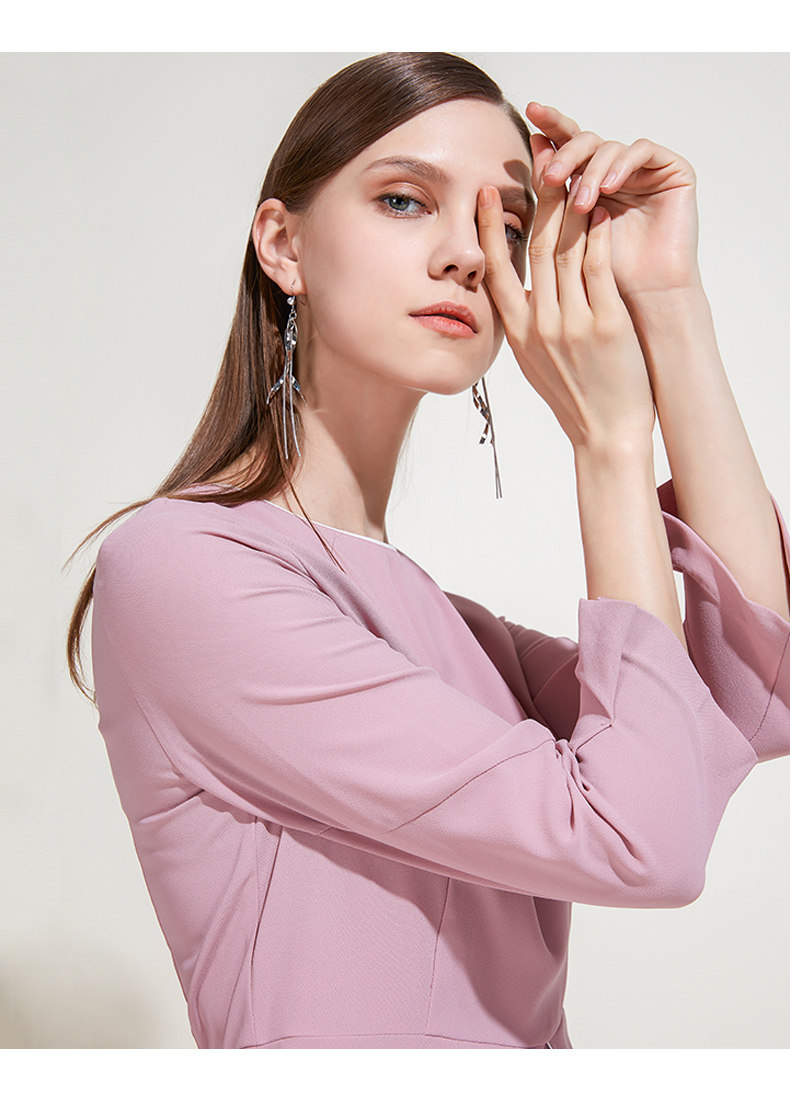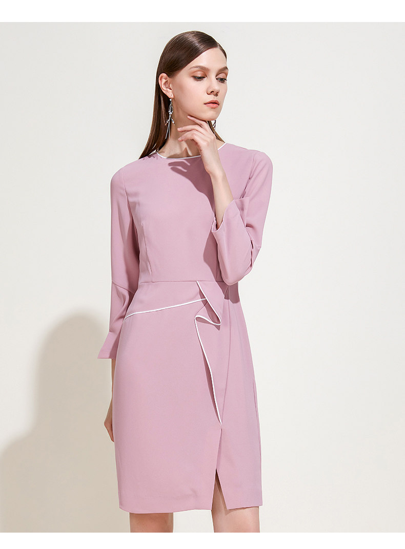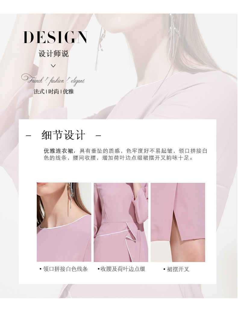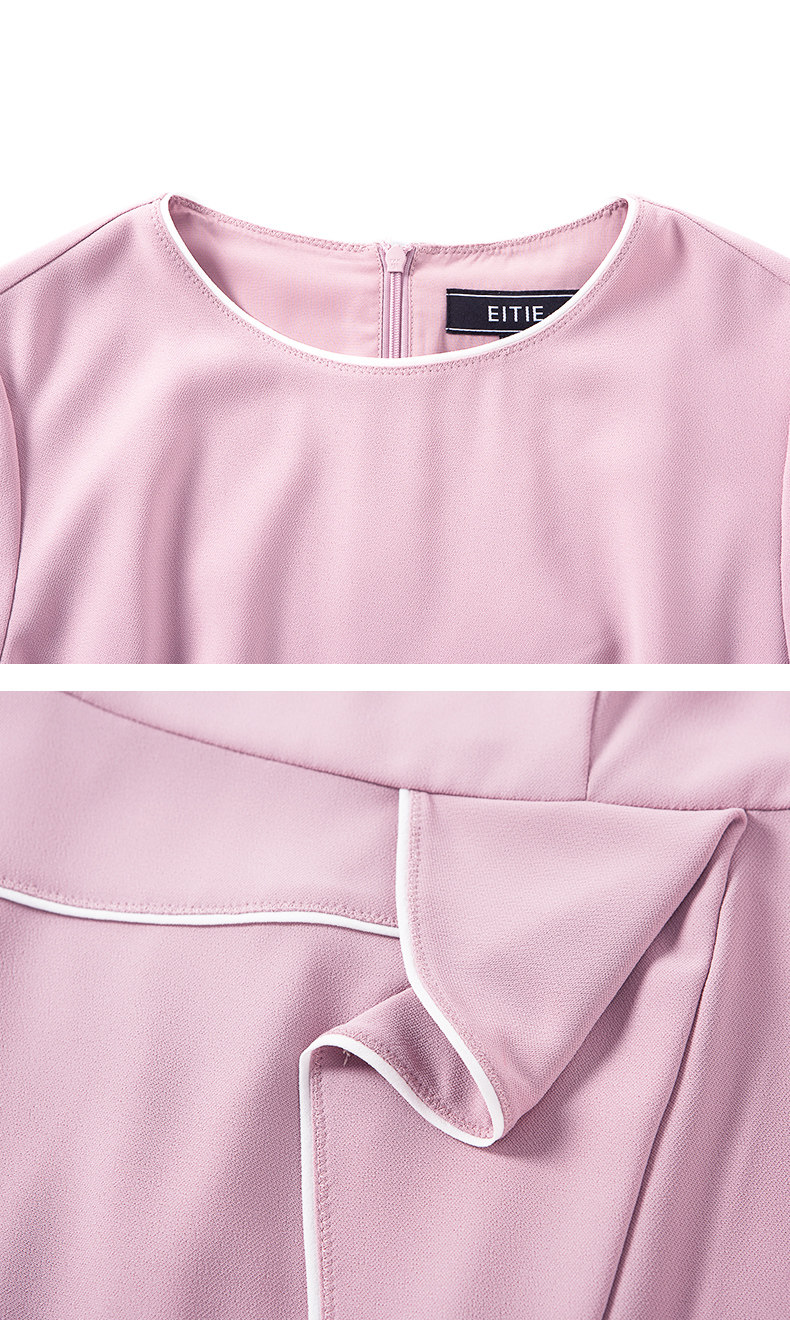 EITIE爱特爱品牌女装春夏新款荷叶边褶皱拼接气质优雅连衣裙5907620