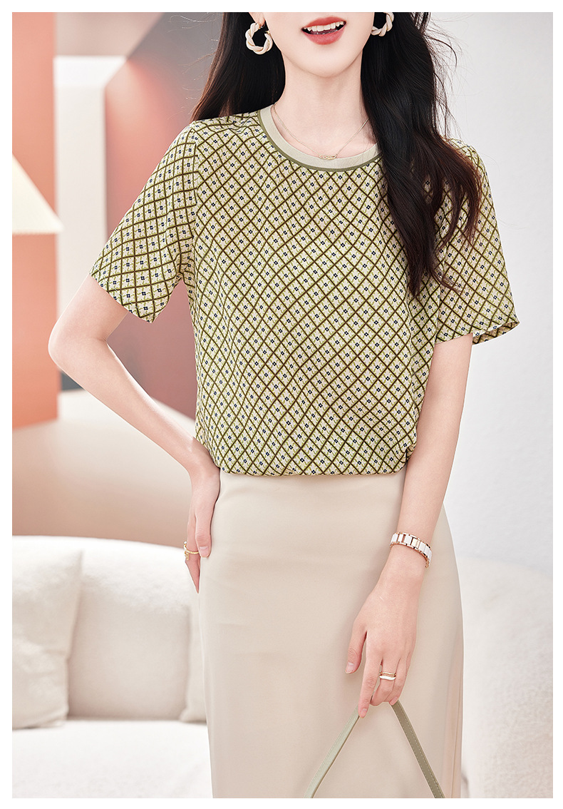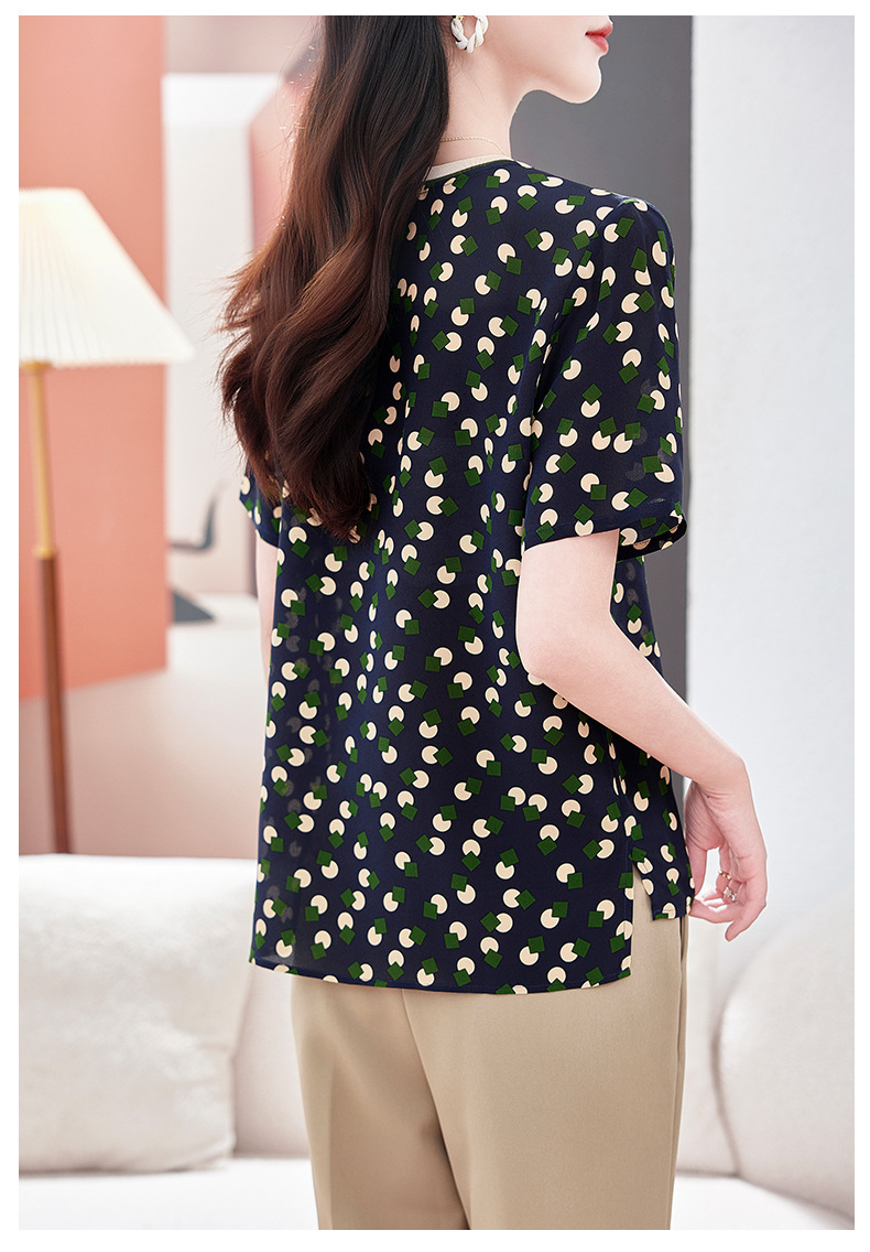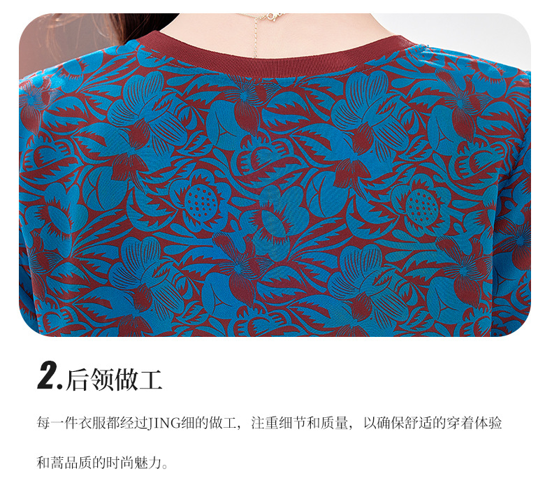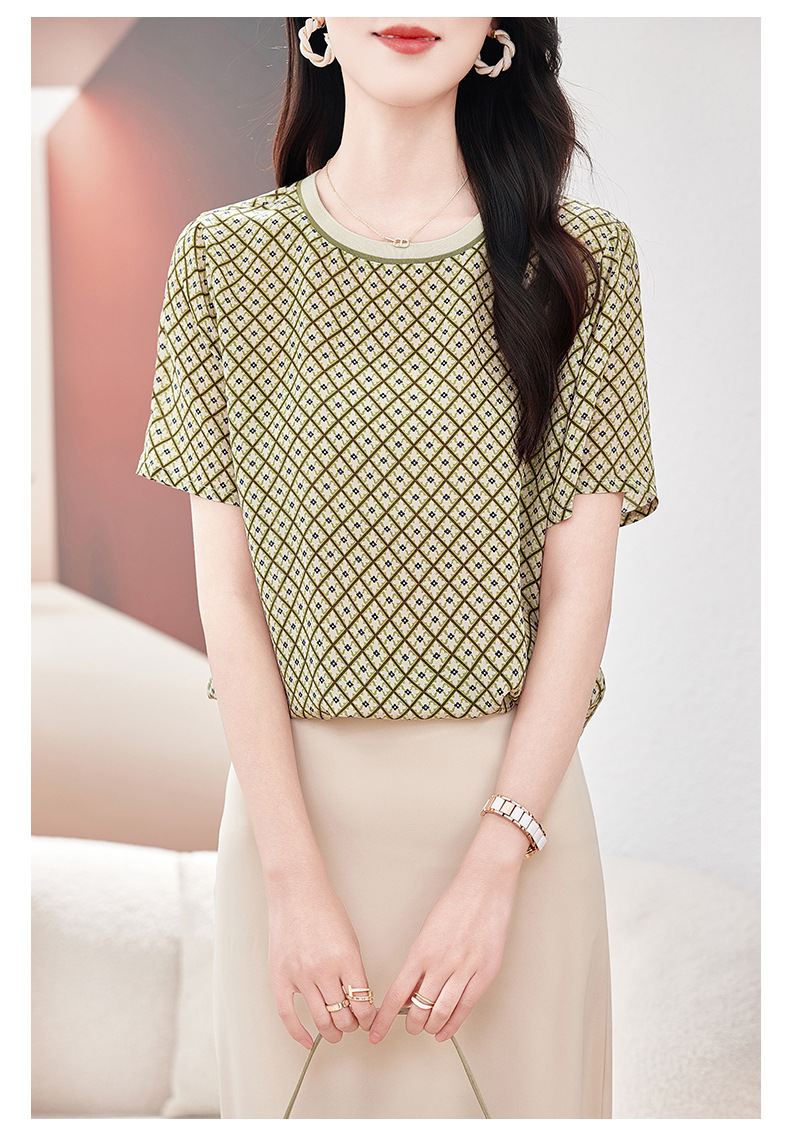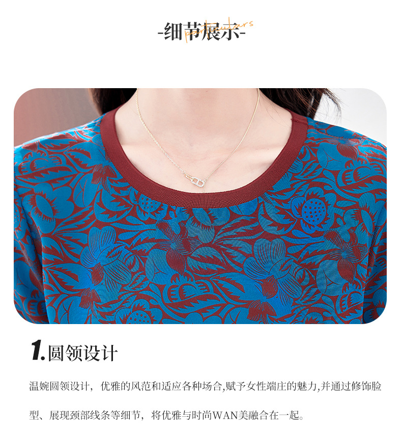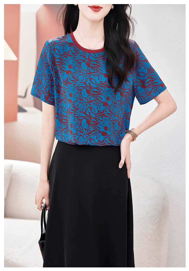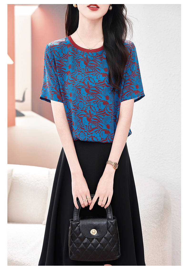 丁摩高端真丝双绉短袖T恤新款夏季时尚印花休闲桑蚕丝小衫上衣AL