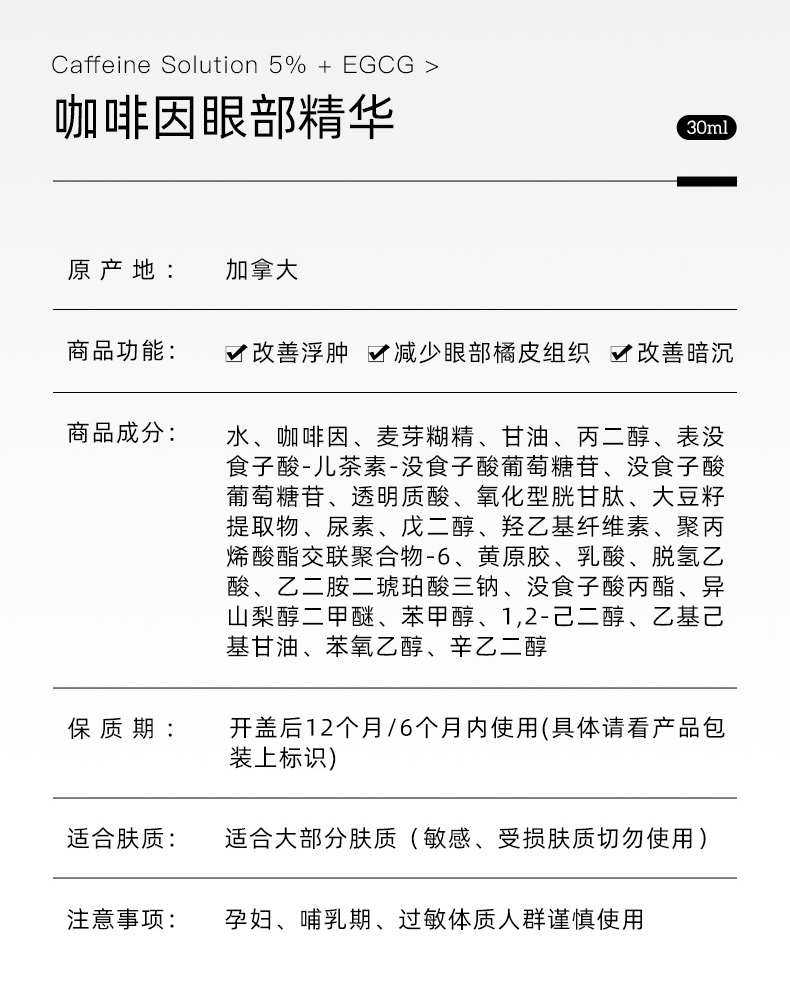 【保税仓发货】The Ordinary5%咖啡因眼霜眼部精华液补水淡黑眼圈