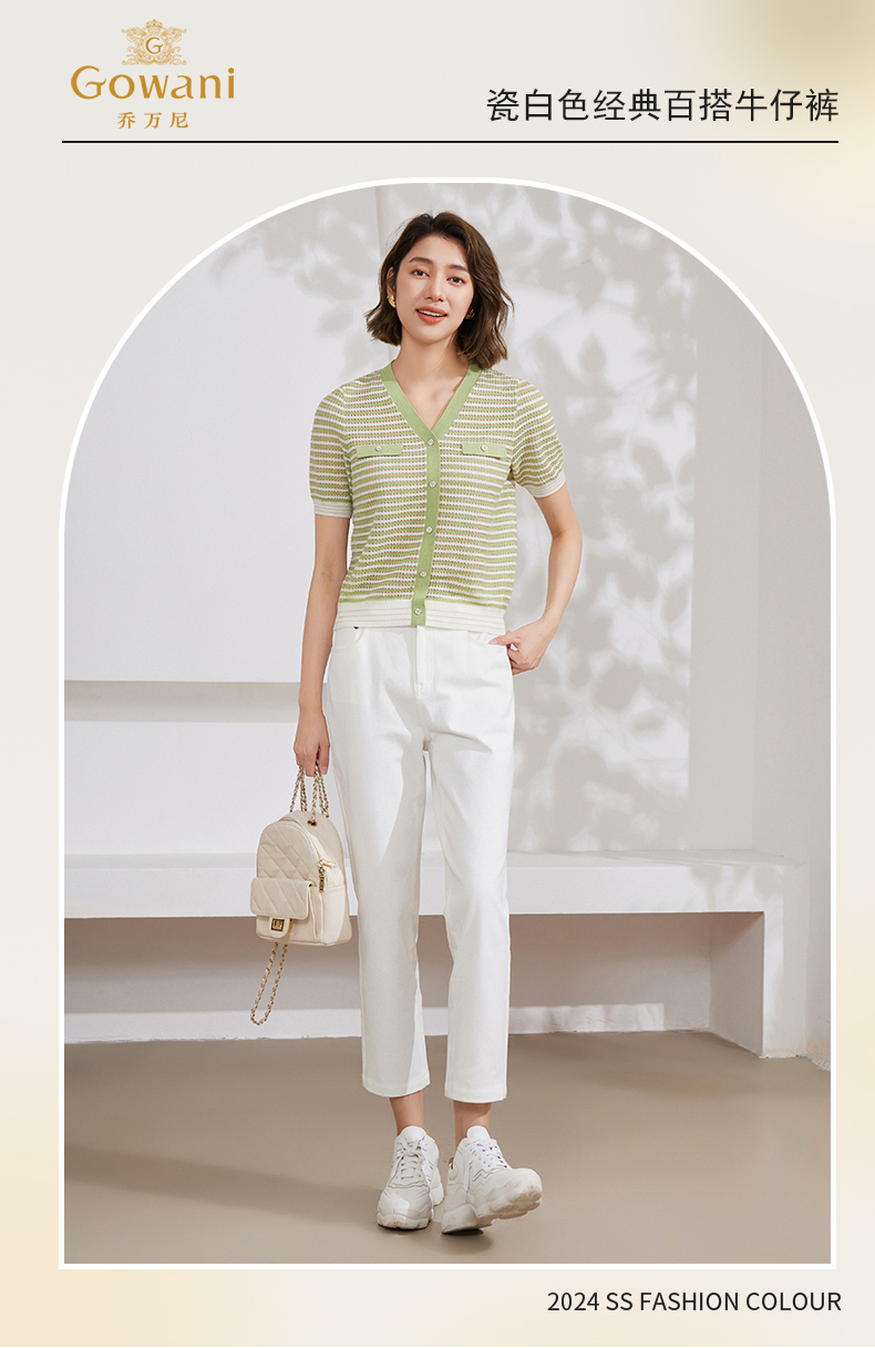 乔万尼夏季新品白色牛仔裤通勤显瘦裤子EM2F861