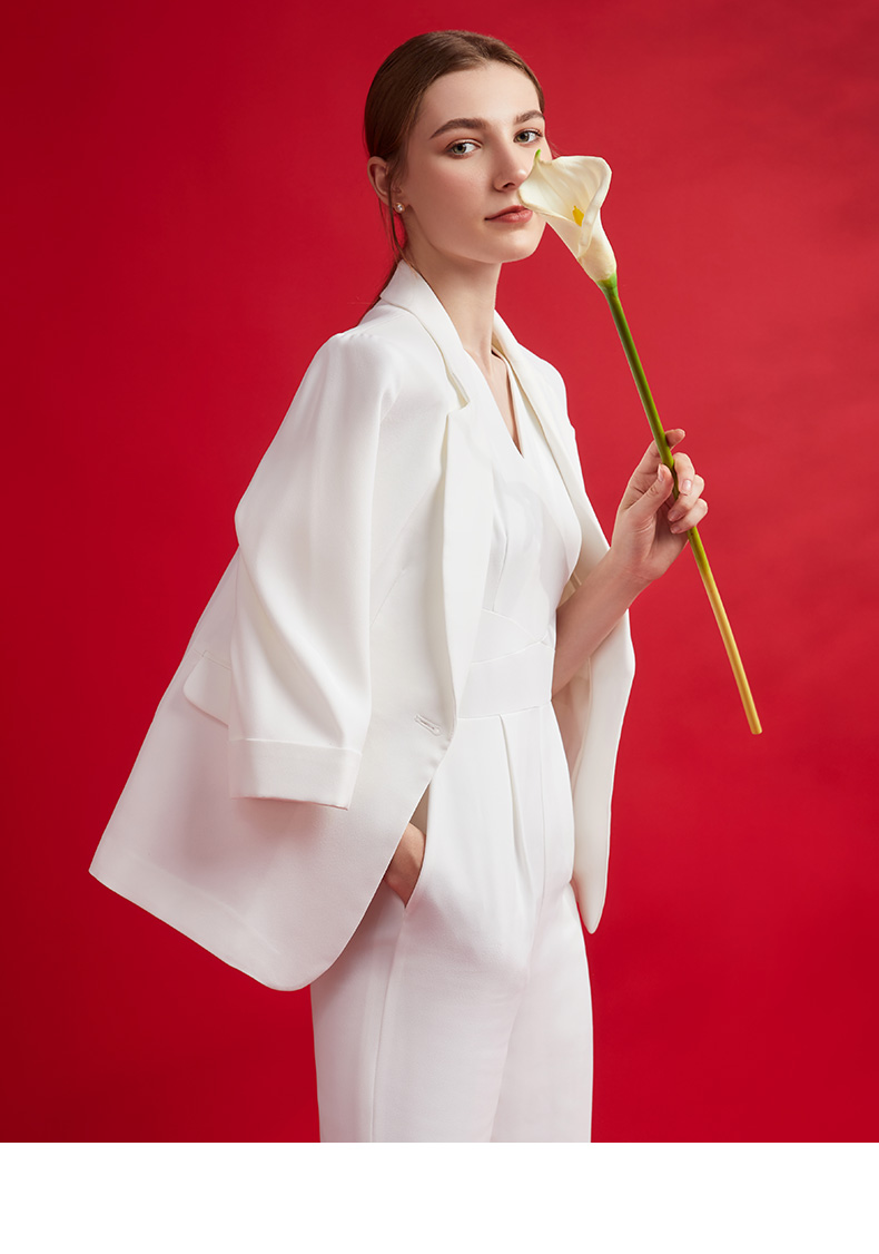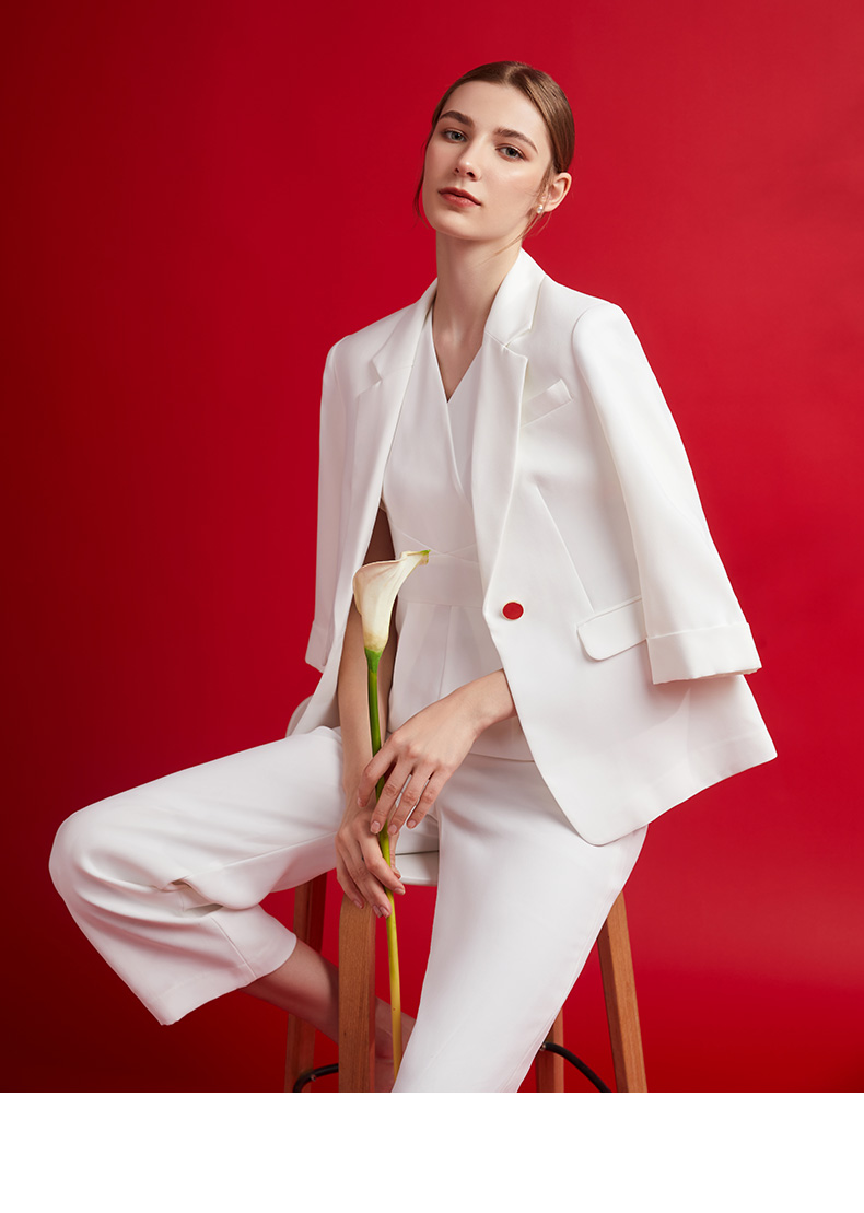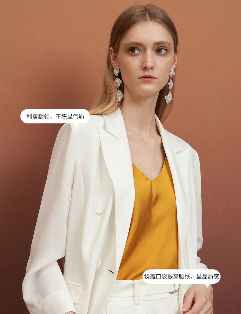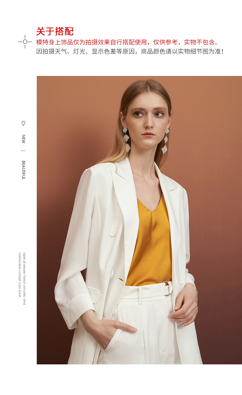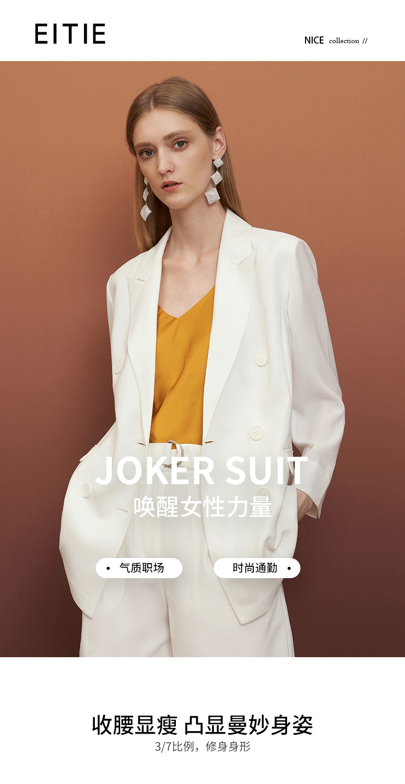 EITIE爱特爱春季新款白色通勤时尚显瘦百搭高腰休闲阔腿裤女A2205923