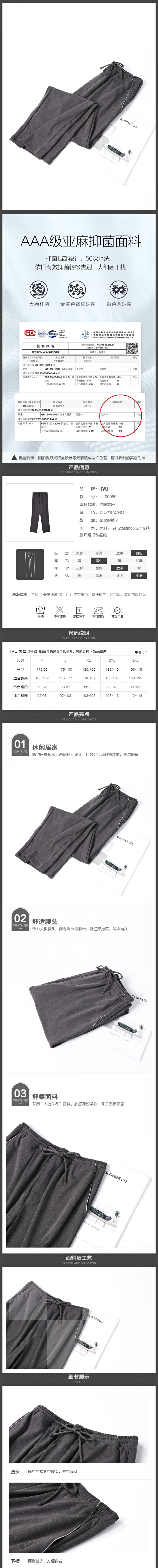 安莉芳旗下IVU男士修身抗菌家居裤秋冬新品可外穿长裤UL00080