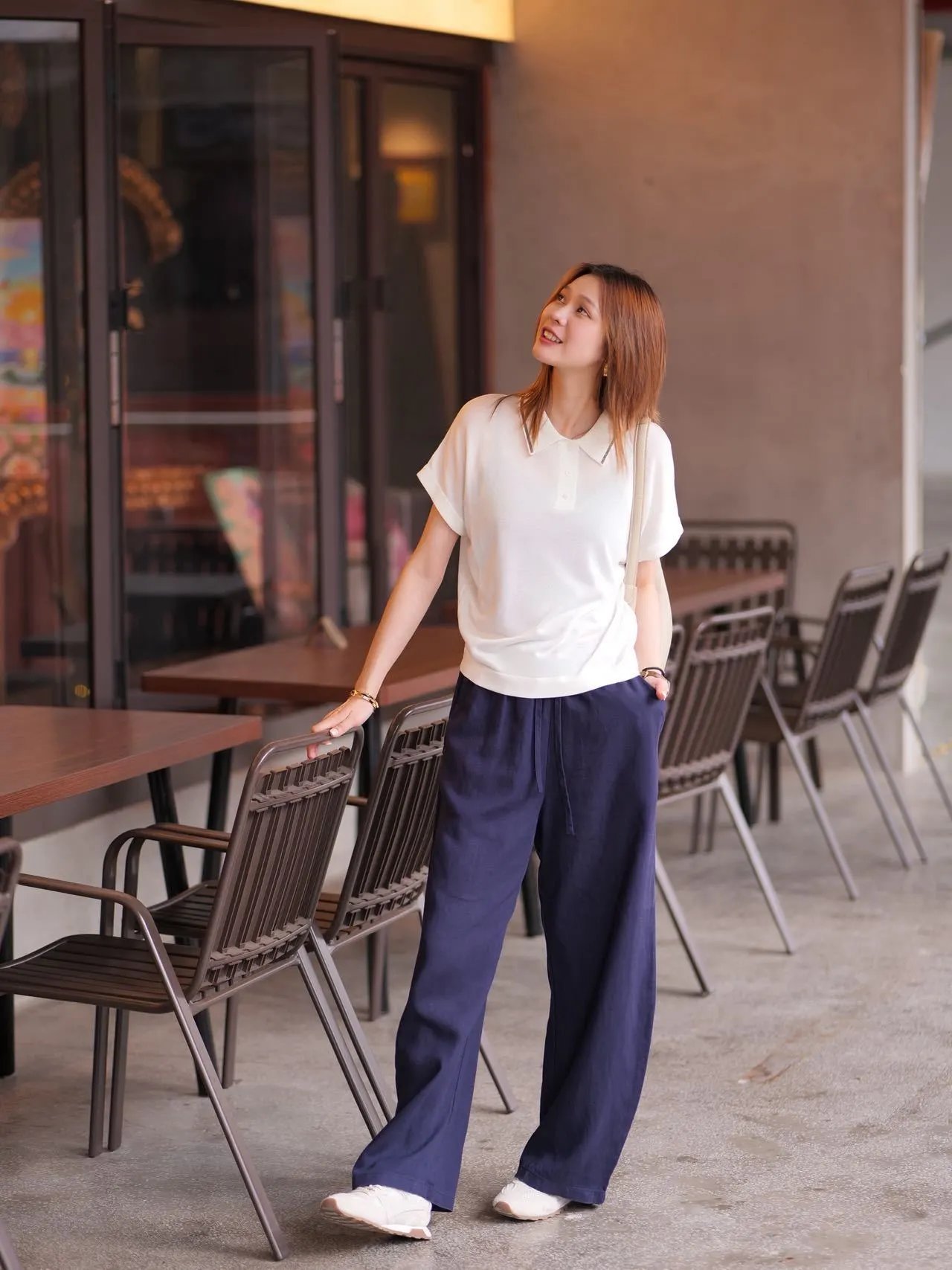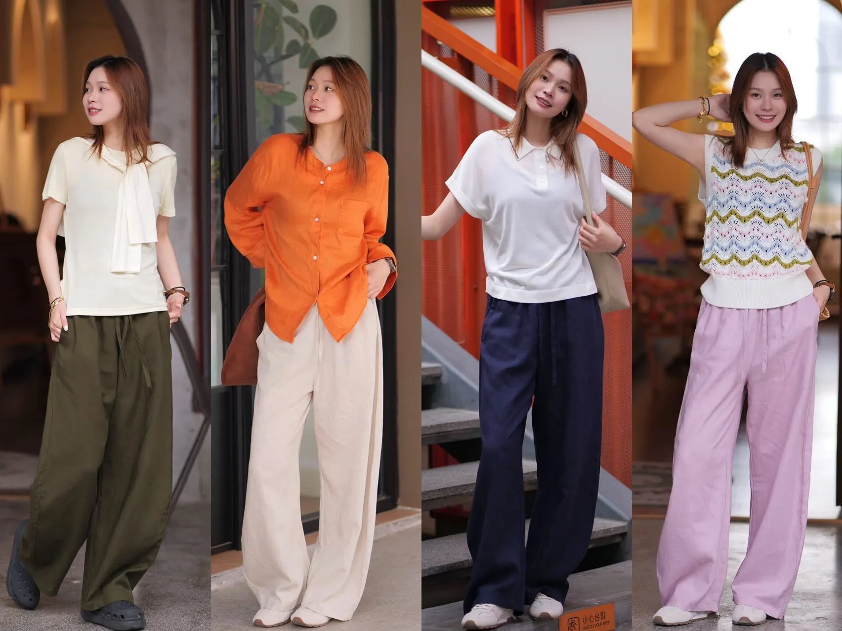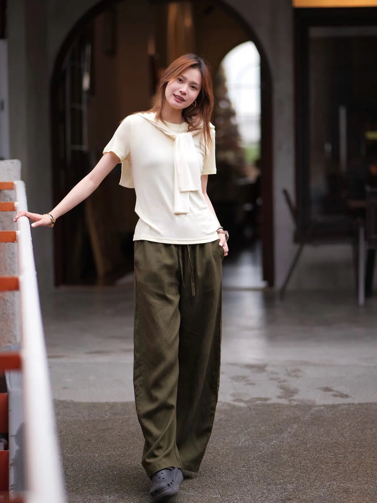 弯刀裤型巨显腿直❗有天丝的细软又有麻的清爽吸汗不粘腻上身散热性+透气性绝佳~