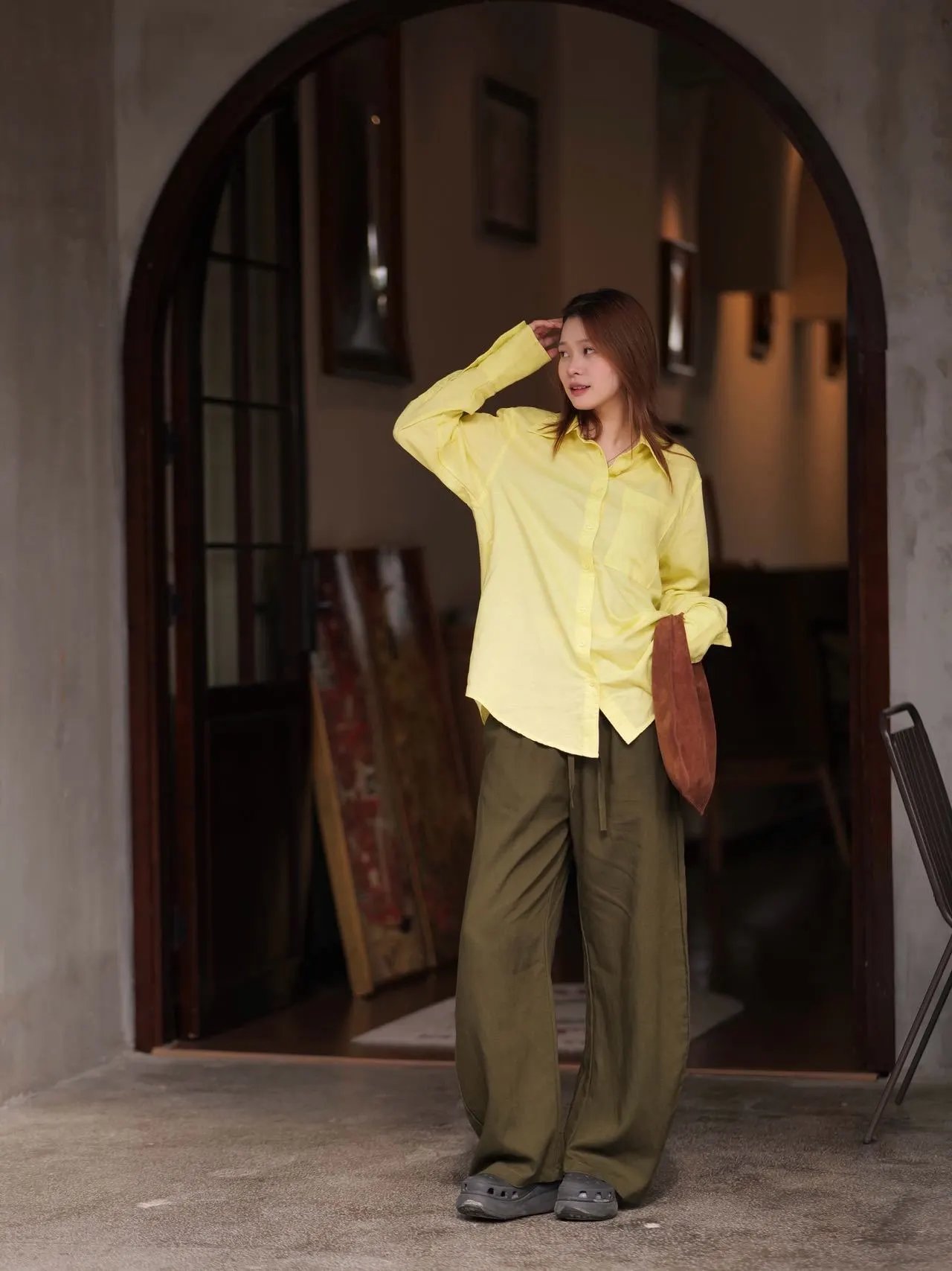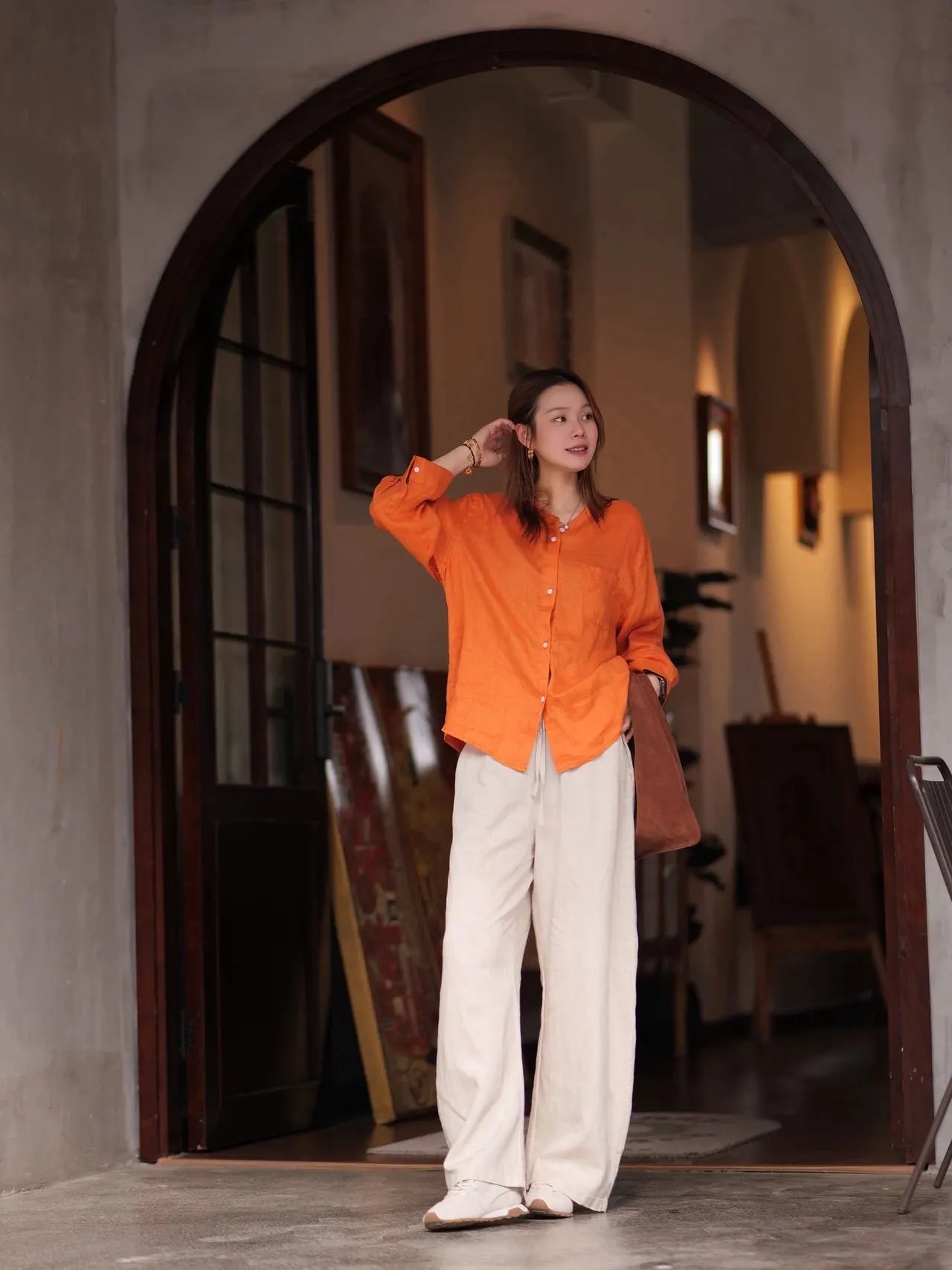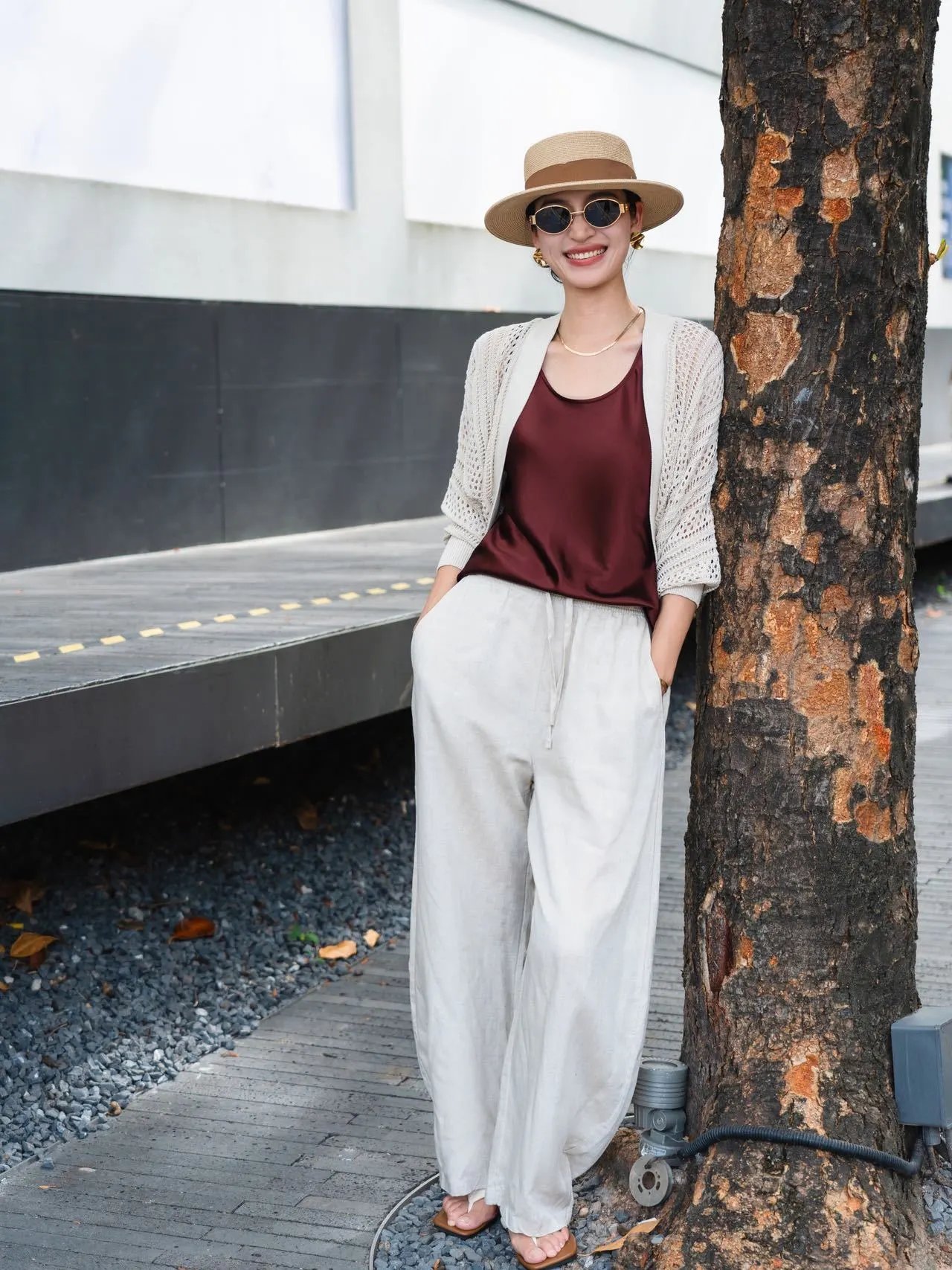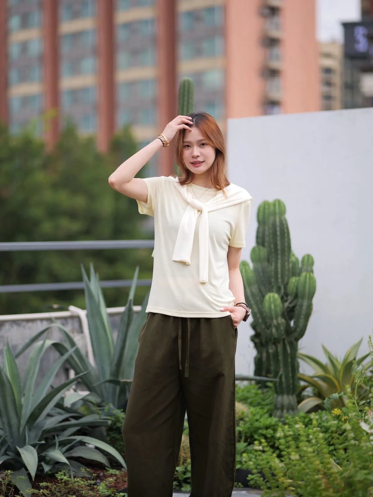 弯刀裤型巨显腿直❗有天丝的细软又有麻的清爽吸汗不粘腻上身散热性+透气性绝佳~