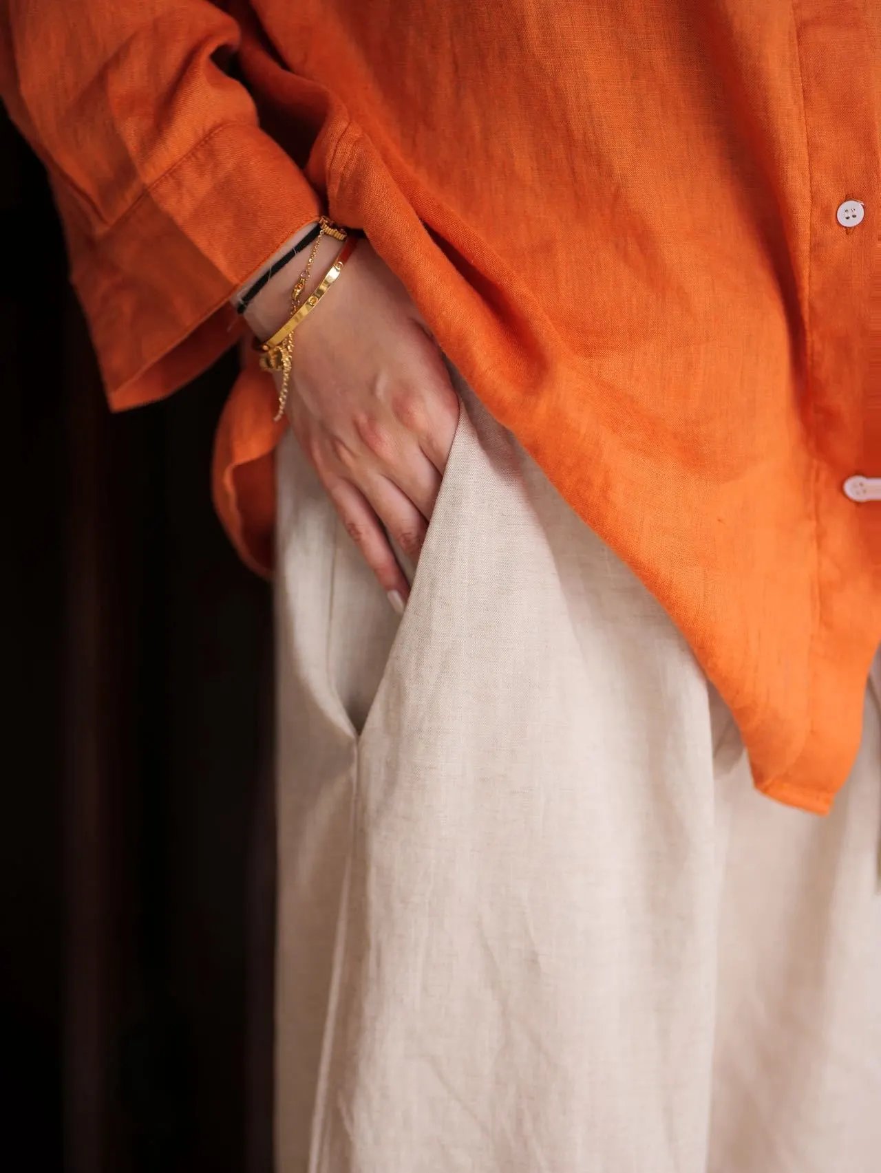 老钱风的天丝亚麻混纺材质松弛与高级并存的质感