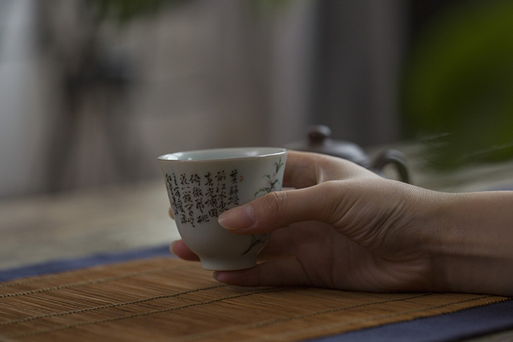 品杯形如倒铃,深腹聚香,秀气雅致。