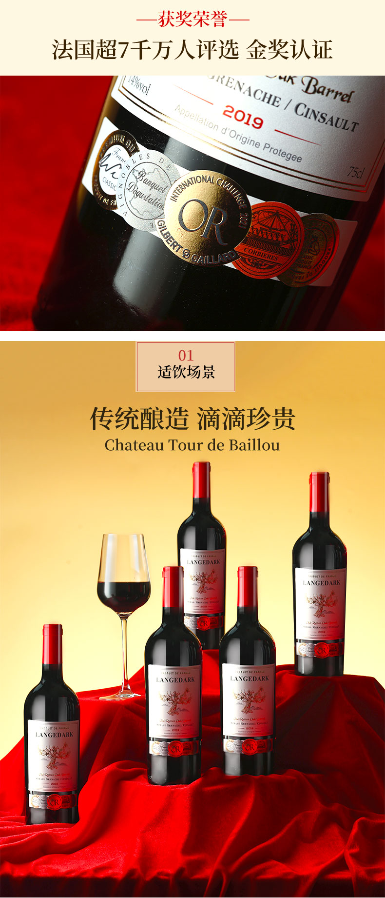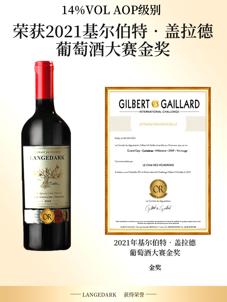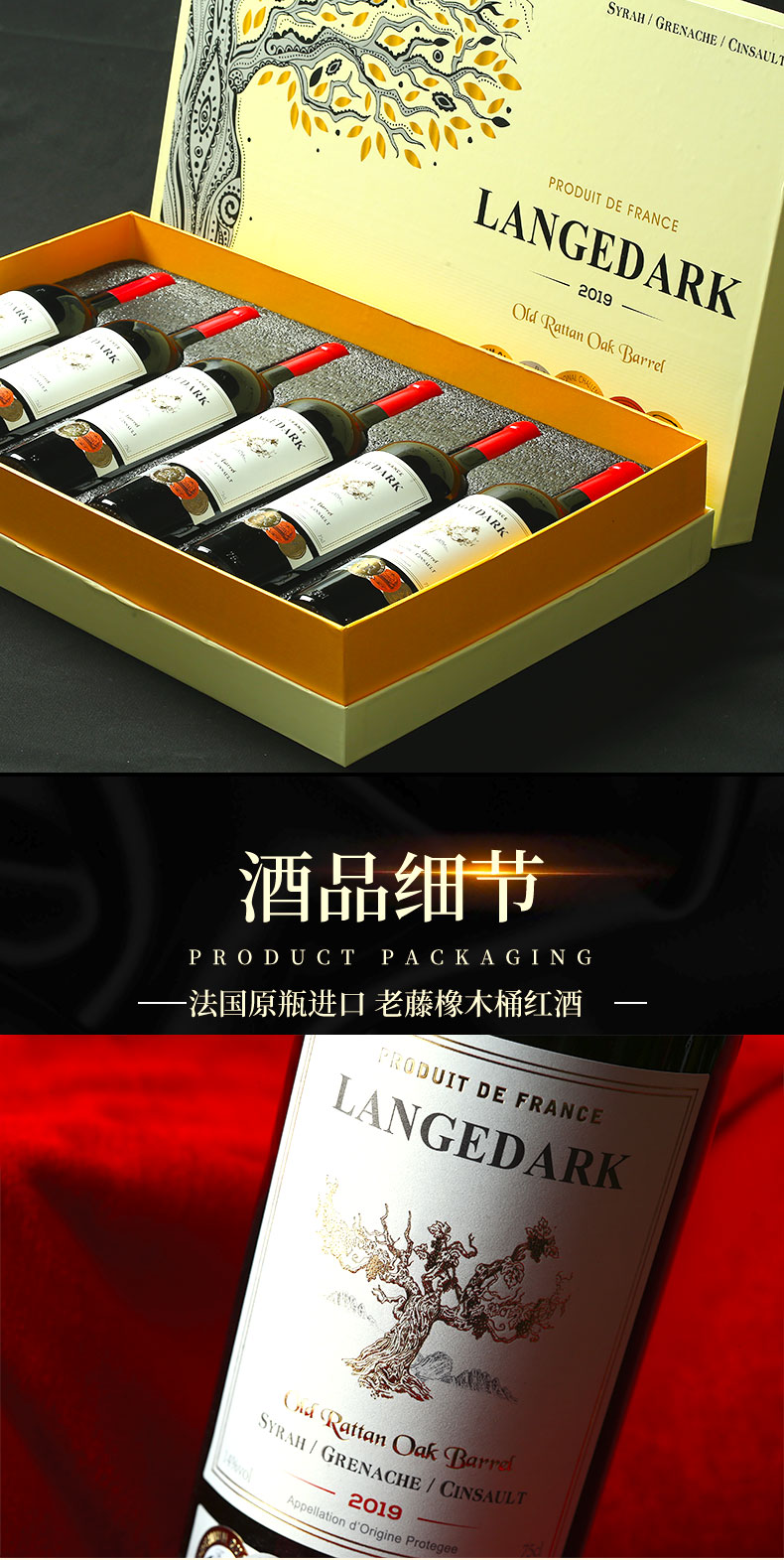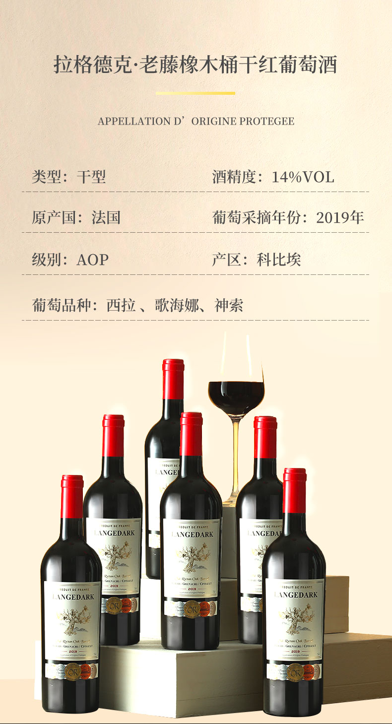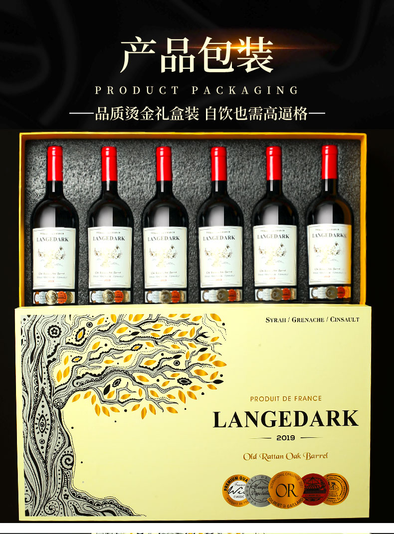【法国原瓶进口 法定产区AOP级 老藤&橡木桶】法国红酒酒庄直供14度臻酿干红葡萄酒(750ml*6瓶礼盒+开瓶器+2个酒杯)